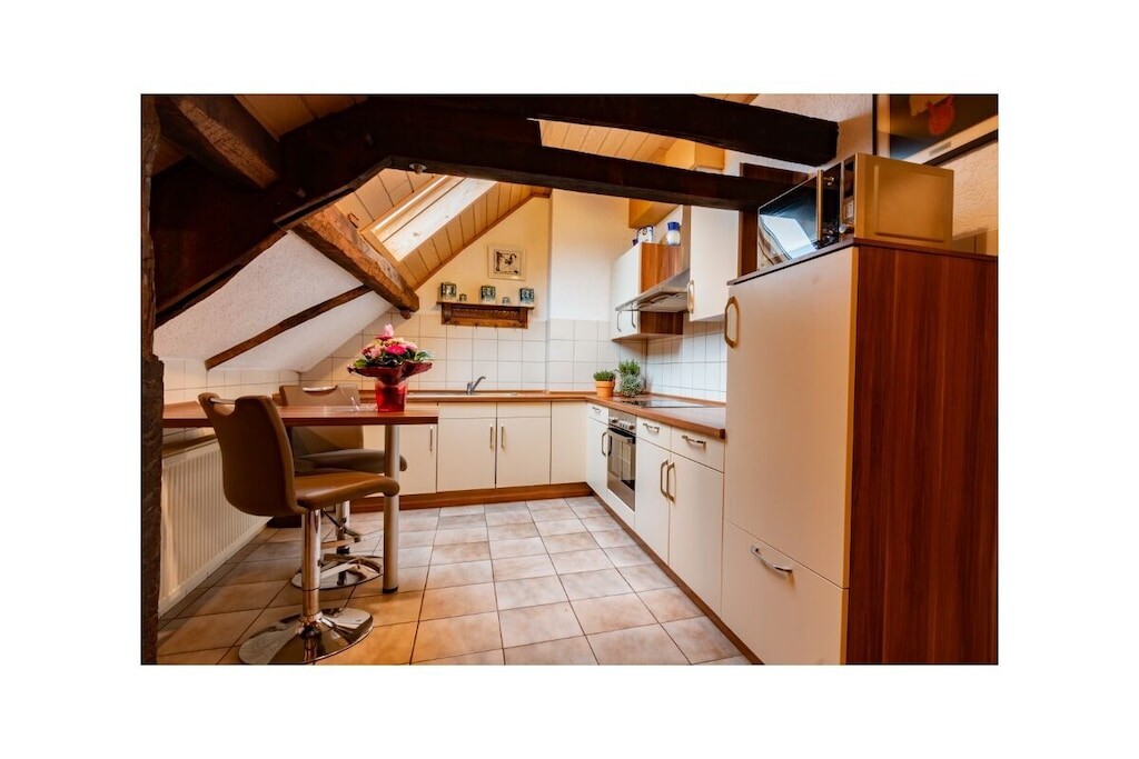 U betreedt het appartement via een aparte ingang en bereikt het appartement zelf via een wenteltrap.