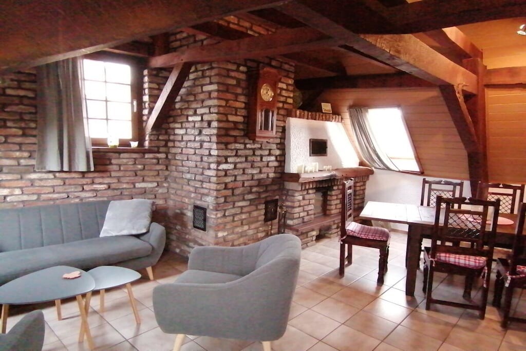 Aan het einde van de dag kunt u ontspannen in de woon- en eetkamer en bij kouder weer zelfs bij de open haard.