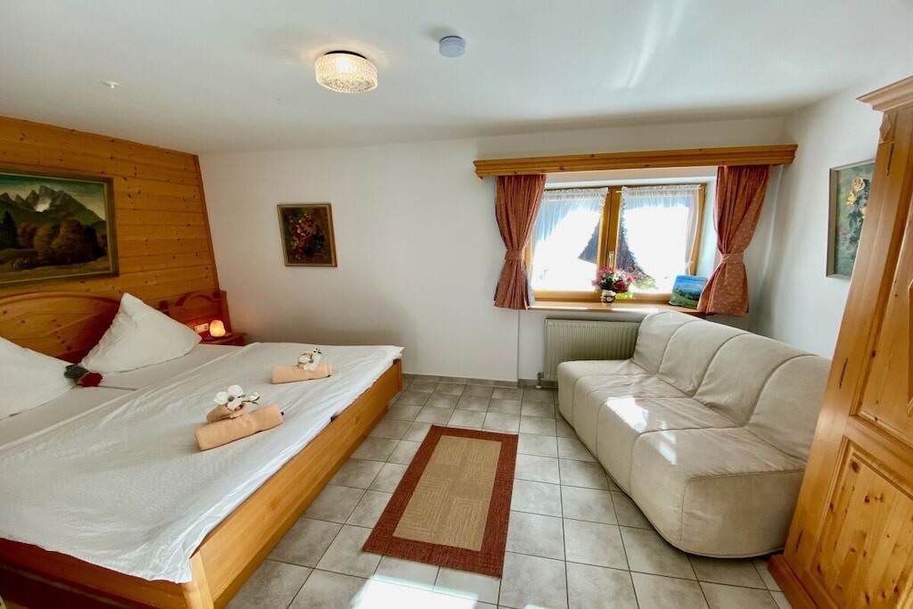 Dit appartement van 56 m² biedt een oase van rust waar maximaal twee personen de dagelijkse sleur achter zich kunnen laten. Na een lange dag vol indrukken van het omliggende Alpen Nationaal Park kunt u heerlijk ontspannen in de ruime woonkamer in de comfortabele zithoek of op het zonnige balkon met een roman of een glas wijn. Misschien geniet u liever gewoon van een goede film (satelliet-tv en cd-speler, een kleine selectie boeken, een stereo-installatie en een grote verzameling spellen zijn aanwezig).