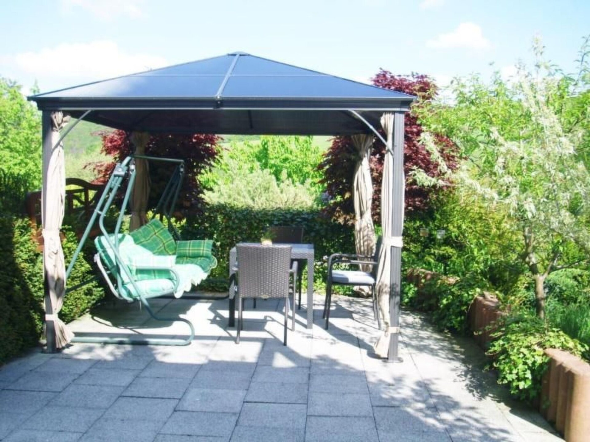 Maximaal 1 huisdier/hond toegestaan. Discover idyllic Großalmerode and enjoy an unforgettable holiday for two in our light-flooded and modernly furnished holiday flat. Situated on the terraced south-eastern slope, you can reach your holiday home via a comfortable staircase, which is secured with landings and railings. As soon as you enter, the breathtaking view of the Hoher Meissner through floor-to-ceiling windows will take your breath away, while the peaceful surroundings ensure a stress-free break. Inside, the flat impresses with a generous living space of 37 square metres, combining a living room, dining area and open-plan kitchen. Relax on the pull-out seating area, the ottoman or in the armchair with footstool and enjoy entertainment on the flat-screen TV with blue-ray player. In the bedroom, two electrically adjustable slatted frames in double beds on castors promise comfortable nights - quickly convertible for separate sleeping areas. The modern corner kitchen, 3.90 metres long and fully equipped, invites you to enjoy culinary delights, while the bathroom with bath, walk-in shower and raised WC offers a pure wellness feeling. The outdoor area invites you to linger on the approx. 40 square metre covered terrace and an additional sun terrace. Equipped with a seating area, barbecue, sun loungers and parasol, you can spend relaxing hours here in summer. The garden has wooden armchairs, a pavilion and a variety of relaxation options such as a Hollywood swing and a witch's hut with bench, making it ideal for relaxing days in the countryside. There are numerous opportunities for activities and discoveries in the area surrounding Großalmerode. Whether hiking through the blossoming cherry trees in spring, cycling tours or visits to the nearby towns of Kassel, Bad Sooden Allendorf and Witzenhausen with their thermal baths, half-timbered houses and cultural offerings - boredom is not an option here. For nature lovers and culture vultures alike, our flat is the perfect starting point for a wide range of activities. Take the opportunity for an incomparable holiday in the midst of a wonderful environment that combines relaxation, nature and culture in a unique way. Our modern holiday flat with its extensive comfort and lovingly designed outdoor area awaits you as your oasis of peace. Where relaxation and adventure go hand in hand, you will find our offer for your dream holiday. Look forward to unforgettable days in Großalmerode - we look forward to your visit! Basic information - Pets allowed: none - Type of property: holiday apartment - is located in: nothing applicable - type of apartment: Granny flat - type of building: Detached house - Floor on which the object can be found: Ground floor - Total number of floors in the building above the ground floor: 2 - Year of the last complete renovation : 2014 - not observable from the street - Owner lives on the property - no group bookings - non-smoking - Number of bedrooms: 1 - Number of bathrooms: 1 Top features - WiFi - air conditioning: no - heating: Everywhere - underfloor heating: Everywhere - terrace - garden: For communal use - completely enclosed (by wall, fence or hedge) - Total of private car parking spaces: 1 - ㄴ of which garage spaces: None - ㄴ of which carport spaces: None - ㄴ of which private outdoor parking spaces: 1 Sleeping bedroom 2 - double bed (more than 1,80 m width) - double bed (1.80 m width) Bathroom bathroom 2 - shower - bath tub - basin - toilet - hair dryer - daylight Cooking/Living - coffee machine: filter coffee machine - fridge/freezer: fridge - stove: ceramic hob - kitchen hood - oven - toaster - microwave - electric kettle - dishtowels - size of kitchen: 12 m² - number of dining tables: 1 - number of seats: 4 - number of living rooms: 1 - living room is dimmable Entertainment - TV: antenna/DVBT TV - DVD player - party games for adults - fitness equipment For children - high chair - playground equipment Utility - washing machine: For communal use in the building - Clothes dryer: For communal use in the building - iron - vaccum cleaner - fan: None - smoke alarm - safe Accessibility - handrails on all stairs - extra-wide doors (at least 80 cm) - threshold-free accommodation - shower stool - walk-in shower - bathtub with grab rails - higher toilet Sustainability - Waste recycling - House Insulation - insulated facade - insulated floors Outside area - veranda - grill/barbecue: Charcoal grill Surroundings - view: mountain, garden, forrest, lawn - Nearest town centre: 4,0 km - Grocery store: 0 m - going out: 8,0 km - restaurant: 4,0 km - train station: 10,0 km - airport: 80,0 km - motorway: 25,0 km - water (sea, lake, etc.): 20,0 km - lake: 3,0 km - playground: 30 m - public swimming pool: 10,0 km - hiking trail: 200 m.