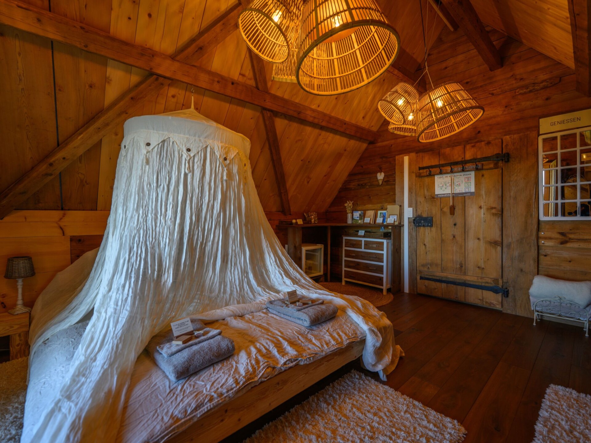 We have created a special place for all those who love the rustic charm of a country house, like to hear the creaking of old floors and want to enjoy the evening sun on the balcony:A cosy double room awaits you on the 2nd floor of our listed granary - perfect for a relaxing weekend or a slow-paced holiday in the Emmental. Please note that this accommodation is a guest room.
