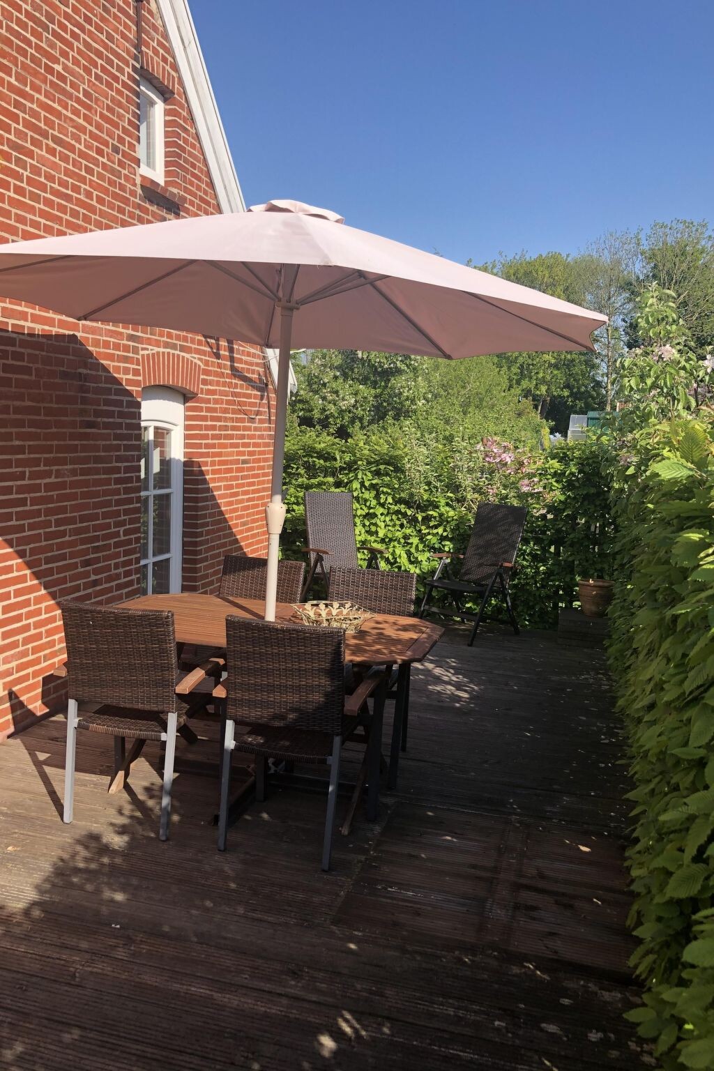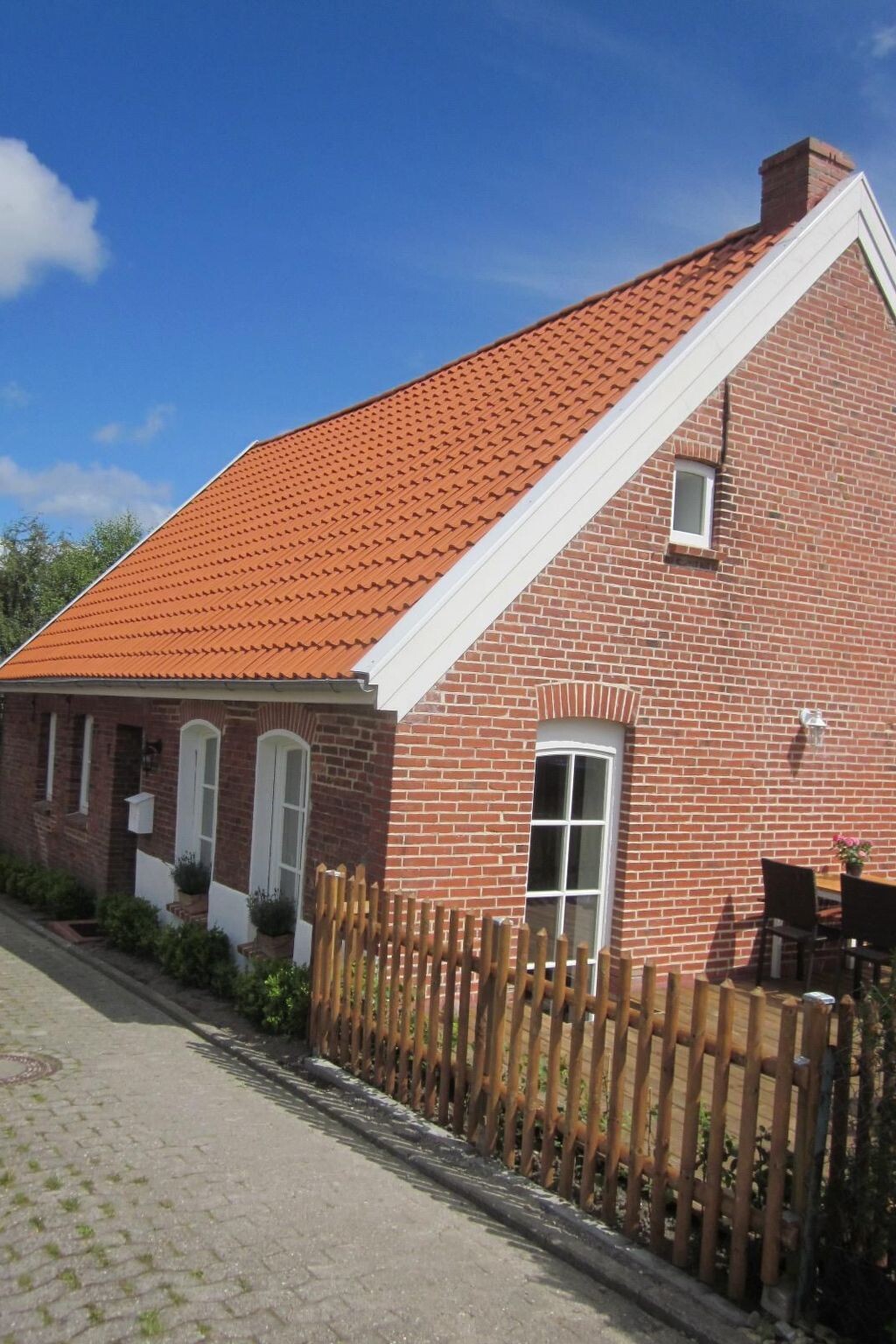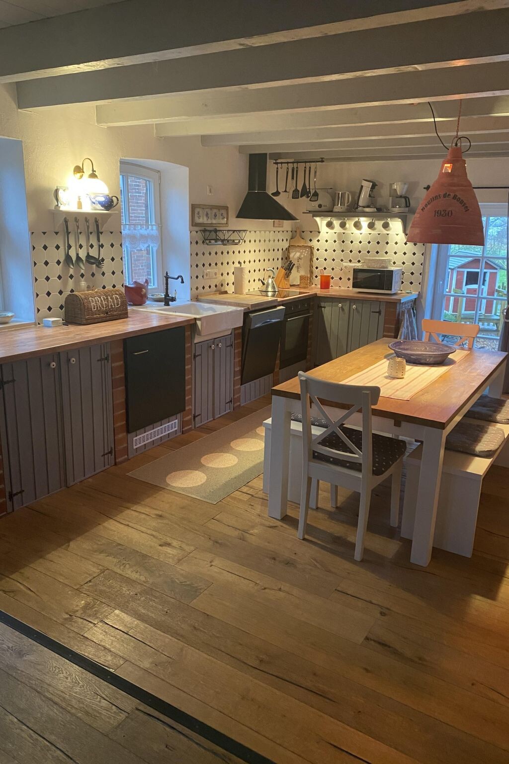 Maximaal 1 huisdier/hond toegestaan. The 100 m² detached holiday home is a stylishly renovated and modernly furnished old farm worker's house. It is located in the enchanting little village of Pilsum (Ottoturm), near Greetsiel and close to the sea.The house also has an enclosed garden with two terraces and garden furniture as well as a car parking space. The outdoor area also has a playhouse, a swing and, in the summer months, a slide and a picnic table for small children.The house offers space for two to four people. It is divided into a very spacious living room and a large kitchen/dining area on the ground floor. The kitchen is equipped with a hob with oven, dishwasher, fridge-freezer, microwave, coffee machine, kettle, toaster, etc. There is also a highchair for children. A high chair for children is also available. The living area is equipped with a fireplace, satellite TV and a stereo system. High-quality oak floorboards have been laid throughout. Old wooden beams have been preserved throughout. They provide additional warmth and cosiness. A very attractive bathroom with two washbasins and a walk-in rain dance shower is also located on the ground floor. An old, listed wooden staircase leads to the upper gallery. Here there are up to two further sleeping possibilities for adults (each 0.80 m x 2.00 m) plus a baby/children's bed. Adjacent to this is the bedroom with a double bed (1.60 m x 2.00 m) and a view of the green East Frisian meadows. An internet connection (WLAN) can be used free of charge.There is a highly recommended restaurant ("Altes Brauhaus") in the immediate vicinity. The sea is about 3 km away and the nearest railway station is about 12 km away.Pets are not allowed.