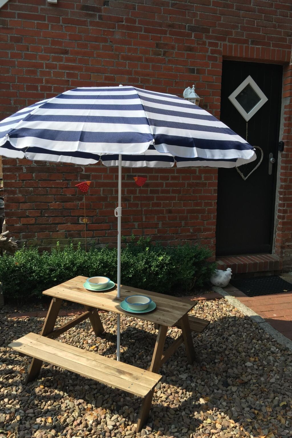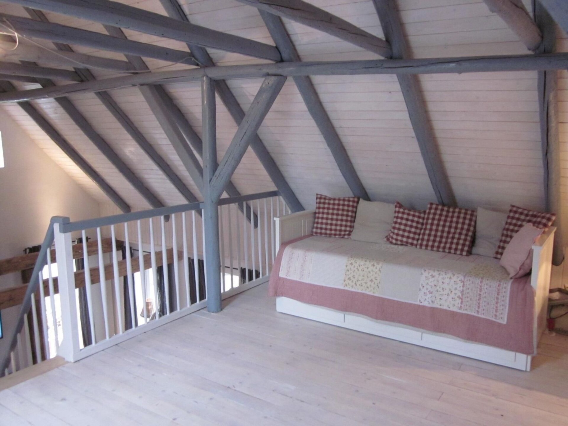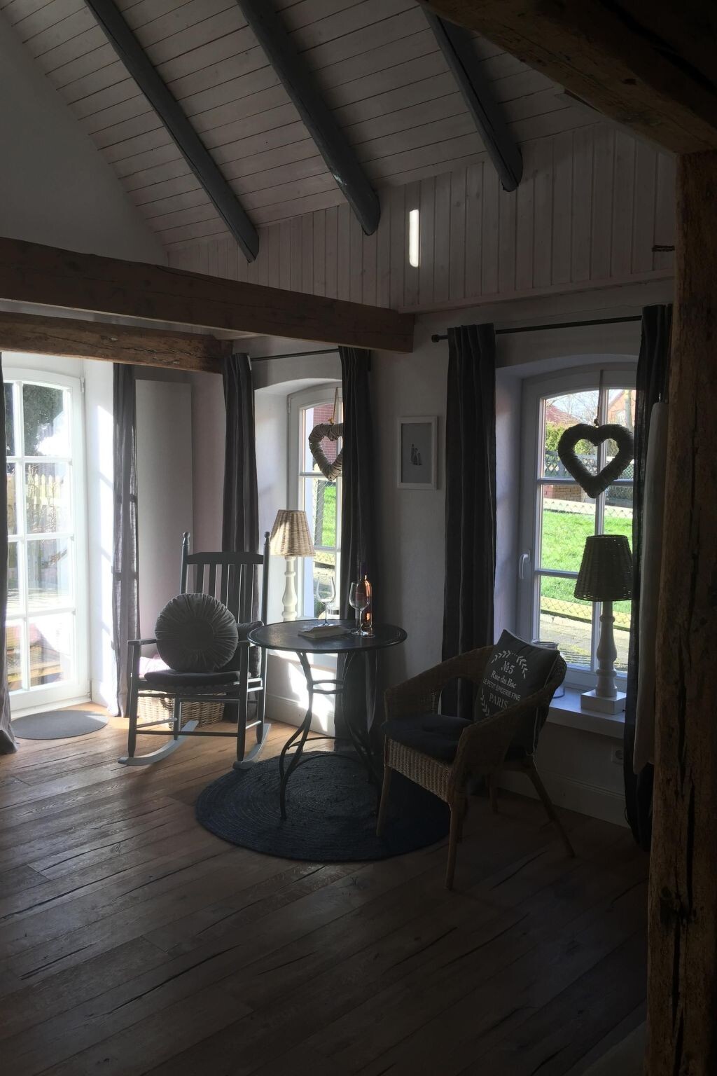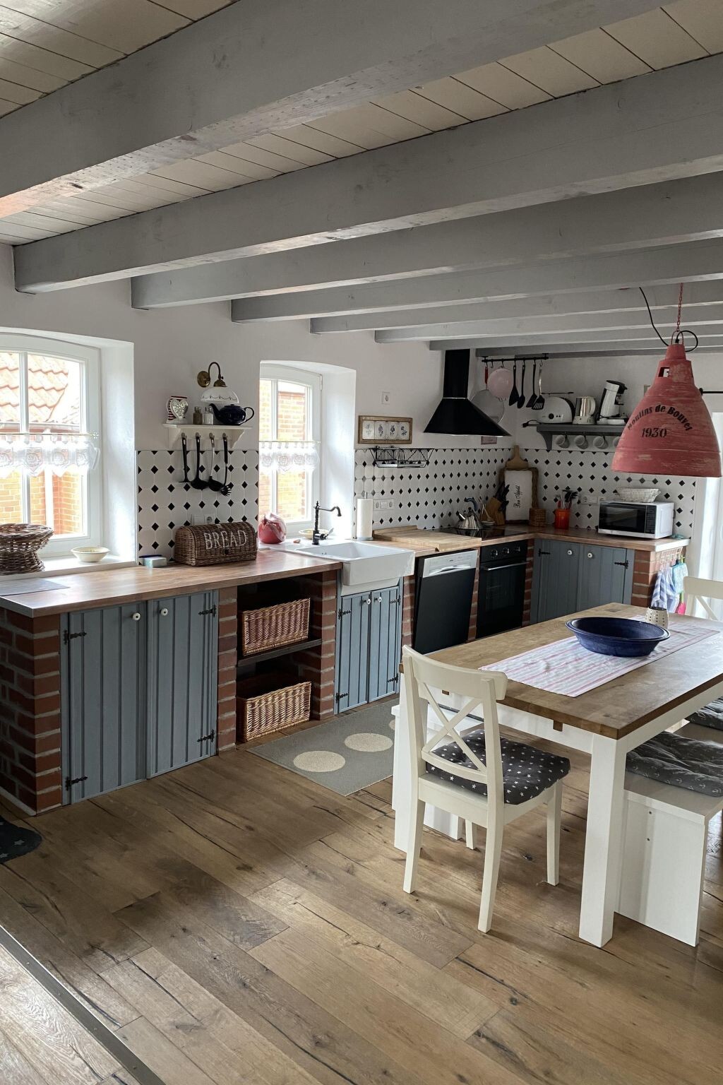 Maximaal 1 huisdier/hond toegestaan. The 100 m² detached holiday home is a stylishly renovated and modernly furnished old farm worker's house. It is located in the enchanting little village of Pilsum (Ottoturm), near Greetsiel and close to the sea.The house also has an enclosed garden with two terraces and garden furniture as well as a car parking space. The outdoor area also has a playhouse, a swing and, in the summer months, a slide and a picnic table for small children.The house offers space for two to four people. It is divided into a very spacious living room and a large kitchen/dining area on the ground floor. The kitchen is equipped with a hob with oven, dishwasher, fridge-freezer, microwave, coffee machine, kettle, toaster, etc. There is also a highchair for children. A high chair for children is also available. The living area is equipped with a fireplace, satellite TV and a stereo system. High-quality oak floorboards have been laid throughout. Old wooden beams have been preserved throughout. They provide additional warmth and cosiness. A very attractive bathroom with two washbasins and a walk-in rain dance shower is also located on the ground floor. An old, listed wooden staircase leads to the upper gallery. Here there are up to two further sleeping possibilities for adults (each 0.80 m x 2.00 m) plus a baby/children's bed. Adjacent to this is the bedroom with a double bed (1.60 m x 2.00 m) and a view of the green East Frisian meadows. An internet connection (WLAN) can be used free of charge.There is a highly recommended restaurant ("Altes Brauhaus") in the immediate vicinity. The sea is about 3 km away and the nearest railway station is about 12 km away.Pets are not allowed.