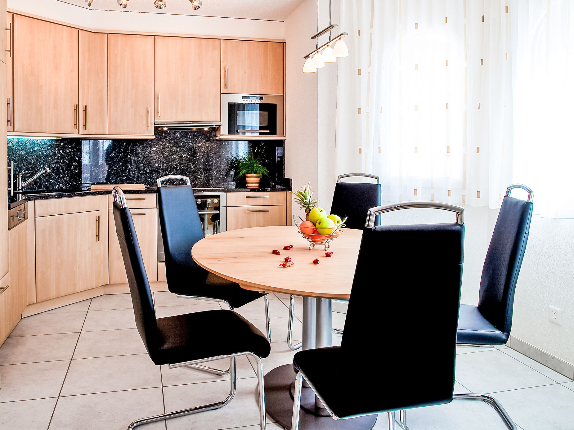 Comfortabel flatgebouw "Iris A", van 4 verdiepingen, bouwjaar 2008. In de plaats, centrale, zonnige, verhoogde ligging, aan een weg. In het complex: sauna, fitnessruimte, stoombad, hot tub, lift, centrale verwarming, wasmachine, droger (voor medegebruik, extra). Gemeenschappelijke garage. Winkel 400 m, restaurant 200 m, bar, café 400 m, bushalte "Leukerbad, Obere Maressen" 250 m, thermaalbad 400 m. Ski faciliteiten 600 m, skibushalte 150 m, ijsbaan 1 km. Voor alle bewoners van het huis bevindt zich voor medegebruik tussen de Irishuizen een fitnesschalet en een wellnesschalet met Finse sauna, aromastoombad, 1-pers bubbelbad.