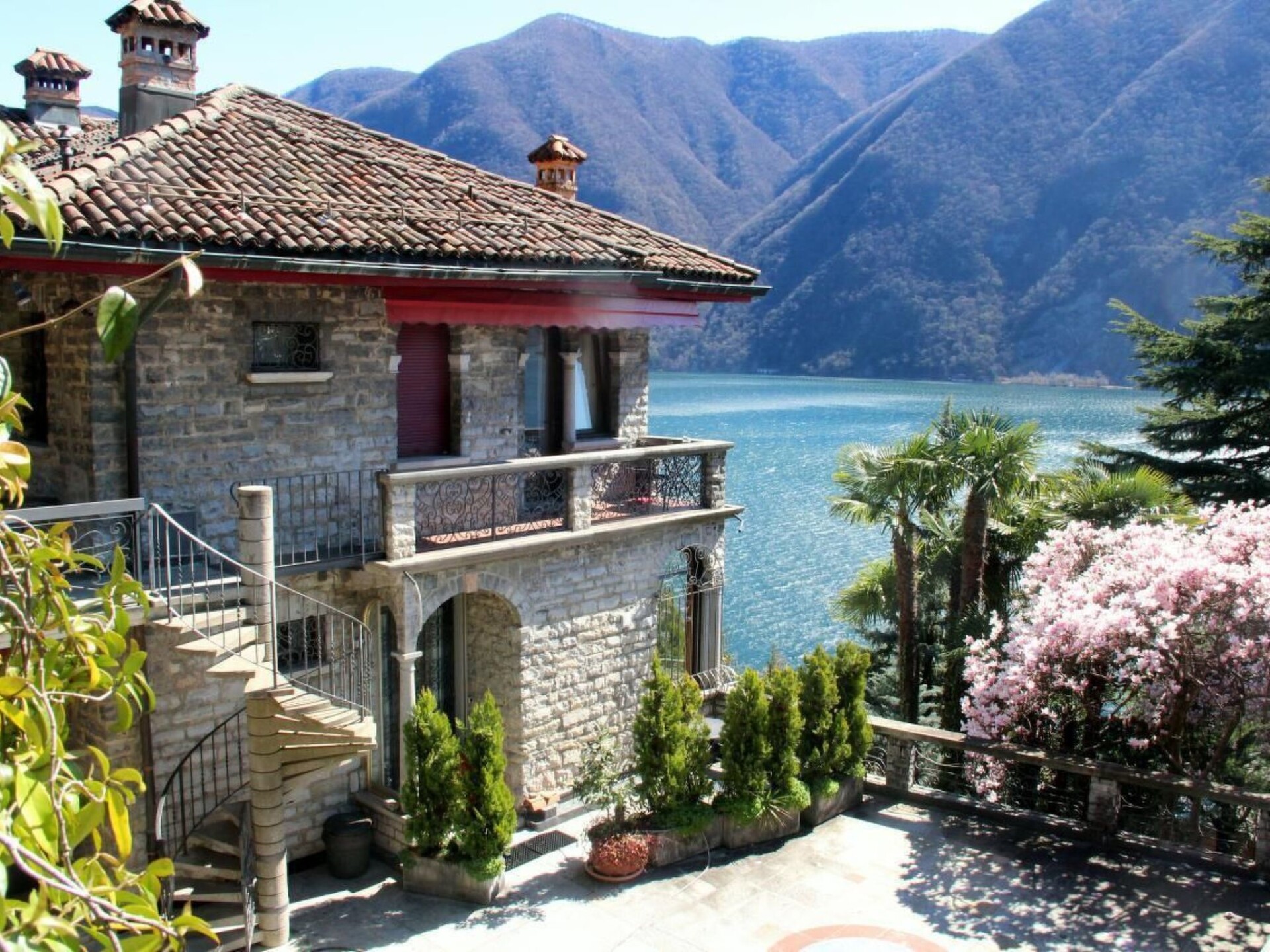 The nostalgic BARONY LE PERGOLE with 3 villas and a total of 10 flats, all with private entrances directly from the outside (non-smoking) of different sizes for 1-9 persons, is located in the most exclusive residential area of the municipality of LUGANO, namely in Castagnola at the foot of "Monte Brè" near the lake and at the beginning of the romantic lakeside path to the picturesque fishing village of "Gandria". The exceptional historic residence is peacefully and sunnily enthroned away from any disturbance from municipal and cantonal roads above a terraced Mediterranean tree garden with palm trees between the private cul-de-sac "via Violetta" and the ancient olive footpath "Viottolo degli Agavi" of Lugano-Castagnola.Communal indoor swimming pool 4x8 m for swimmers aged 8 and over accompanied by adults - subject to charge - in operation from June to September with 140 m2 of communal sun terraces with table tennis, deckchairs and parasols are available to guests.Subject to official closure at any time due to Covid.However, in 130 m via private road + stairs down to the lake communal boat and bathing jetty (free of charge) and in 500 m via ancient olive footpath to the lido "Lido San Domenico" with swimming in the lake (for a fee).All flats are tastefully and comfortably furnished, some with valuable antique furniture (for connoisseurs): Washing machine with integrated tumble dryer and/or communal tumble dryer in the wash house on the communal terrace. TV, safe and WiFi (free of charge), air conditioning and/or air conditioning units. Electricity consumption to be paid according to meter. To: lake with bathing jetty (for adults) and landing stage 130 m + steps, scheduled boat at the "Villa Heleneum" museum 250 m, Lido San Domenico 400 m, bus 70-400 m, restaurants 300 m, grocers, Lido Lugano, tennis court, fitness centre, mountain railway to Monte Brè 1.2 to 1.5 km. Centre of Lugano 2.5 km. Residence managed by the owner, who lives on site.Non-smoking flat. Zoover Awards 2010 to 2012 "Best holiday home Lugano".Car park for normal 4 pers. car or 5 pers. van available with advance reservation to be paid on arrival.The additional costs are to be paid in cash on arrival and the guarantee deposit is to be paid in cash on arrival. NL-4372