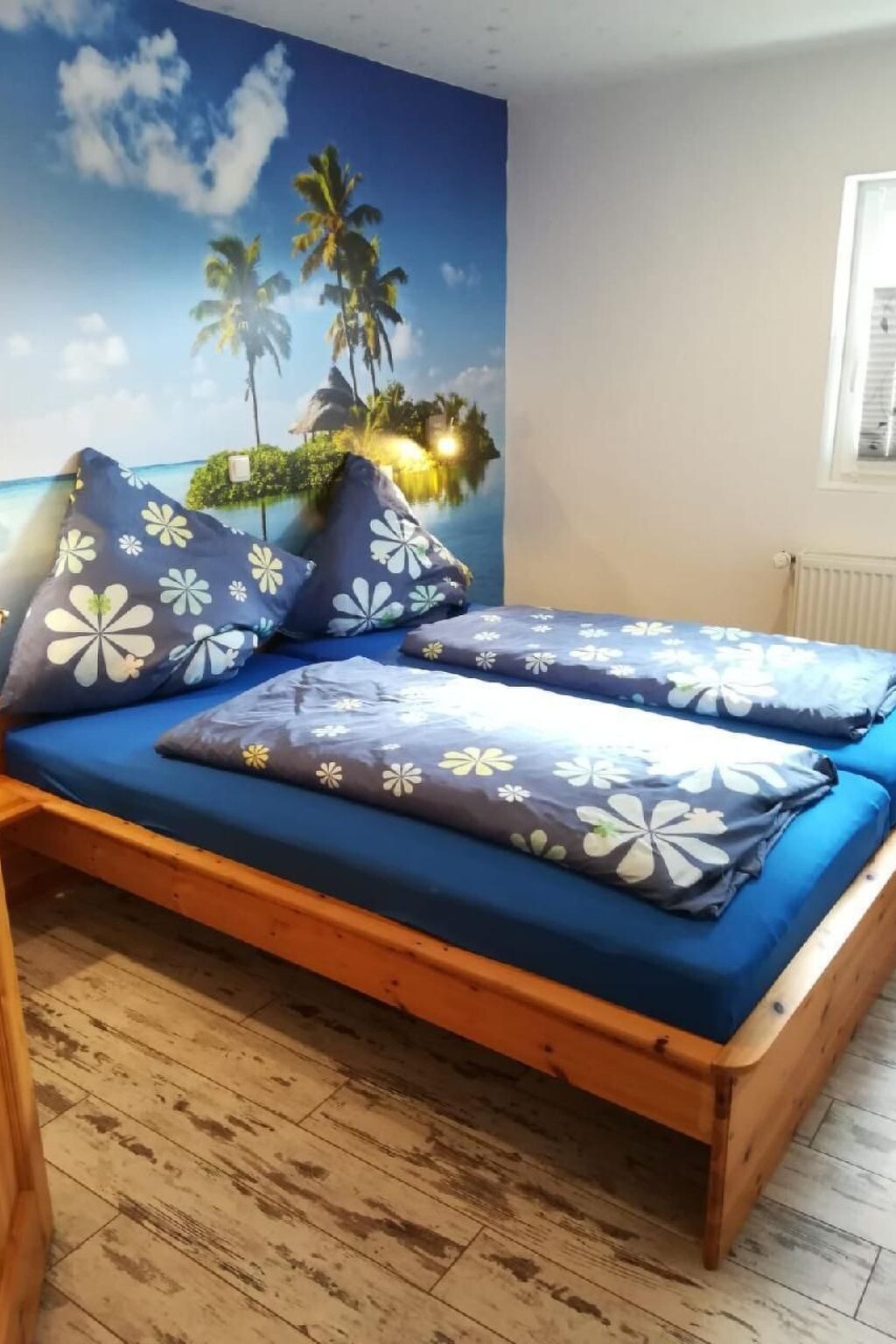 Immerse yourself in our holiday paradise, which offers you an incomparable blend of comfort and modern design. Our 50 sqm holiday flat on the first floor is your ideal retreat with a spacious living room that flows seamlessly into a fully equipped kitchen with dining area. The complete renovation in February 2019 gives the flat a fresh and inviting look, ideal for a relaxing holiday.Inside the flat, you will find a well thought-out interior that leaves nothing to be desired. The bedroom with a comfortable double bed promises peaceful and restful nights. For younger guests, the children's room offers a bunk bed under a twinkling starry sky, a real highlight that is sure to delight. The offer is rounded off by the option of an additional extra bed and a bathroom with a modern, walk-in rain shower.The outdoor area also leaves little to be desired: direct access to the balcony from the living room allows you to enjoy the fresh air and the sun's rays. The solar-heated pool area, which was built in 2008 and renovated in 2018, offers perfect opportunities for relaxation. Depending on the weather, the pool is available from May to September - an ideal place to relax and enjoy.The flat is in an attractive location with a newly designed car park right outside the door, which was completed in summer 2017. The surrounding area invites you to enjoy a variety of activities, and for small appetites or special occasions you can take advantage of the pizza delivery service.a cosy barbecue area in the garden is also available for your use.Let yourself be enchanted by the unique atmosphere of our holiday flat. Here you will find peace and relaxation away from the stress of everyday life. Whether you want to enjoy the day by the pool, relax in the modernly equipped flat or explore the surrounding area - unforgettable holiday moments are guaranteed with us.