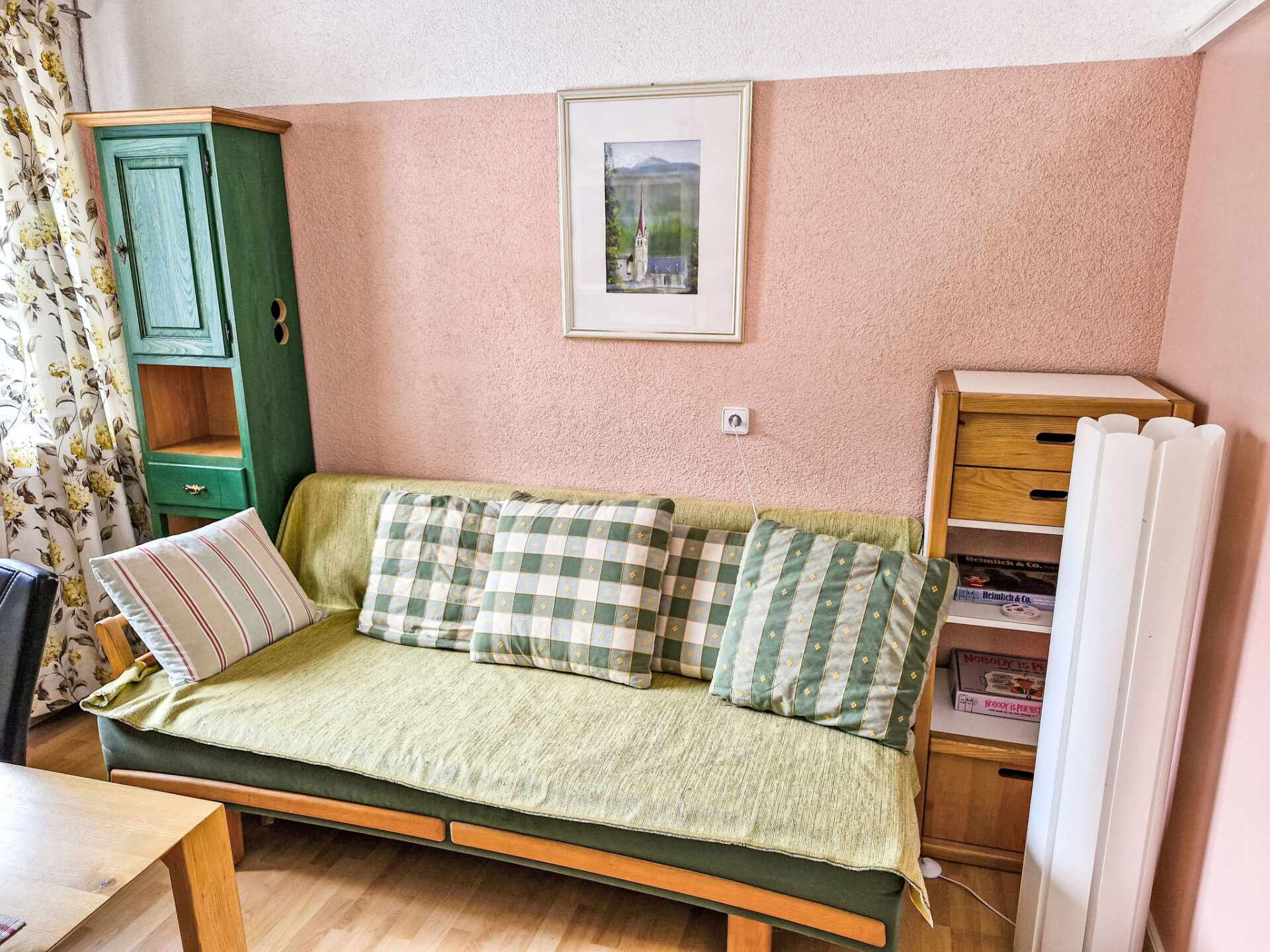 "Aktiv", appartement 3-kamers 47 m2 op de 1e verdieping. Gezellig ingericht: woon-/eetkamer met eettafel en Sat-TV. 1 kamer met 1 2-pers bed. 1 kamer met afgeschuinde daken met 2 bedden. Kleine keuken (2-pits kookplaat, mini-oven, oven, magnetron, elektrische koffiemachine). Douche/WC. Verwarming. Panoramazicht. Ter beschikking: Internet (WiFi, extra).