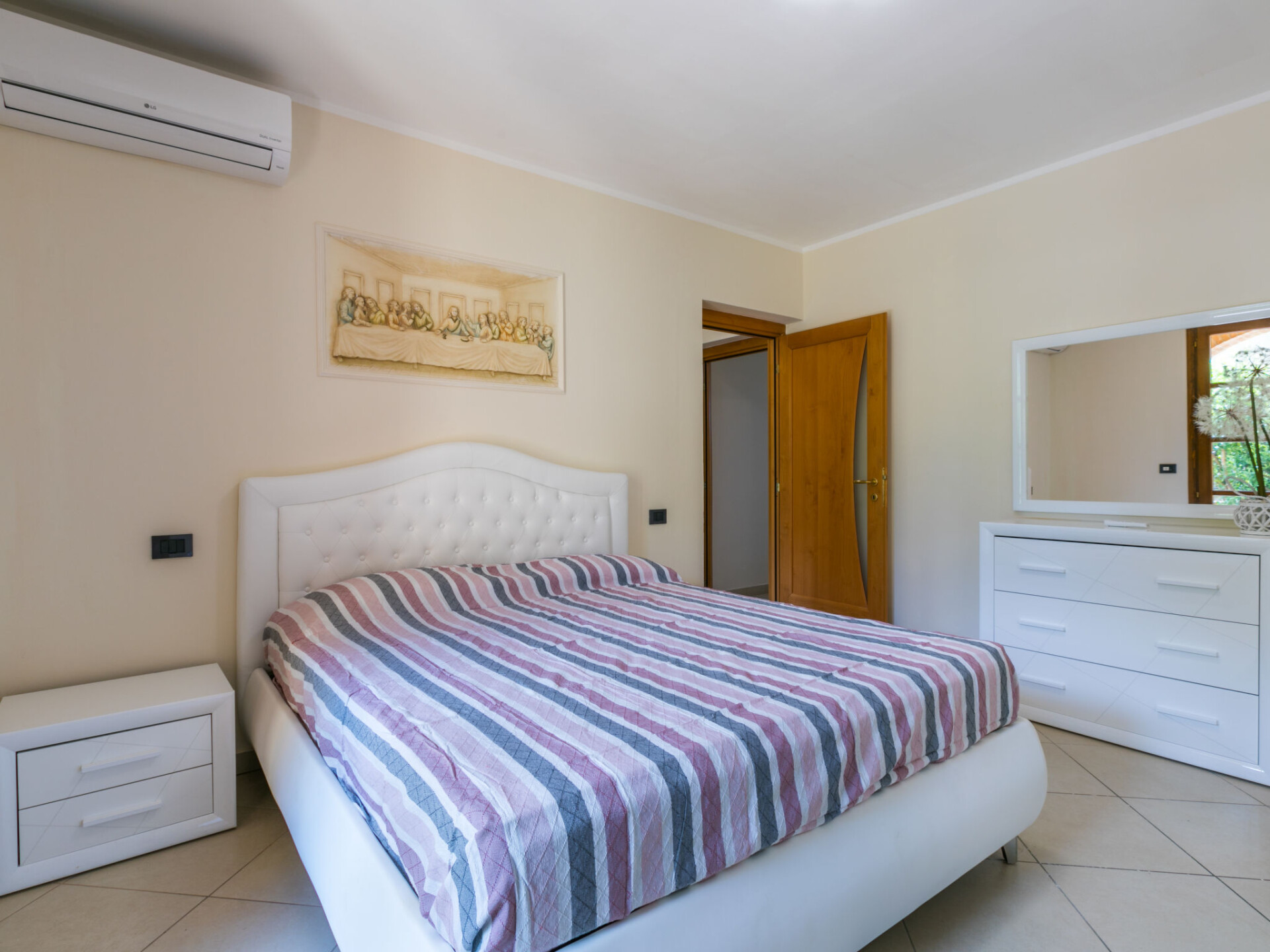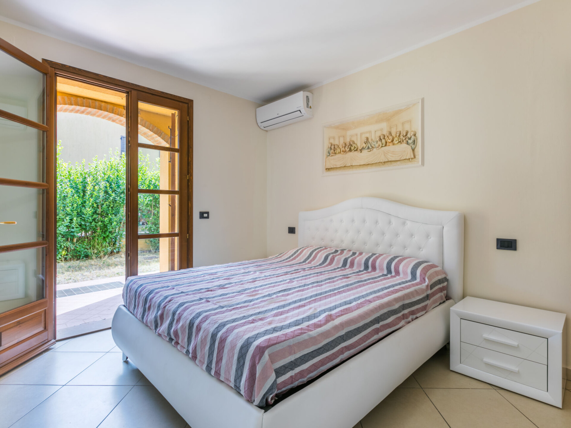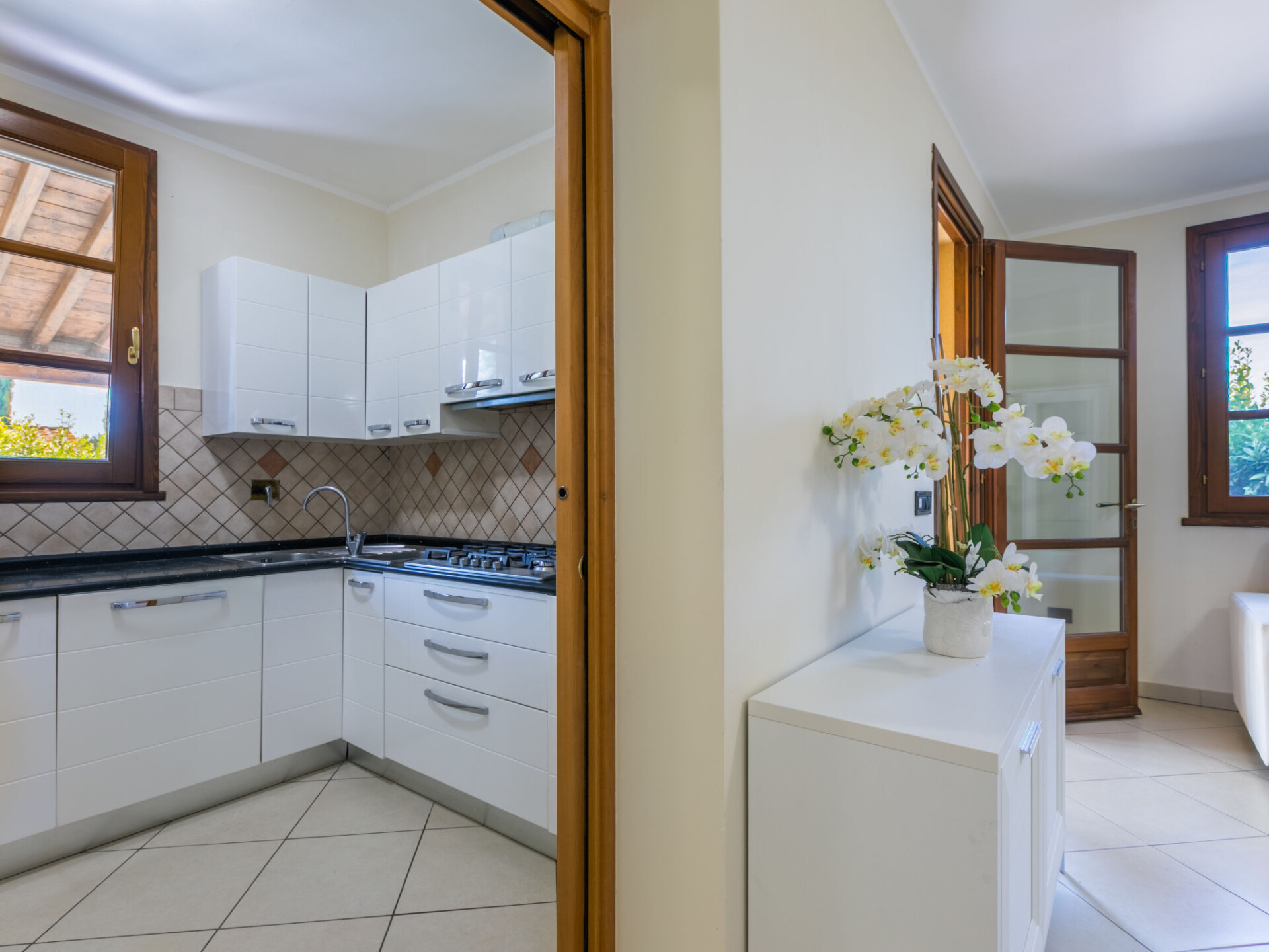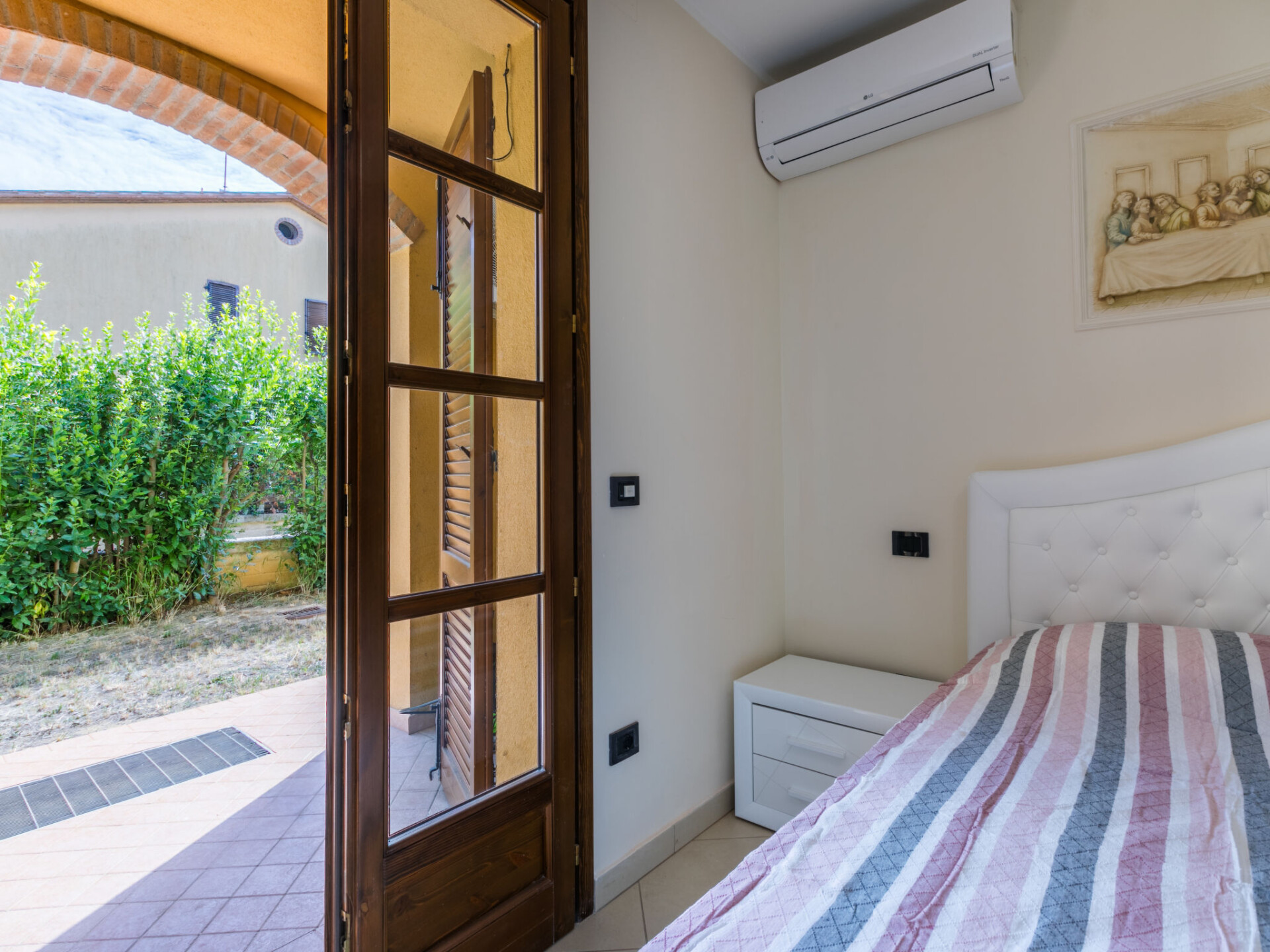 Appartement 3-kamers 65 m2, op de begane grond. Ruim, gedeeltelijk gerenoveerd in 2025, mooi en modern ingericht: woon-/slaapkamer met 1 2-pers divanbed, open haard, eettafel en TV. Uitgang naar het terras. 1 2-pers. kamer met 1 2-pers bed en air-conditioning. Uitgang naar de tuin. 1 kamer met 1 2-pers bed en air-conditioning. Open keuken (Gasfornuis, 5 kookpitten (vlammen), broodrooster, waterkoker, magnetron, elektrische koffiemachine). Douche/bidet/WC. Gas-verwarming. Verwarming alleen beschikbaar van 17.10. tot 01.05. Terras overdekt. Terrasmeubelen, barbecue, ligstoelen, bergruimte. Mooi uitzicht op het landschap. Ter beschikking: kinderstoel, kinderbed tot 2 jaar, haardroger. Internet (WiFi, gratis). Maximaal 2 huisdieren/honden toegestaan. Privé ingang, rookmelders, brandblusser. IT050020B4SHJ6FX33