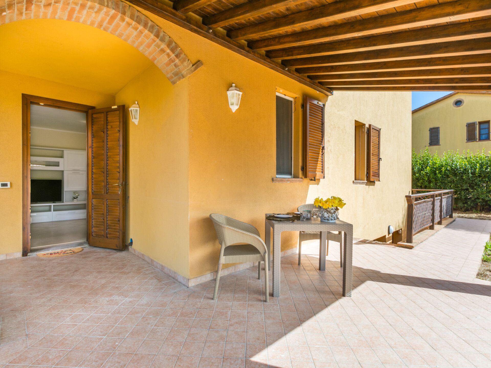 Flatgebouw "Al casone", van 2 verdiepingen. 8 huizen in de woning. 4.5 km van het centrum van Cecina, 5.5 km van het centrum van Montescudaio, in een woonwijk, 6.5 km van zee, 6.5 km van het strand. Voor alleengebruik: tuin 150 m2 (omheind). Wissel van linnengoed (extra wissel te betalen). Wissel van handdoeken (extra wissel te betalen). 50 m lange rommelige toegangsweg. Parkeerplaats op het terrein. Winkel 5 km, levensmiddelenwinkel 50 m, supermarkt 3 km, restaurant, bar, café 50 m, bushalte "Casagiustri" 50 m, zandstrand "Marina di Cecina" 6.5 km, thermaalbad "Calidario" 38 km. Golfterrein (9 holes) 12 km. Attracties in de buurt: Volterra 33 km, Pisa 60 km, Lucca 80 km, Firenze 110 km.