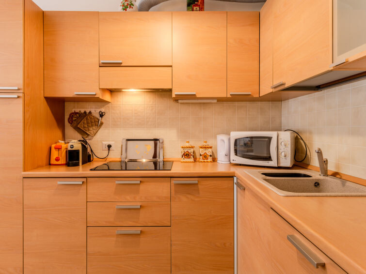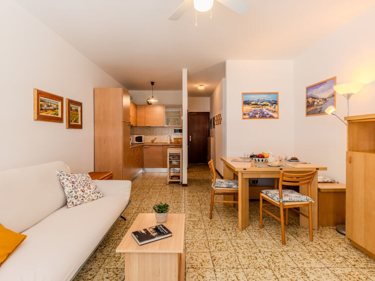 Appartement 2-kamers 50 m2 op de 2e verdieping. Comfortabel ingericht: woon-/eetkamer met TV. 1 kamer met 1 bed en 1 2-pers bed. Keuken (afwasmachine, 4 inductiekookplaten, broodrooster, waterkoker, magnetron, elektrische koffiemachine). Douche/bidet/WC. Olie-verwarming. Verwarming alleen beschikbaar van 15.10. tot 15.04. Ter beschikking: wasmachine, haardroger. Internet (WiFi, gratis). Parkeerplaats (1 Auto). Niet rokers woning. Maximaal 1 klein huisdier/hond toegestaan. Brandblusser, geen lift. IT013089C2JFQSW55J