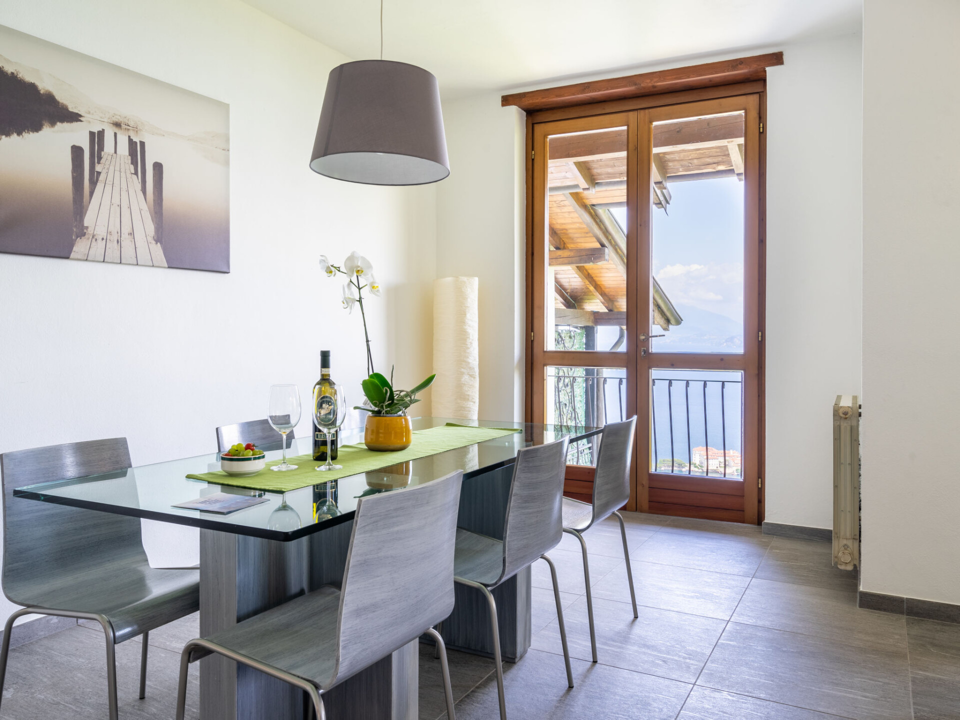 "Alba (SEA115)", appartement 3-kamers 90 m2 op 2 verdiepingen op de 1e verdieping. Licht, modern ingericht: woon-/slaapkamer met 1 2-pers divanbed, open haard, eettafel en Sat-TV. Uitgang naar het balkon. Open keuken (oven, 4 kookpitten (vlammen), diepvriezer). Aparte WC. Bovenverdieping: 1 kamer met 1 2-pers bed (180 cm). 1 kamer met 2 bedden. Bad/WC. Gas-verwarming. Houten vloeren. Balkon. Balkonmeubilair. Panoramazicht op het meer. Ter beschikking: wasmachine, kinderstoel, kinderbed tot 2 jaar. Internet (Internet (WiFi), gratis). Rookvrij huis. Maximaal 1 huisdier/hond toegestaan. Privé ingang. IT103064C2XCVT276E