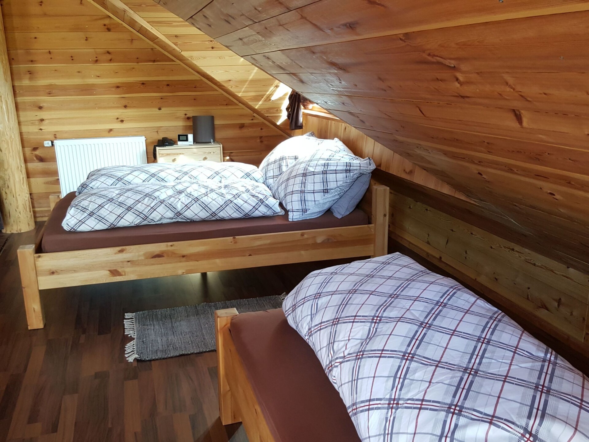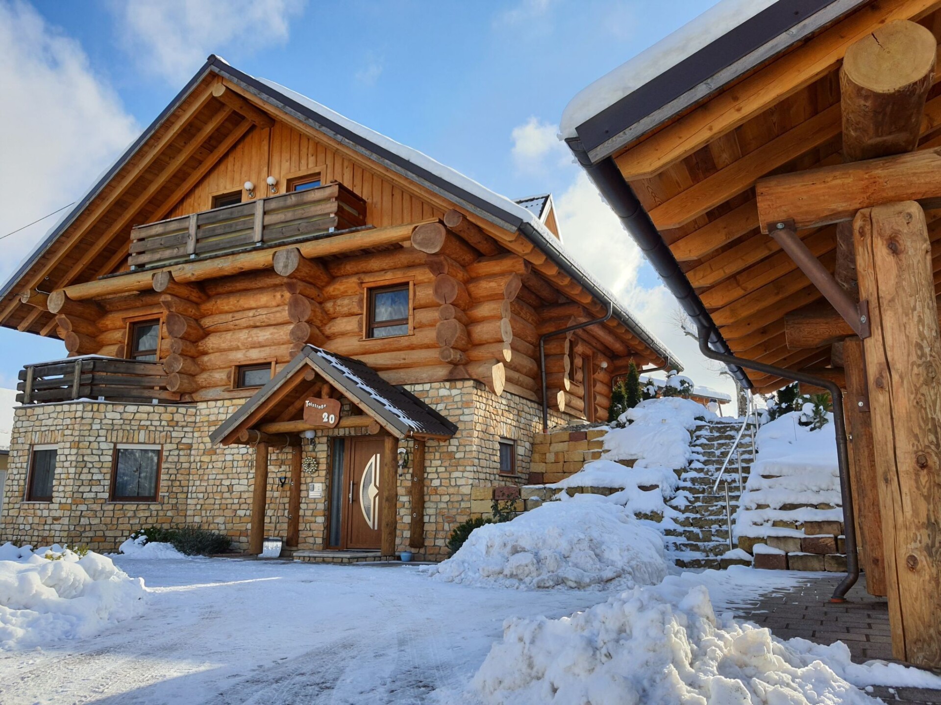 Maximaal 2 huisdieren/honden toegestaan. Here you have the opportunity to rent a unique large Douglas fir log holiday home, idyllically situated in a district of 72226 Simmersfeld in the northern Black Forest. The climatic health resort of Simmersfeld is located in the centre of the Northern Black Forest, between Bad Wildbad and Freudenstadt, on an undulating high plateau with a particularly health-promoting stimulating climate in a magnificent Black Forest landscape.The 10 beds (4 double beds, 2 single beds, 2 sofa beds), the living room, the fully equipped kitchen with adjoining dining area, 2 bathrooms and a separate WC are spread over 3 floors.In the basement there is a modern cellar bar with projector, home cinema system, DVD player, music system, a bathroom with shower and WC and a parents' bedroom. A cot is available for younger guests (please bring your own bed linen).In order to really enjoy the holiday atmosphere in the lovingly designed outdoor area. A large sauna facility with shower cubicle, WC and lounge area is available.You can round off the evening in the cosy barbecue area with seating corner. There are comfortable lounge areas on the spacious terraces where you can switch off and relax.Interior:There are 2 televisions on the ground floor and in the attic. The basement and ground floor have a bathroom with shower and WC and there is a further WC on the top floor.The kitchen is fully equipped and leaves nothing to be desired for the housewife. It has a cooker, fridge, microwave, dishwasher, coffee machine, crockery, pots and pans, cutlery and so on.Important:The holiday home is a non-smoking house...Your pets are very welcome and have plenty of opportunity to run around in the spacious garden.Additional costs:- Electricity costs- water charges- final cleaning- Pet (MAX 2)- Deposit (payable in cash on arrival).