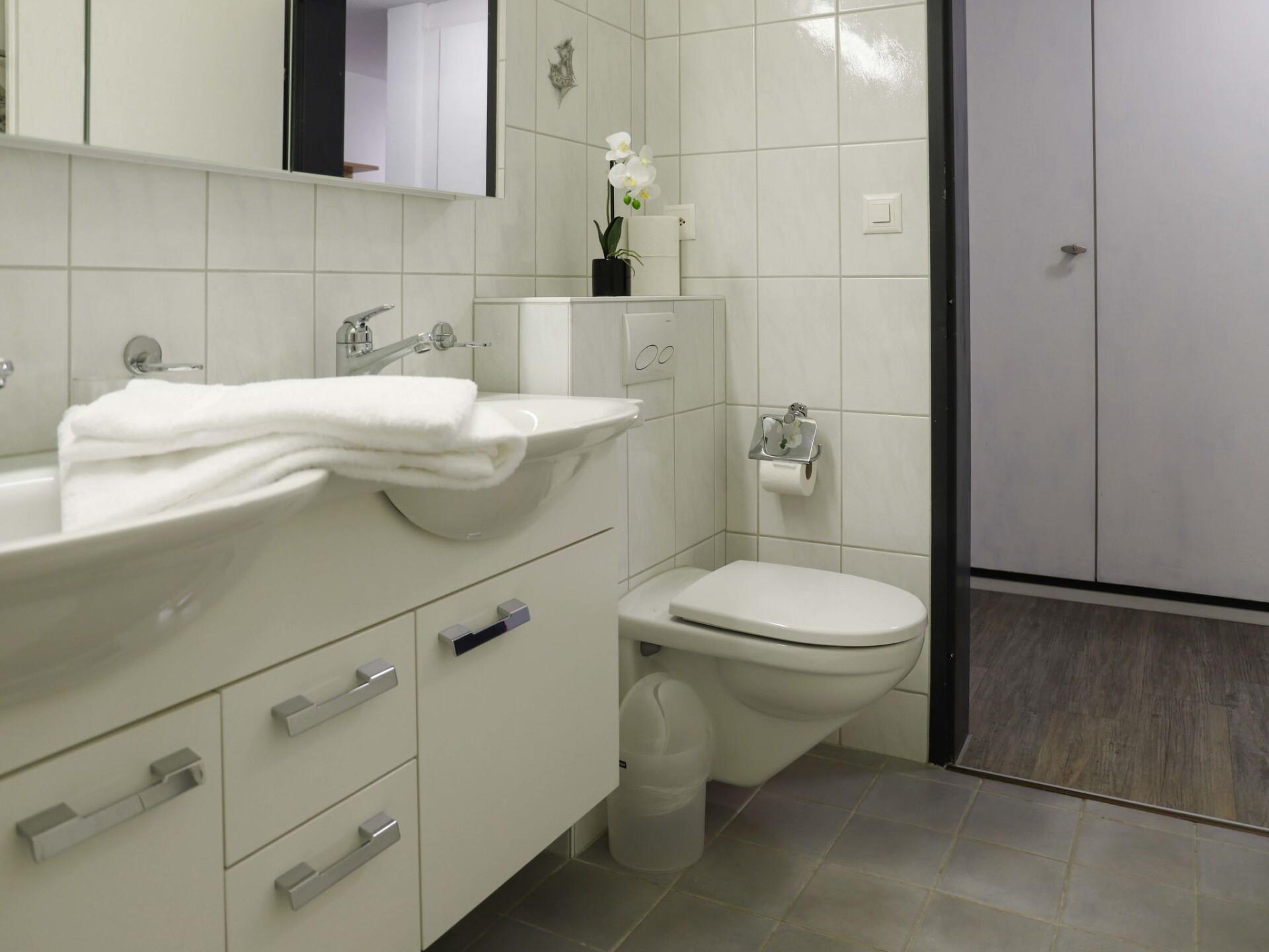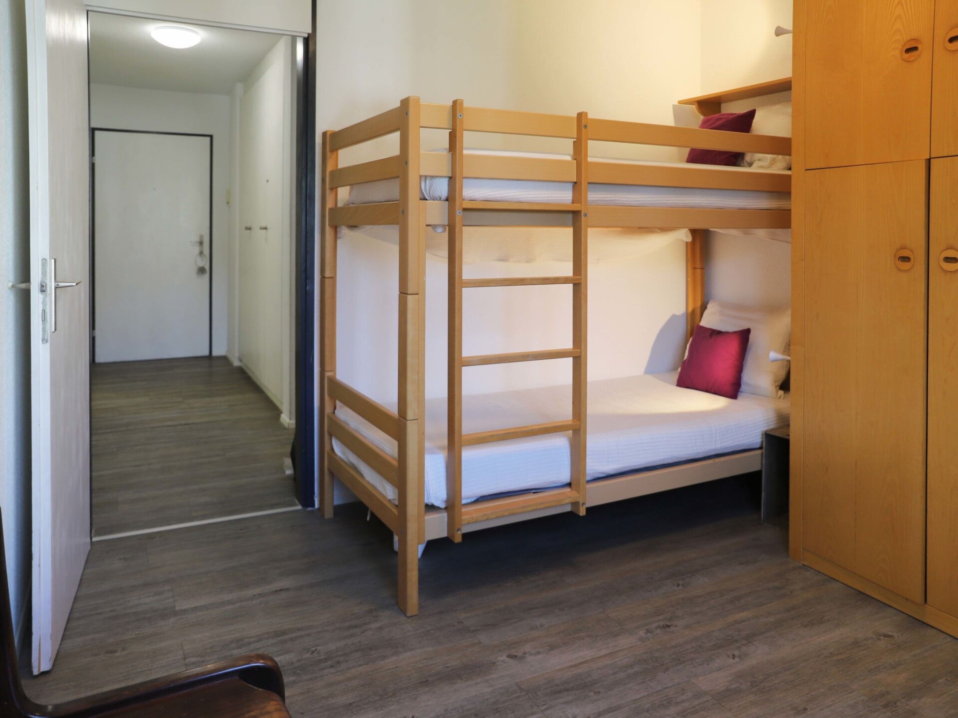 "Allod Park Haus C 307", appartement 3-kamers 75 m2 op de 3e verdieping, op het noordwesten gelegen. Ruim en licht, gerenoveerd, modern en smaakvol ingericht: woon-/eetkamer met Kabel-TV, Flatscreen TV en radio. Uitgang naar het balkon, op het westen. 1 2-pers. kamer met 1 2-pers bed (2 x 90 cm). 1 kinderkamer met 2 x 2 stapelbedden. Keuken (oven, afwasmachine, 4 keramische glas kookplaten, waterkoker, elektrische koffiemachine, pads voor de koffiemachine (Nespresso) extra). Douche/WC, dubbele wastafels. Parketvloeren. Uitzicht op de stad. Ter beschikking: Internet (WiFi, gratis). Parkeerplaats (extra) bij het huis. Woning aan de straatzijde. Niet rokers woning. Maximaal 1 huisdier/hond toegestaan. 11185