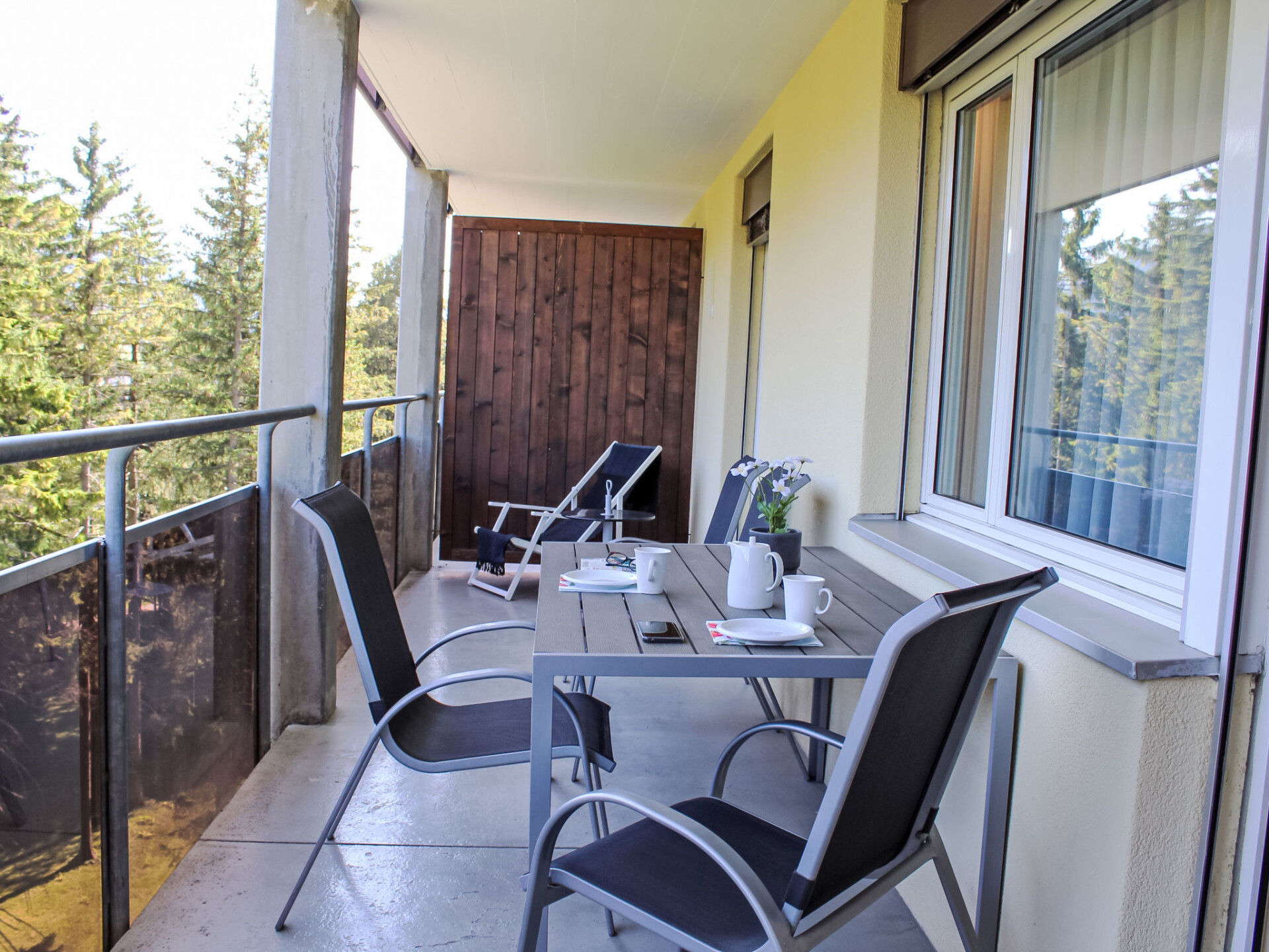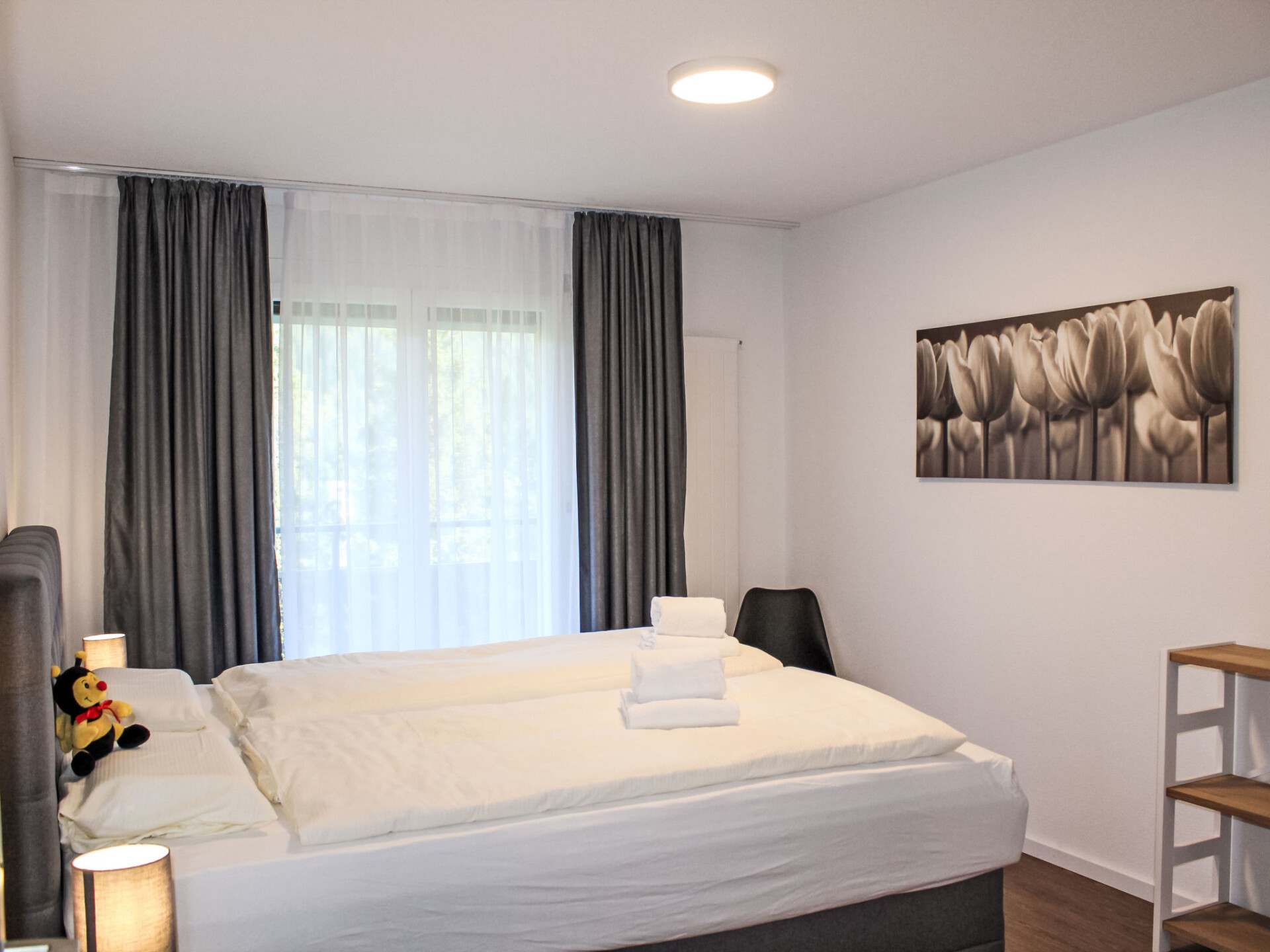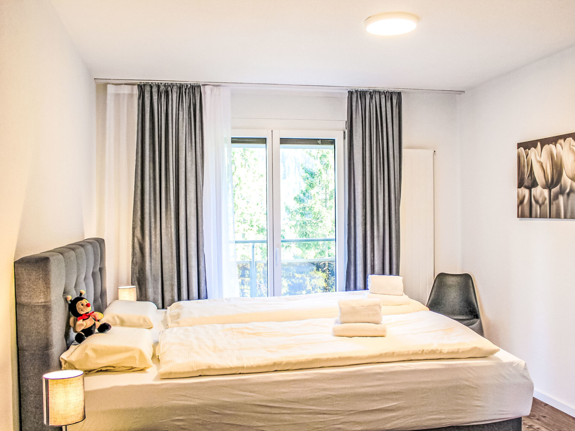 "Allod Park Haus C 502", appartement 2-kamers 55 m2 op de 5e verdieping, op het zuidoosten gelegen. Het objekt is geschikt voor 2 volwassenen + 1 kinderen. Ruim en licht, volledig gerenoveerd in 2025, zeer mooi en smaakvol ingericht: open woon-/eetkamer met eettafel en Kabel-TV (Flatscreen TV). Uitgang naar het balkon. 1 kamer met 1 2-pers bed (2 x 90 cm). Uitgang naar het balkon, op het zuidwesten. Keuken (oven, afwasmachine, 4 keramische glas kookplaten, elektrische koffiemachine, pads voor de koffiemachine (Nespresso) extra). Douche/WC, dubbele wastafels. Olie-verwarming. Parketvloeren. Groot balkon, op het zuidwesten gelegen. Balkonmeubilair, elektrische barbecue. Zeer mooi panoramazicht op de bergen, het landschap en de plaats. Niet rokers woning. 40623