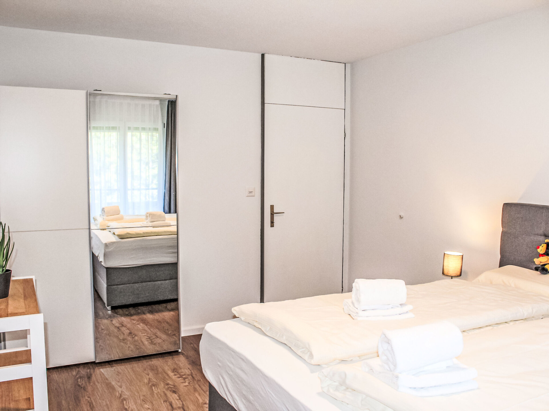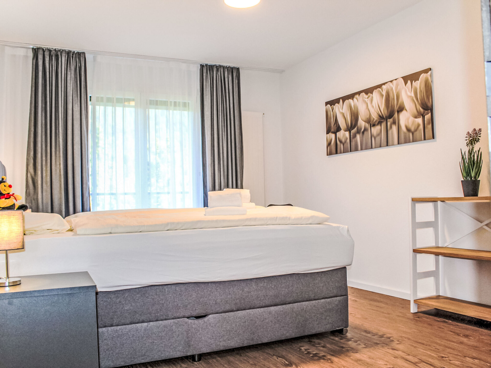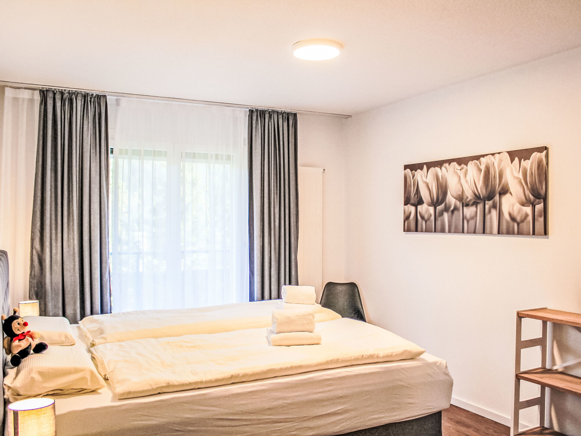 "Allod Park Haus C 502", appartement 2-kamers 55 m2 op de 5e verdieping, op het zuidoosten gelegen. Het objekt is geschikt voor 2 volwassenen + 1 kinderen. Ruim en licht, volledig gerenoveerd in 2025, zeer mooi en smaakvol ingericht: open woon-/eetkamer met eettafel en Kabel-TV (Flatscreen TV). Uitgang naar het balkon. 1 kamer met 1 2-pers bed (2 x 90 cm). Uitgang naar het balkon, op het zuidwesten. Keuken (oven, afwasmachine, 4 keramische glas kookplaten, elektrische koffiemachine, pads voor de koffiemachine (Nespresso) extra). Douche/WC, dubbele wastafels. Olie-verwarming. Parketvloeren. Groot balkon, op het zuidwesten gelegen. Balkonmeubilair, elektrische barbecue. Zeer mooi panoramazicht op de bergen, het landschap en de plaats. Niet rokers woning. 40623