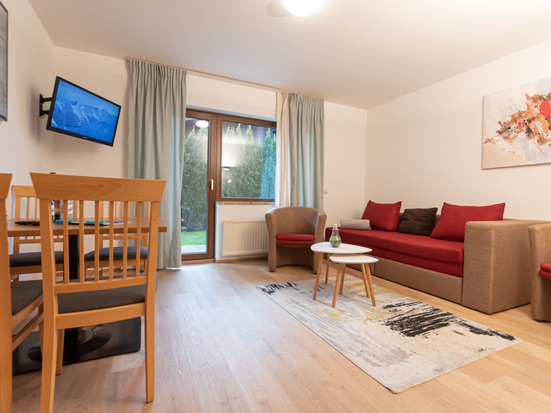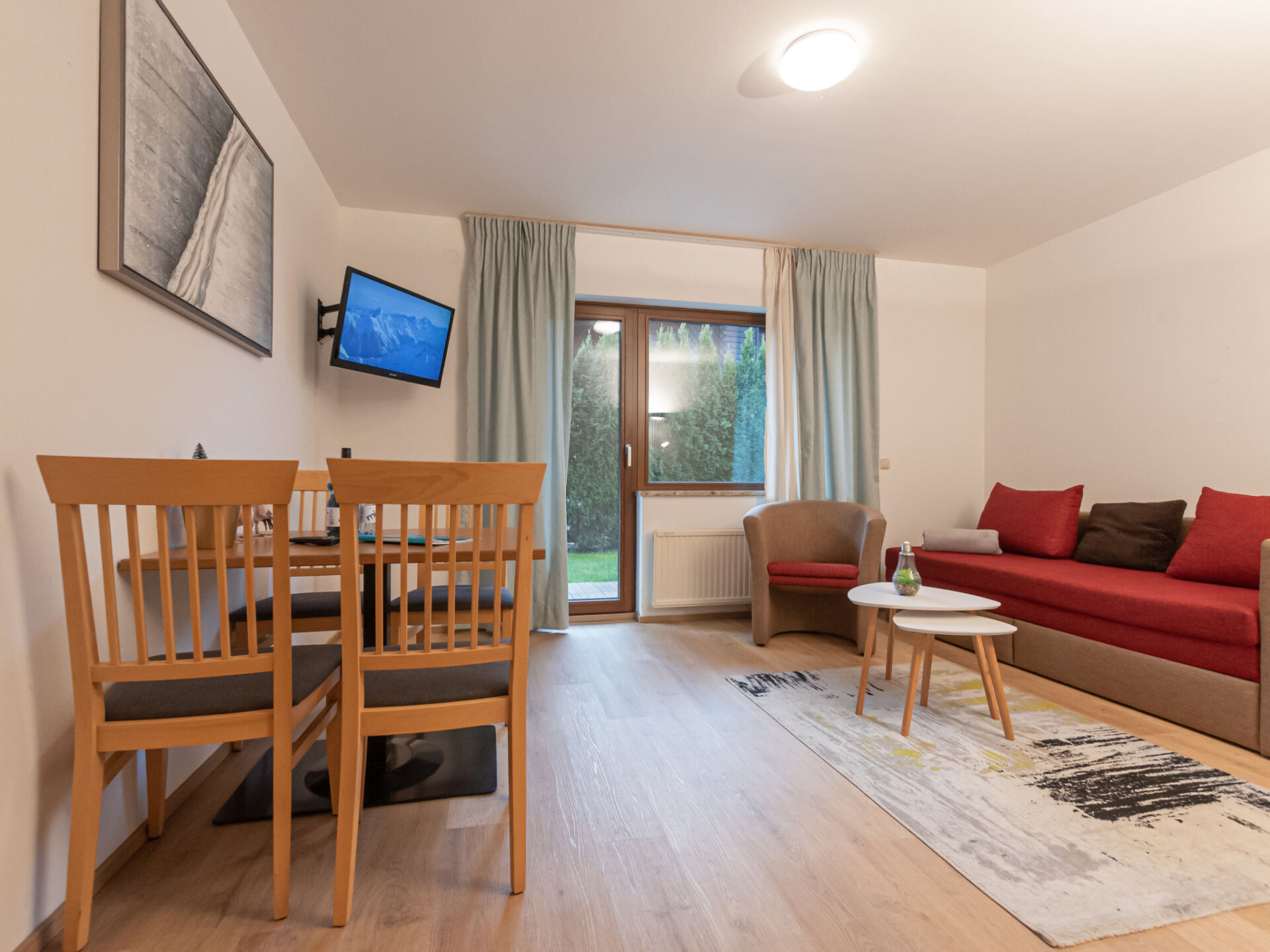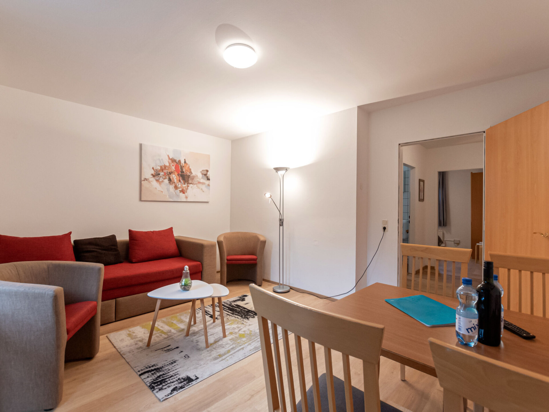 "Alpenchalets", appartement 2-kamers 50 m2, op de begane grond. Gerenoveerd in 2019, gezellig ingericht: woon-/slaapkamer met 1 2-pers divanbed, eettafel en Kabel-TV. Uitgang naar het terras. 1 kamer met 1 2-pers bed (160 cm). Keuken (afwasmachine, 4 keramische glas kookplaten, broodrooster, waterkoker, magnetron, elektrische koffiemachine). Douche/WC. Elektrische verwarming. Parketvloeren. Terras. Terrasmeubelen. Ter beschikking: kinderstoel, kinderbed. Internet (WiFi, gratis). Parkeerplaats (1 Auto). 1 huisdier/hond toegestaan. 50628-001024-2020