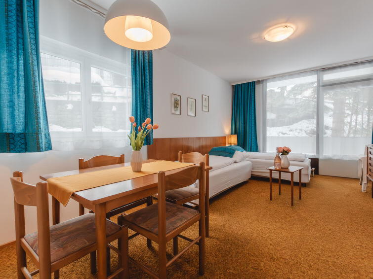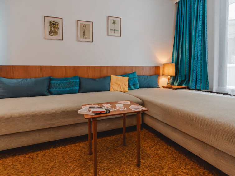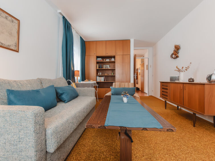 "Alpenpanorama", appartement 2-kamers 60 m2 op de 1e verdieping. Het objekt is geschikt voor 4 volwassenen. Eenvoudig en doelmatig ingericht: hal. Woon-/slaapkamer met 1 2-pers divanbed en radio. Uitgang naar het balkon. Woon-/eetkamer met 2 bedden (90 cm, lengte 200 cm), eettafel, Kabel-TV en Flatscreen TV. Uitgang naar het balkon. Kleine keuken (4-pits kookplaat, oven, afwasmachine, elektrische koffiemachine). Bad/WC. Vloerbedekking. 2 balkons. Ter beschikking: kinderstoel. Internet (Internet (WiFi), gratis). Geschikt voor families. 50403-000507-2023