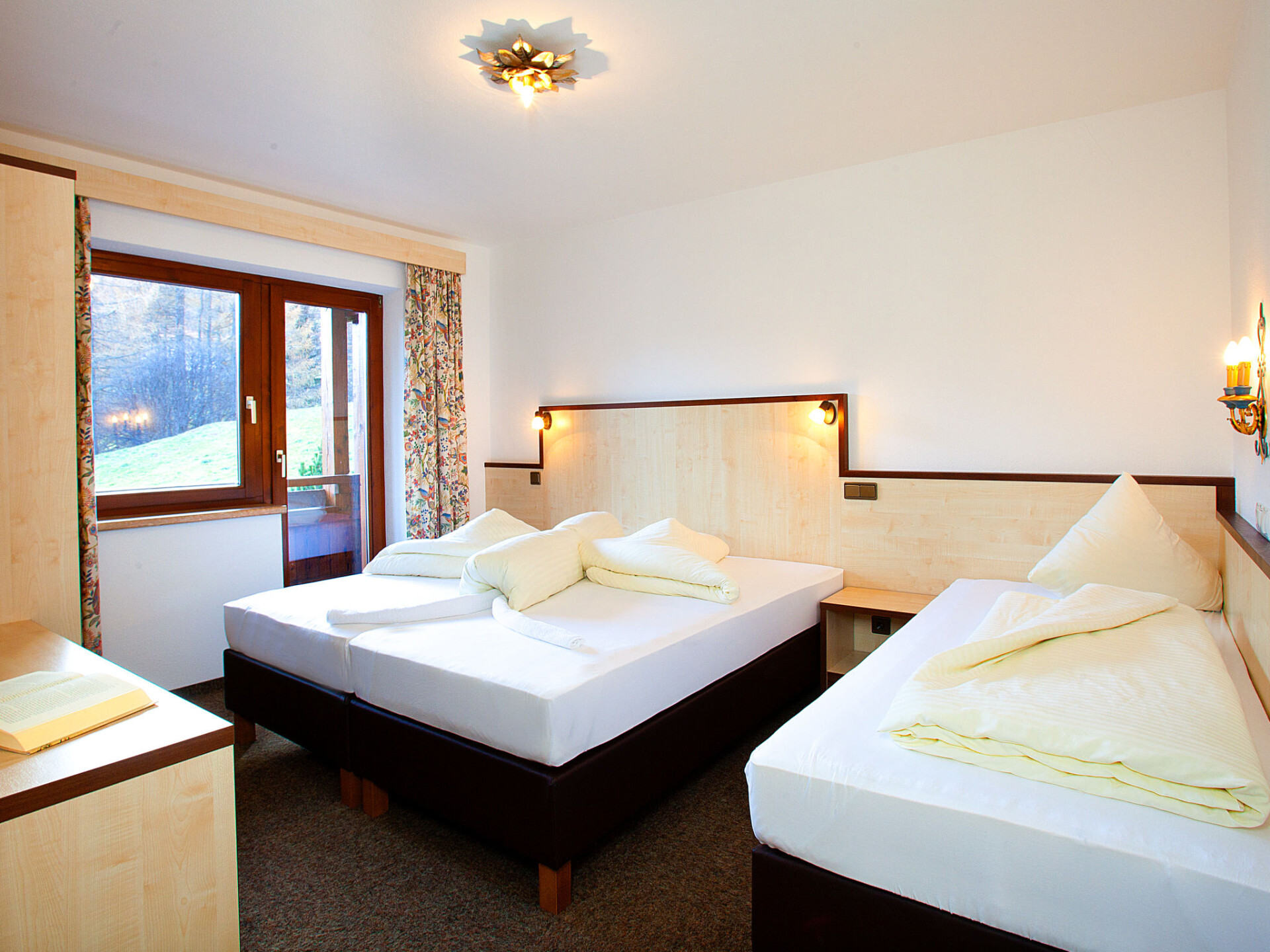 Appartement 5-kamers 117 m2 op de 1e verdieping. Ruim, smaakvol ingericht: 1 2-pers. kamer met Kabel-TV (Flatscreen TV). 3 kamers, elke kamer heeft 1 bed, 1 2-pers bed en Kabel-TV (Flatscreen TV). Woon-/eetkamer met eettafel en Sat-TV (Flatscreen TV). Open keuken (oven, afwasmachine, 4 keramische glas kookplaten, magnetron, elektrische koffiemachine). 3 douche/WC's, aparte WC, dubbele wastafels. Comfortabele inrichting in landelijke stijl. 2 balkons. Mooi panoramazicht op de bergen en het dal. Ter beschikking: telefoon, kluis, haardroger. Internet (Internet (WiFi), gratis). Parkeerplaats (3 Auto's). Niet rokers woning. Rookmelders. Boxspringbedden kunnen als een tweepersoonsbed of twee eenpersoonsbedden gebruikt worden. Als er minder dan het maximale aantal gasten in de accommodatie verblijft, zijn niet alle wooneenheden beschikbaar voor gebruik.