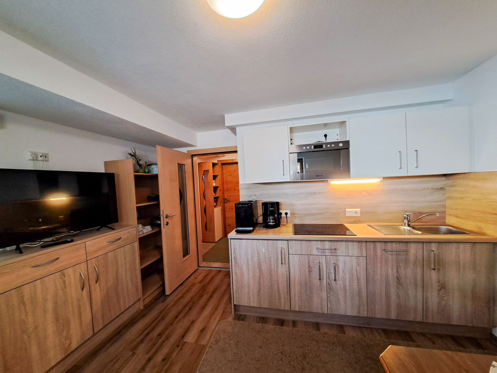 "Alpina", Accomodatie 2-kamers 35 m2. Mooi en gezellig ingericht: 1 2-pers. kamer met Sat-TV. Uitgang naar het terras. Kleine keuken (4 keramische glas kookplaten, broodrooster, waterkoker). Bad/WC. Verwarming. Klein terras 5 m2. Terrasmeubelen. Mooi uitzicht op de bergen. Ter beschikking: Internet (WiFi, gratis). Parkeerplaats. Niet rokers woning.