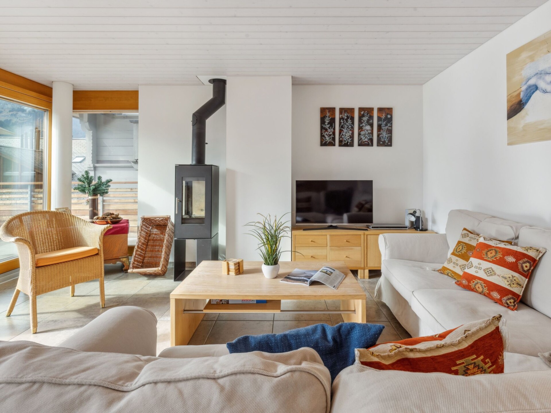 "Am Acher II Apt. F", appartement 3-kamers 93 m2 op de 3e verdieping. Ruim en licht, modern en stijlvol ingericht: woon-/eetkamer met zwedenkachel, Kabel-TV en DVD. Uitgang naar het balkon. 1 kamer met 1 2-pers bed (1 x 180 cm, lengte 200 cm), bad/douche/WC. 1 kamer met 2 bedden (90 cm, lengte 200 cm). Groot, open keuken (oven, afwasmachine, 4 inductiekookplaten, broodrooster, waterkoker, magnetron, elektrische koffiemachine, pads voor de koffiemachine (Nespresso) extra, raclette oven, fondue Set (kaas)). Douche/WC. Groot balkon, op het westen gelegen. Balkonmeubilair. Mooi panoramazicht op de bergen. Ter beschikking: wasmachine, droger, strijkijzer, haardroger, haardhout (extra). Internet (WiFi, gratis). Niet rokers woning.