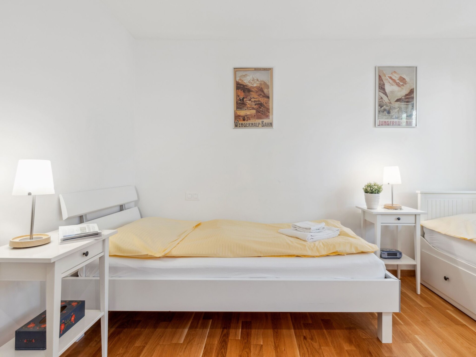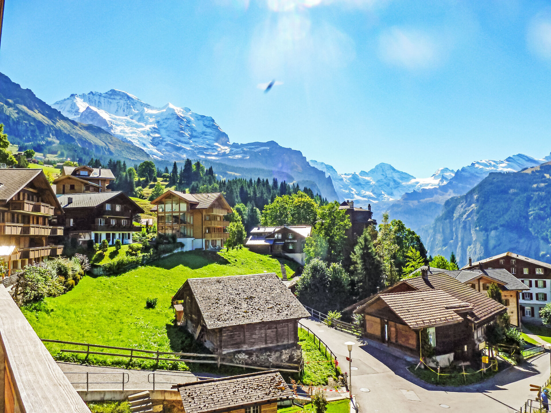 Flatgebouw "Am Acher II", bouwjaar 2008. In de wijk Am Acher, 250 m van het centrum van Wengen, tegen een helling, perfecte locatie: in het centrum en toch rustig gelegen. In het huis: lift, centrale verwarming. Boodschappenpakket mogelijk bij aankomst. Winkel, supermarkt 250 m, restaurant 100 m, bar, bakkerij 250 m, centrum te voet bereikbaar in 3 minuten, bushalte "Lauterbrunnen (by train)" 3.3 km, treinstation "Wengen" 250 m, openluchtzwembad 600 m. Kabelbaan, ski faciliteiten 250 m, kinderspeelplaats 100 m. Bekende meren kunnen gemakkelijk worden bereikt: Thunersee 13 km, Brienzersee 13 km. Autovrij vakantiepark. Aankomst is via berglift. Aankomst alleen mogelijk met de trein van Lauterbrunnen – 14 minuten rijden.