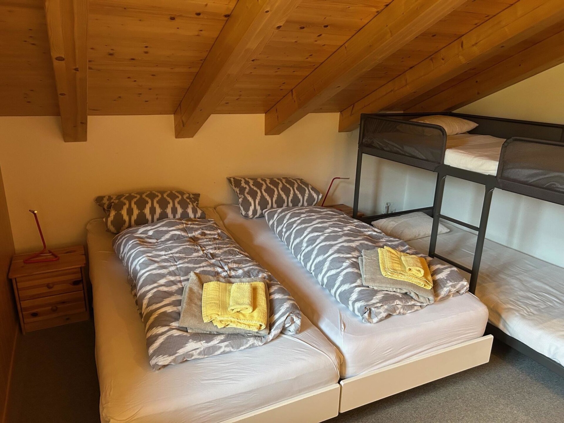 75 m2. Meer informatie beschikbaar bij de aanbieder: 3-room apartment (75m2) on the 2nd floor, chalet with 6 apartments. Bath/toilet. 2 bedrooms and gallery with 5 beds in total. Linen available. Kitchen with oven, refrigerator, dishwasher. Living-dining room with fire place, cable TV, dvd-player, radio, phone, WLAN. Balcony with garden furniture, garage, washing machine, room for ski equipment, central heating. Pets are not allowed.