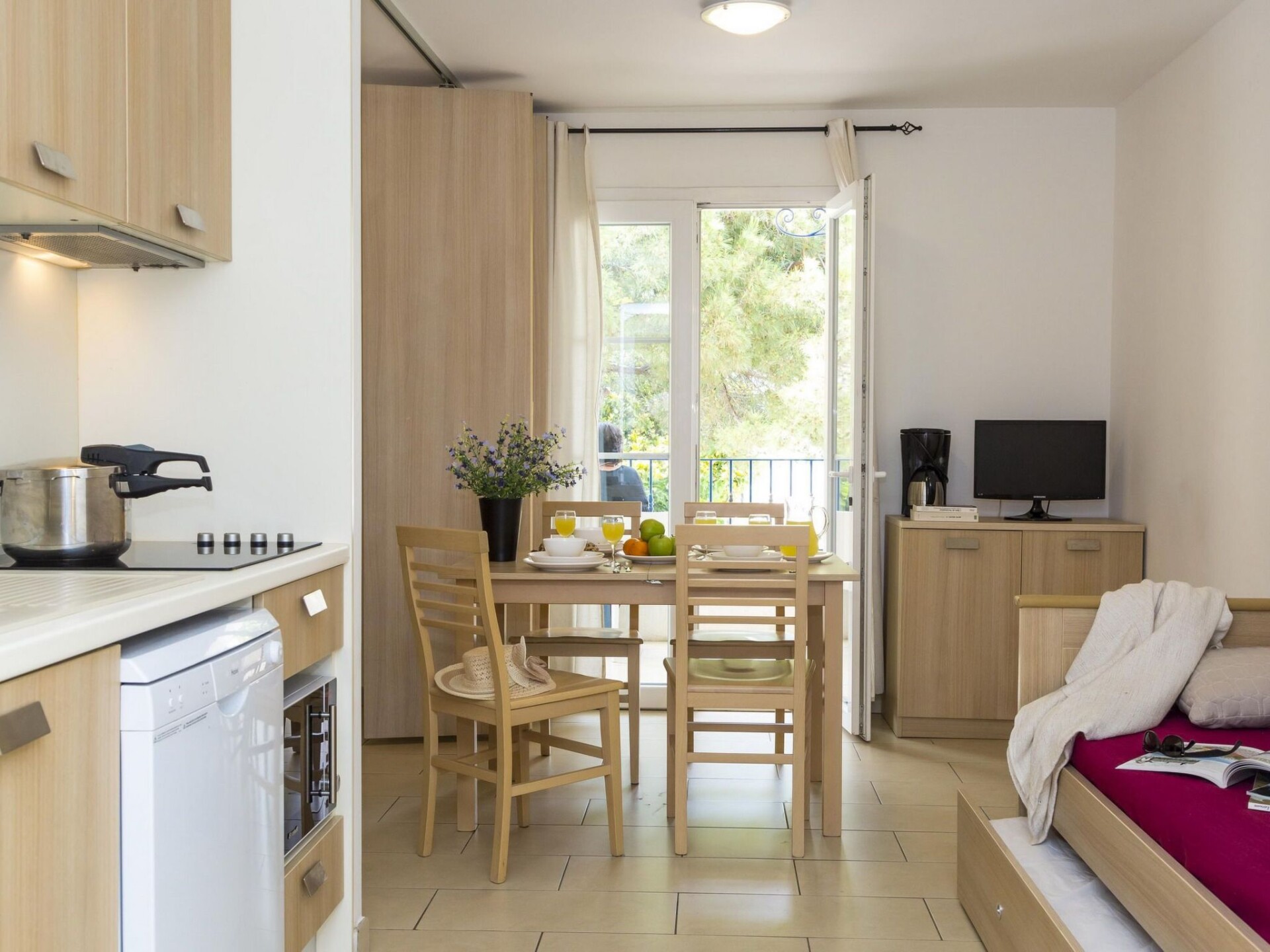De residentie ligt in het hart van Solenzara, een klein dorpje aan de zuidkust van Corsica. Het is een plek die geschikt is voor wie een vakantie wil doorbrengen aan de prachtige omliggende stranden, maar ook voor wie van de natuur en de bergen houdt en watervallen, natuurlijke zwembaden, kloven en kleine dorpjes op de bergen wil bezoeken. De residentie ligt vlakbij de toeristische haven en het dichtstbijzijnde strand ligt op 150 meter afstand. Restaurants en winkelmogelijkheden in de directe omgeving. De residentie bestaat uit 49 appartementen verdeeld over de drie verdiepingen van het gebouw. Ter beschikking van de gasten is er een garage (gratis, ter beschikking van de gasten), een klein zwembad (8x4 m, tot 120 cm diep), geopend van april tot september, en een lift. Tweekamerappartement voor 4 personen, 40 m2: Woonkamer met tweepersoonsslaapbank, TV, keukenhoek (magnetron, afwasmachine, koelkast), slaapkamer met tweepersoonsbed (140 cm bed), badkamer met douche. Airconditioning. Balkon. Afstanden: Restaurants, winkels en muntautomaat in de directe omgeving. Portovecchio 35 km, Bastia 100 km. Basisinformatie - Huisdieren toegestaan: geen - bevindt zich in: residentie - totaal aantal verdiepingen in het gebouw boven de begane grond: 3 - huiseigenaar woont op het perceel - aantal slaapkamers: 1 - aantal badkamers: 1 Top eigenschappen - airconditioning: overal - balkon - Buitenzwembad - ㄴ maximale diepte: 120 cm - ㄴ lengte: 400 cm - ㄴ breedte: 800 cm - privéparkeerplaatsen in totaal: meer dan 10 - ㄴ daarvan parkeerplaatsen in garage: meer dan 10 Slapen in de leefruimte - 2x tweepersoonsslaapbank slaapkamer 7 - tweepersoonsbed (van 1,31 m tot 1,50 m breed) Badkamer badkamer 7 - douche - wastafel - toilet Koken/Wonen - koelkast/vriezer: diepvriesvak, koelkast - kookplaat: keramische kookplaat - magnetron - waterkoker - vaatwasser - aantal eettafels: 1 - maximaal aantal zitplaatsen: 4 - aantal woonkamers: 1 Entertainment - televisie: tv Toegankelijkheid - lift in huis Omgeving - uitzicht: uitzicht - dichtstbijzijnde centrum van een plaats: 0 m - levensmiddelenzaak: 50 m - uitgaansgelegenheid: 10 m - restaurant: 10 m - haven: 10 m - strand: 150 m - zee: 30 m - bootverhuur