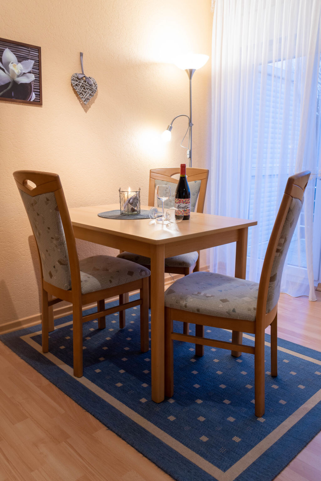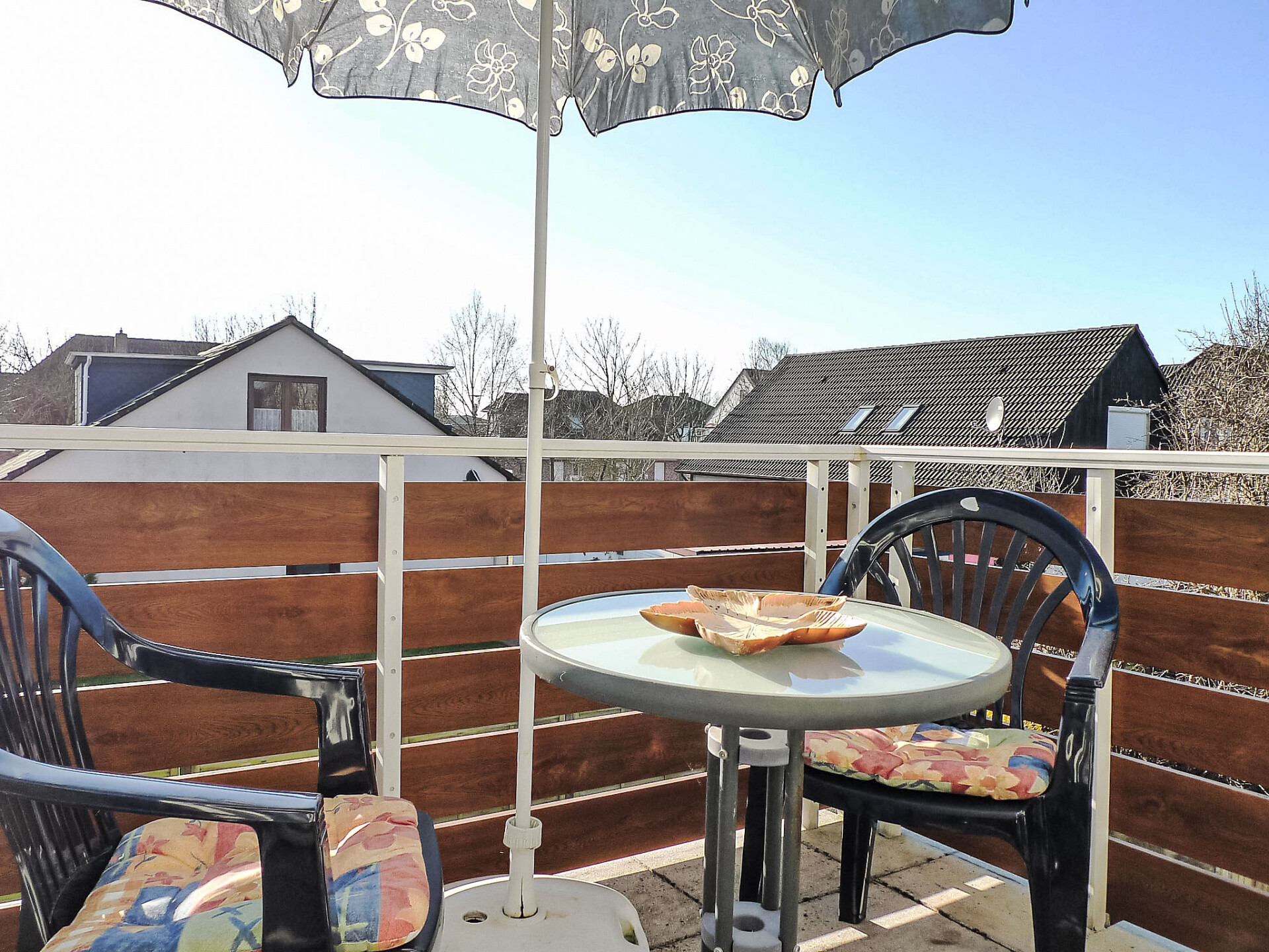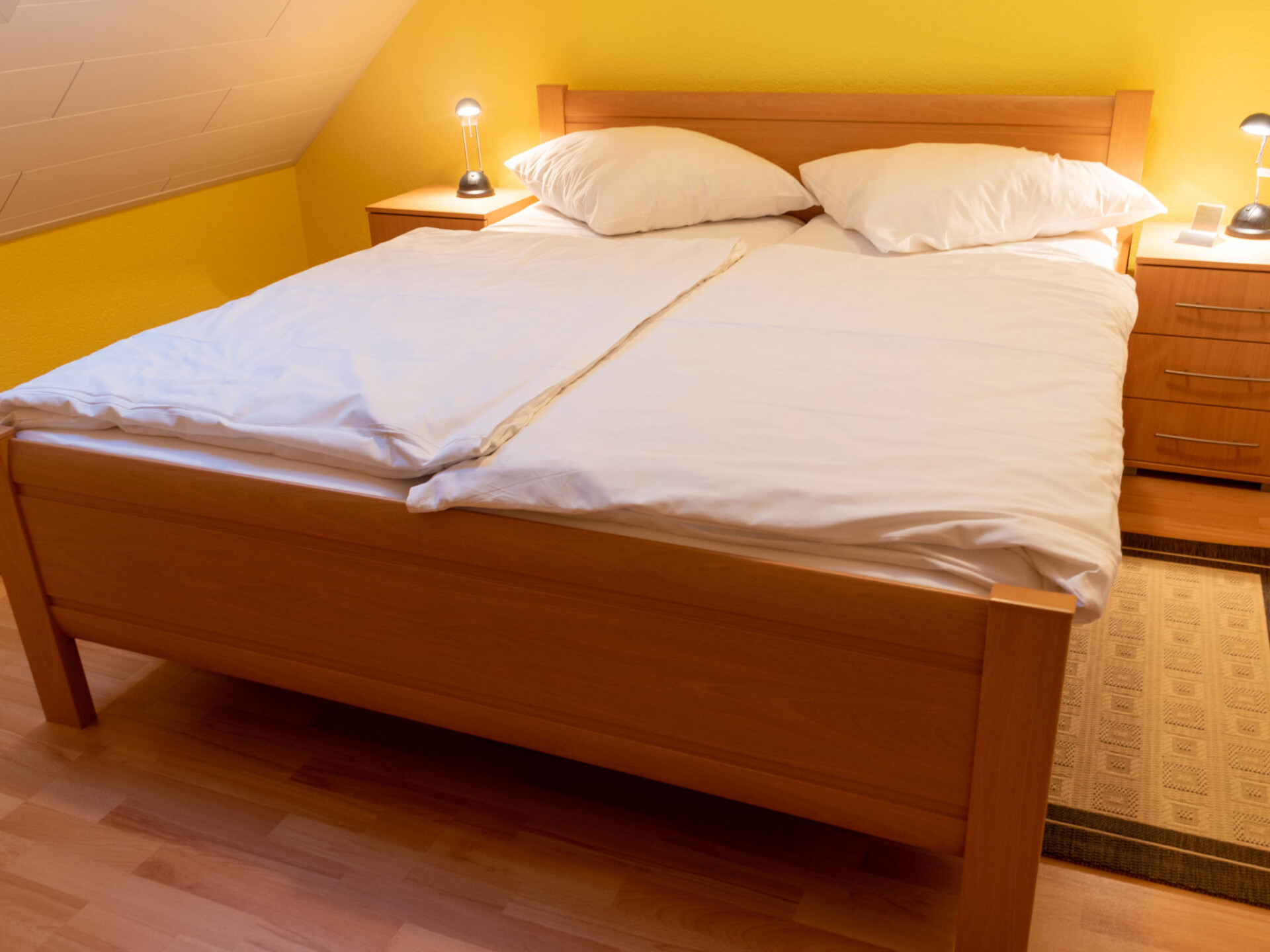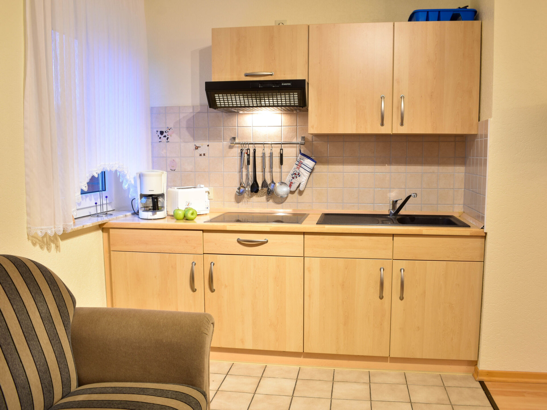 Appartement 2-kamers 38 m2, op de bovenverdieping. Woon-/eetkamer 18 m2, met afgeschuinde daken met Kabel-TV (Flatscreen TV), radio. 1 kamer 6 m2, met afgeschuinde daken met 1 2-pers bed (2 x 80 cm, lengte 200 cm). Kookhoek (4-pits kookplaat, broodrooster, waterkoker, magnetron, elektrische koffiemachine). Douche/WC. Klein balkon. Balkonmeubilair. Ter beschikking: kinderstoel (extra). Internet (Internet (WiFi), gratis). Koelkast zonder vriesvak, niet rokers woning.