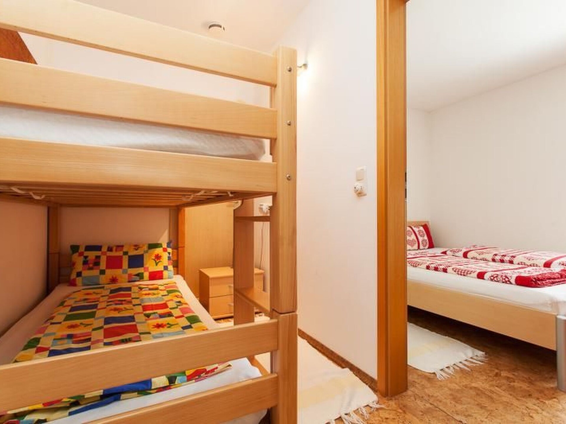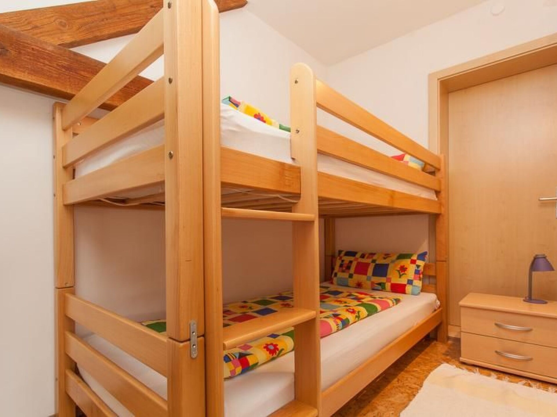 Discover your personal holiday happiness in our charming top-floor flat with a generous living space of 55 m² and the sunny south-facing balcony, which invites you to spend relaxing hours. This special accommodation combines comfort and cosiness so that you can experience unforgettable holiday moments. Whether for a family holiday or a time-out for two - here you will find everything your heart desires.Inside, the flat has a fully equipped kitchen that leaves nothing to be desired: From an oven with 4 hobs to a coffee machine, dishwasher, kettle and toaster, everything is provided. The living room also has a spacious sofa and a colour TV with satellite connection for entertaining evenings. The bedroom with a cosy double bed and the children's room with a bunk bed round off the comfortable interior. The bathroom/WC is equipped with a shower.The outdoor area invites you to linger outside with a balcony and a garden for communal use. A charging station for electric cars directly at the house underlines the modern comfort of our holiday flat. The quiet location in the detached house, where the owner also lives, guarantees a relaxing stay.The surrounding area offers a perfect mix of nature experiences and leisure activities. With the nearby lake just 4 km away and a ski school 5 km away, both water rats and winter sports fans are well catered for. The nearest village centre and food markets are both just 4 km away, making self-catering a breeze.Enjoy a well-earned break in our cosy and lovingly furnished holiday flat. Everything has been thought of to make you feel at home from the moment you arrive. From the idyllic location to the thoughtful furnishings - this accommodation is the ideal starting point for your explorations and the perfect temporary home.
