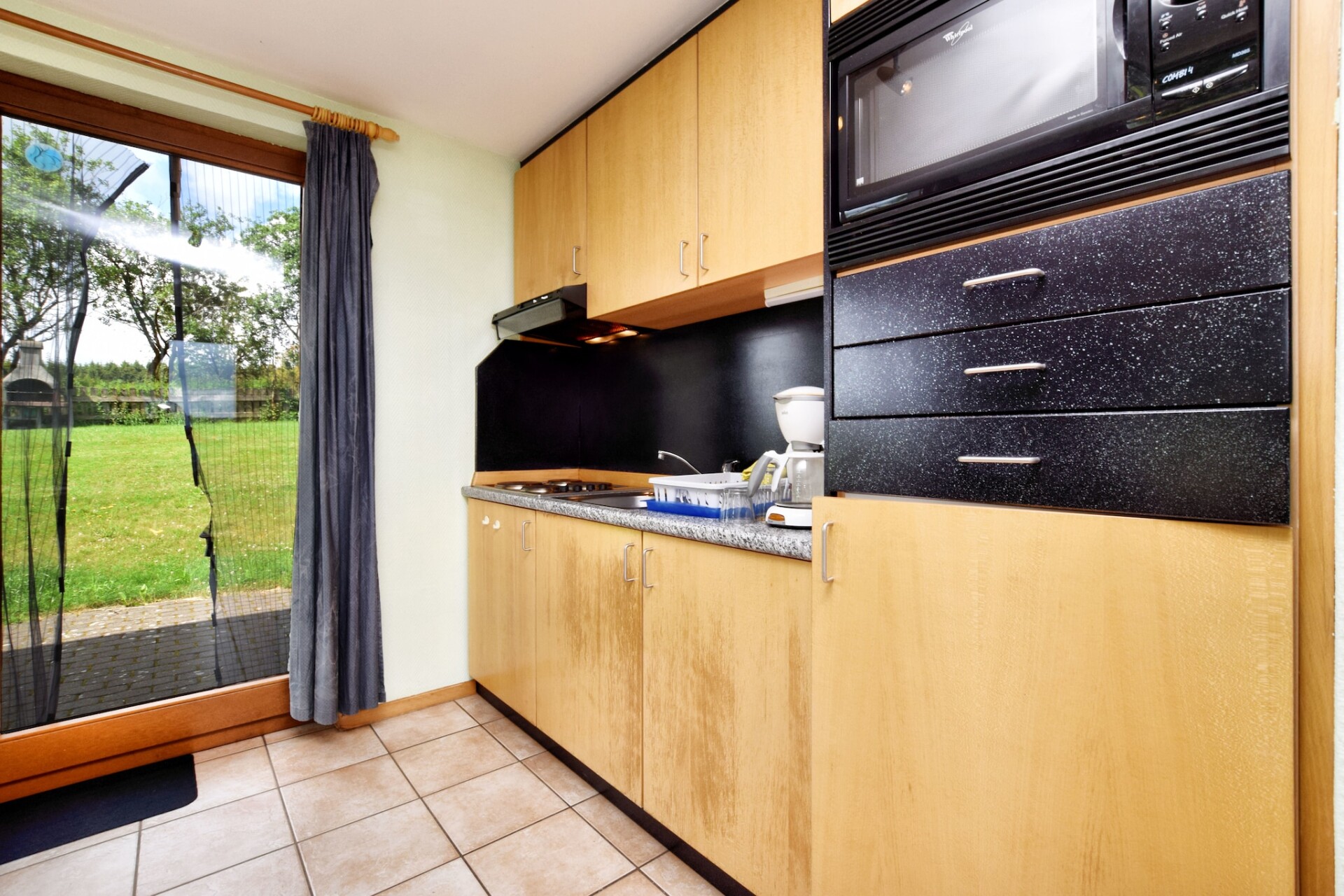 Binnen vindt u een lichte woon-/eetkamer met tv, een volledig uitgeruste open keuken met een koffiezetapparaat, een combimagnetron en een koel-vriescombinatie. De moderne badkamer is voorzien van een douche en een wastafel. De slaapkamers beschikken over een tweepersoonsbed en een stapelbed, waardoor het ideaal is voor gezinnen met kinderen.