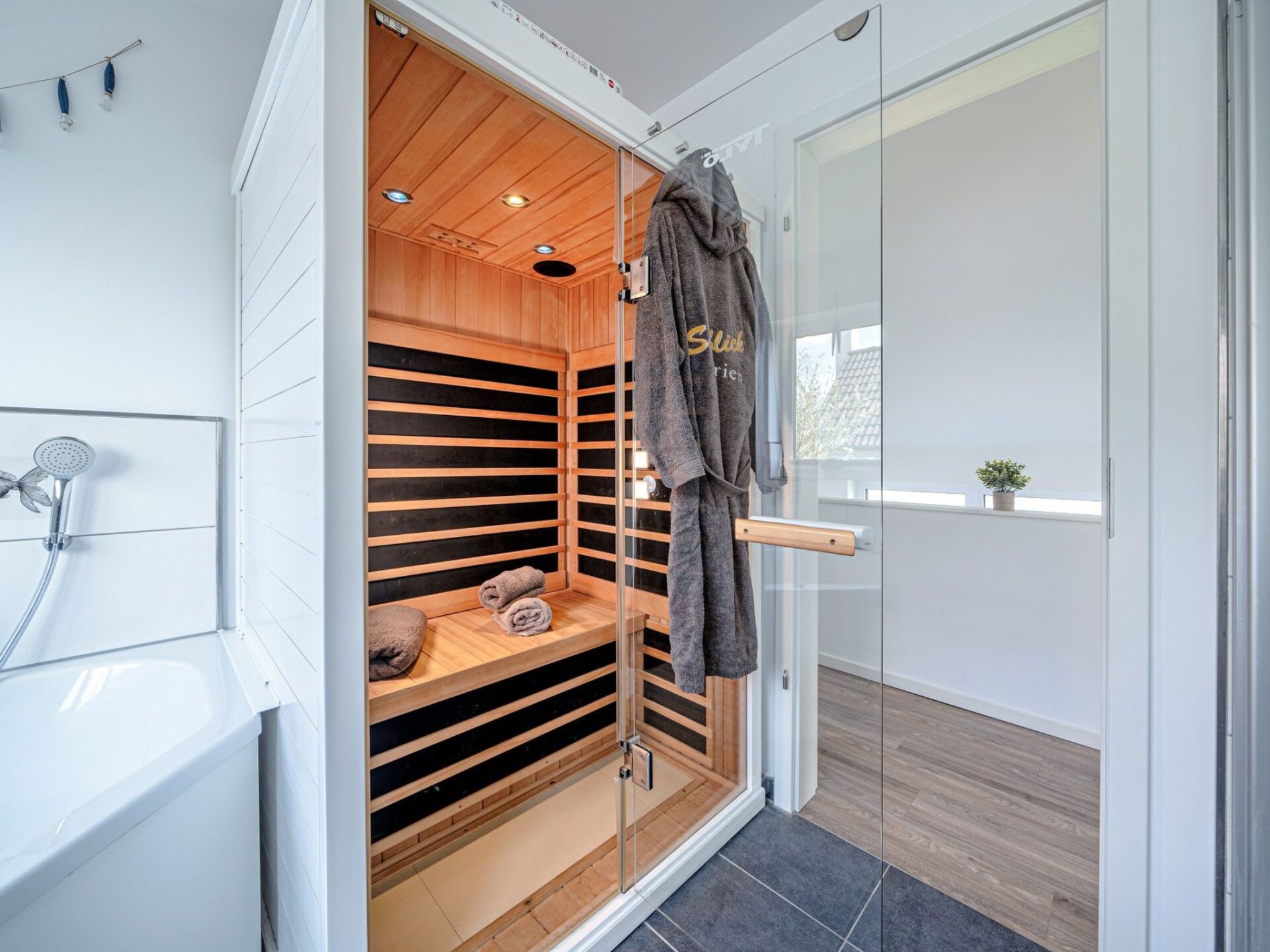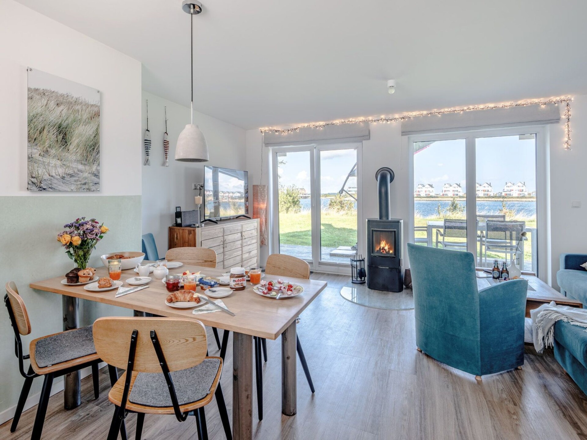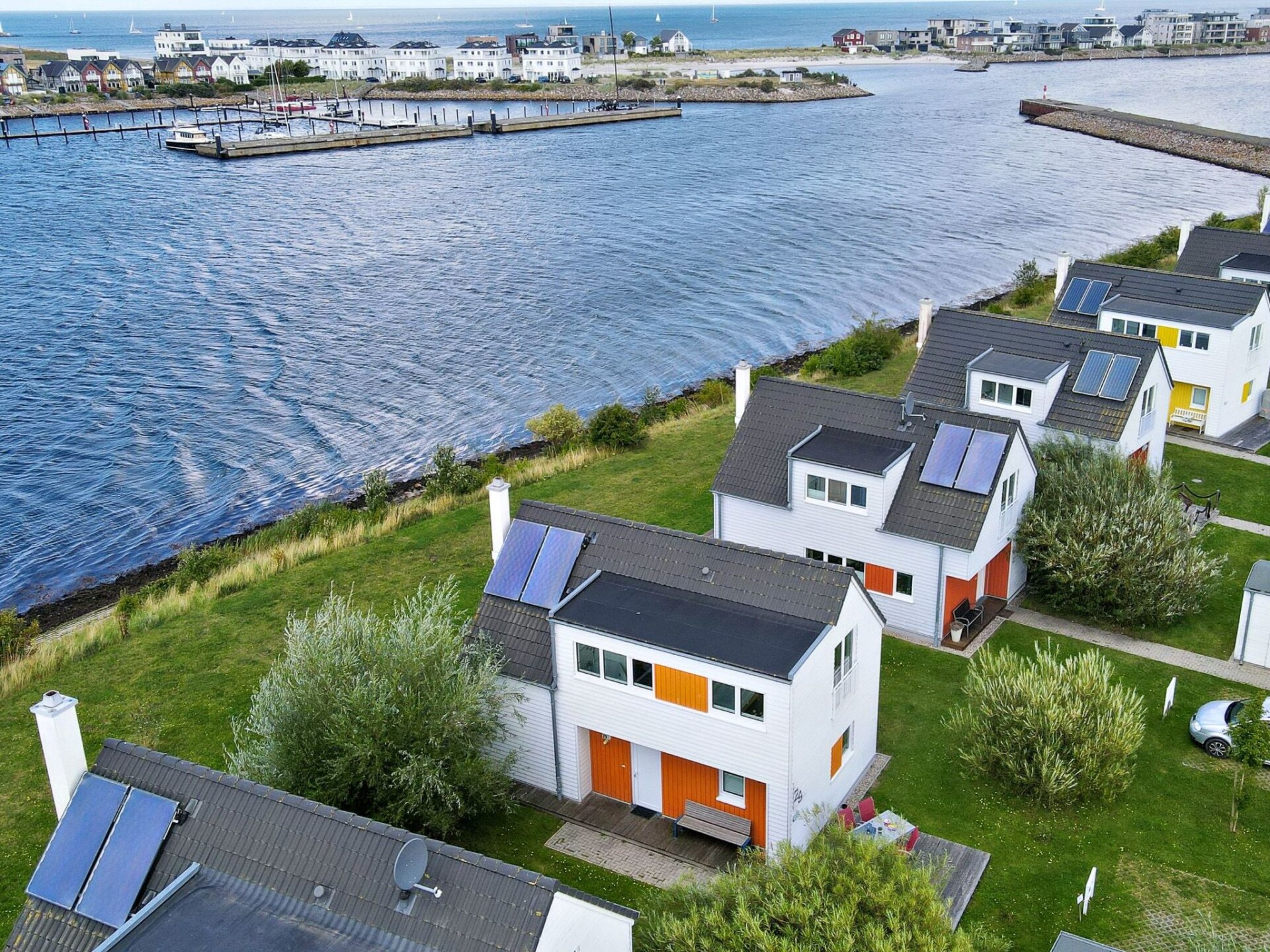 Atraveo:Welcome to the exclusive holiday home "An der Ostsee by Seeblick Ferien ORO"Experience pure luxury in the modern holiday home "An der Ostsee by Seeblick Ferien ORO", which is located in the first row with a view of the harbour basin and directly on the Baltic Sea. This outstanding location combined with first-class facilities makes this holiday home a real gem. Enjoy your own garden and the proximity to the popular Weidefeld beach, which is just a short walk away.Living area and facilitiesThe open-plan living area on the ground floor is the perfect place to enjoy the view of the glistening water. Whether you're dining together or enjoying a cosy evening by the fireplace in the living room - you'll experience that pure Baltic Sea feeling here.Outdoor areaThe spacious terrace offers a unique view of passing sailing and sports boats, while the private garden promises peace and relaxation. An electric Weber barbecue and sun loungers are available.KitchenIn the well-equipped kitchen, you will find a Nespresso machine for the perfect start to the day. An extra freezer is integrated in the kitchen.Relaxation area on the upper floorA stylish relaxation area awaits you on the first floor with breathtaking views over the vast sea. The master bedroom with Smart TV and a comfortable box-spring bed and the second bedroom with two single beds offer a restful night's sleep. A baby cot is also available.Bathroom and wellnessThe holiday home offers you the luxury of two bathrooms, each on one living level. Relax in the infrared sauna or the spacious bathtub with whirlpool functions and enjoy the view of the water on the first floor.Furnishing styleThe interior design style of the house combines modern elegance with maritime flair. Natural materials and harmonious colour accents create an inviting atmosphere.Additional amenitiesStart your day with a delicious breakfast without having to leave the house. Sit back, breathe in the fresh sea air and enjoy the view of the glittering water while you eat your freshly delivered bread rolls or croissants, you could also say holiday with a sea view holiday ORO.Car parksTwo car parking spaces and a wallbox for electric vehicles (11kW) are available for your vehicles. A separate bicycle shed in front of the house offers charging facilities for e-bikes and plenty of space for your bikes.ConclusionSpend unforgettable days in the exclusive holiday home "An der Ostsee by Seeblick Ferien ORO" and let yourself be enchanted by the beauty of this region. Book your dream holiday now and enjoy luxurious relaxation right by the Baltic Sea! Important information for your stay in the holiday home An der Ostsee by Seeblick Ferien OROPlease note that electricity, water and gas costs are not included in the holiday price. These are billed separately according to consumption. This allows you to check your individual consumption and have it billed fairly.For your convenience, we offer you the option of booking bed linen and towels in the form of linen packages directly with the Seeblick Ferien ORO agency. If you book these linen packages, your beds will already be made when you arrive.A cash deposit is required on arrival. This serves as security and will be refunded immediately upon check-out after deduction of the consumption costs.We would like to point out that the Ostseeresort Olpenitz is currently undergoing constant change with construction activities. Please note that this has already been taken into account in the price calculation and does not constitute a defect.Directly on the Baltic Sea, in one of the most beautiful holiday regions in Germany, in the north-east of Schleswig-Holstein, directly between the mouth of the Schleim estuary and the Baltic Sea, a new, unique holiday resort in a class of its own is being built, which will impress with its diversity: the Ostseeresort Olpenitz is to become Northern Europe's largest maritime holiday resort. Embedded in an incomparable natural setting, equipped with everything to make your stay pleasant and varied all year round: a large marina, restaurants, cafés, shops and a leisure offer that leaves nothing to be desired for a new world of holiday experiences. The following highlights await you on site: Within walking distance of the beautiful, kilometre-long, DLRG-supervised Weidefelder beach, which has several beach sections (general bathing, nudist, dog beach and the world's only flat-water windsurfing and kite surfing area). There is also a cosy beach restaurant with beach chair hire, toilets and a playground. Bakery trolleys with fresh bread rolls, ice cream and other delicacies, Edeka supermarket, marina with promenade, fresh fish straight from the cutter, traditional sailing excursions, canoe hire and Optimist sailing courses from the Globetrotter Academy, boat hire and BBQ donut hire from Olpenitz Marina, food trucks with culinary delights on selected dates and, of course, a spectacular harbour cinema. The small, dreamy village of Olpenitz nearby (3 km away) with its beautiful (thatched) houses offers restaurants and shopping facilities, as does the well-known fishing town of Kappeln on the Schlei with its small harbour approx. 7 km away. Kappeln is also known as "Deekelsen" from the popular TV series "Der Landarzt". A trip to Bad Arnis, Germany's smallest town, or to Eckernförde for the eel regatta or the pirate spectacle in August or to Sieseby, the beautiful half-timbered village directly on the Schlei and then indulge in the gourmet cuisine in the "Schlei-Krog". Or, or, or, or. There is hardly a second location like this on the entire Baltic Sea coast in Germany! Those who love a quiet holiday close to nature will certainly be able to spend "their best time of the year" here, even if the surroundings and infrastructure in the Baltic Sea resort of Olpenitz are currently still subject to constant change with construction activity. This has already been taken into account in the price calculation and does not cons