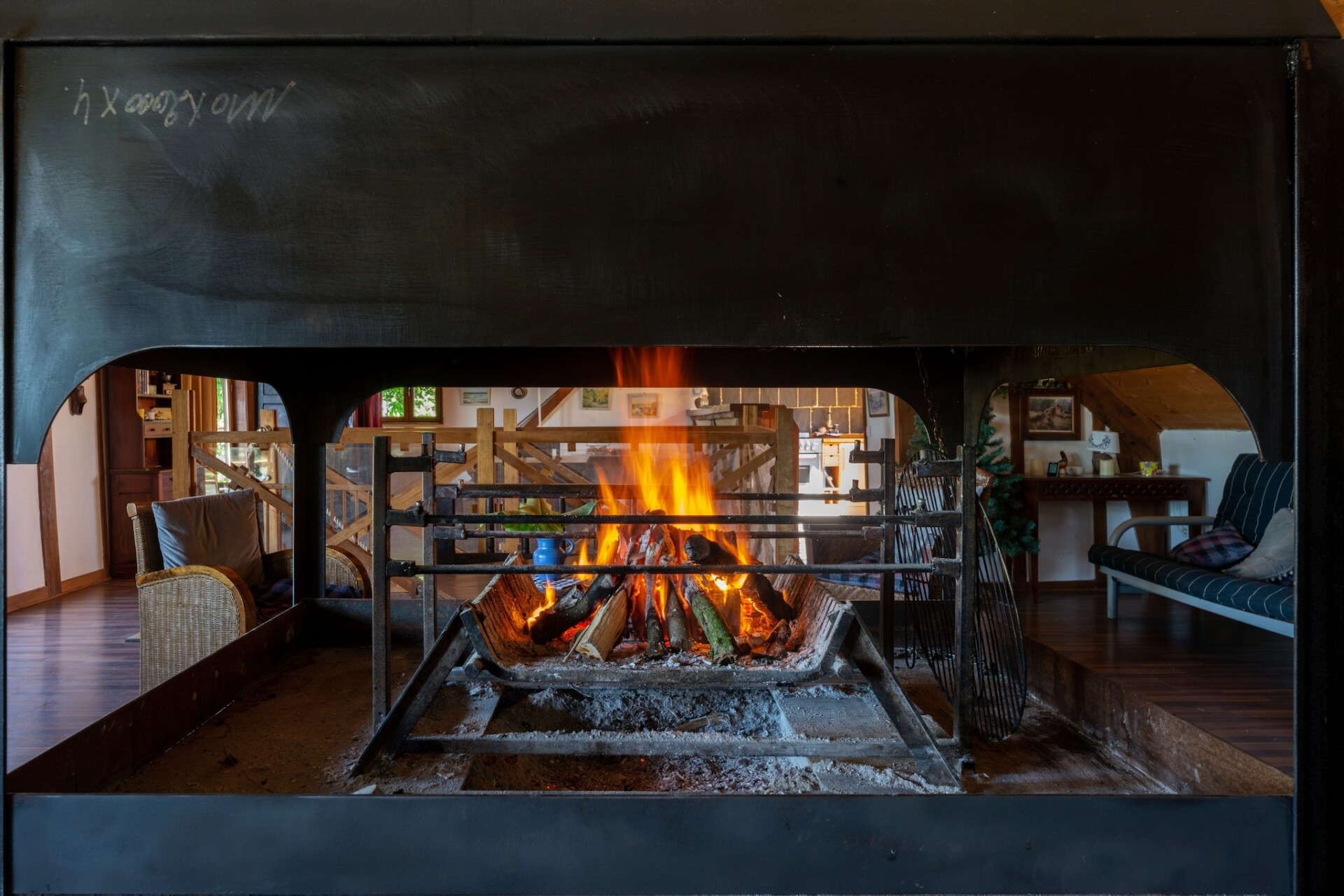 De vakantiewoning ligt op het zuiden en heeft een prachtig uitzicht op de privévijver. De woonkamer staat centraal, met een open keuken en een eetkamer. Elke slaapkamer heeft een eigen badkamer. De wasruimte op de begane grond is voorzien van een wasmachine en een droger.