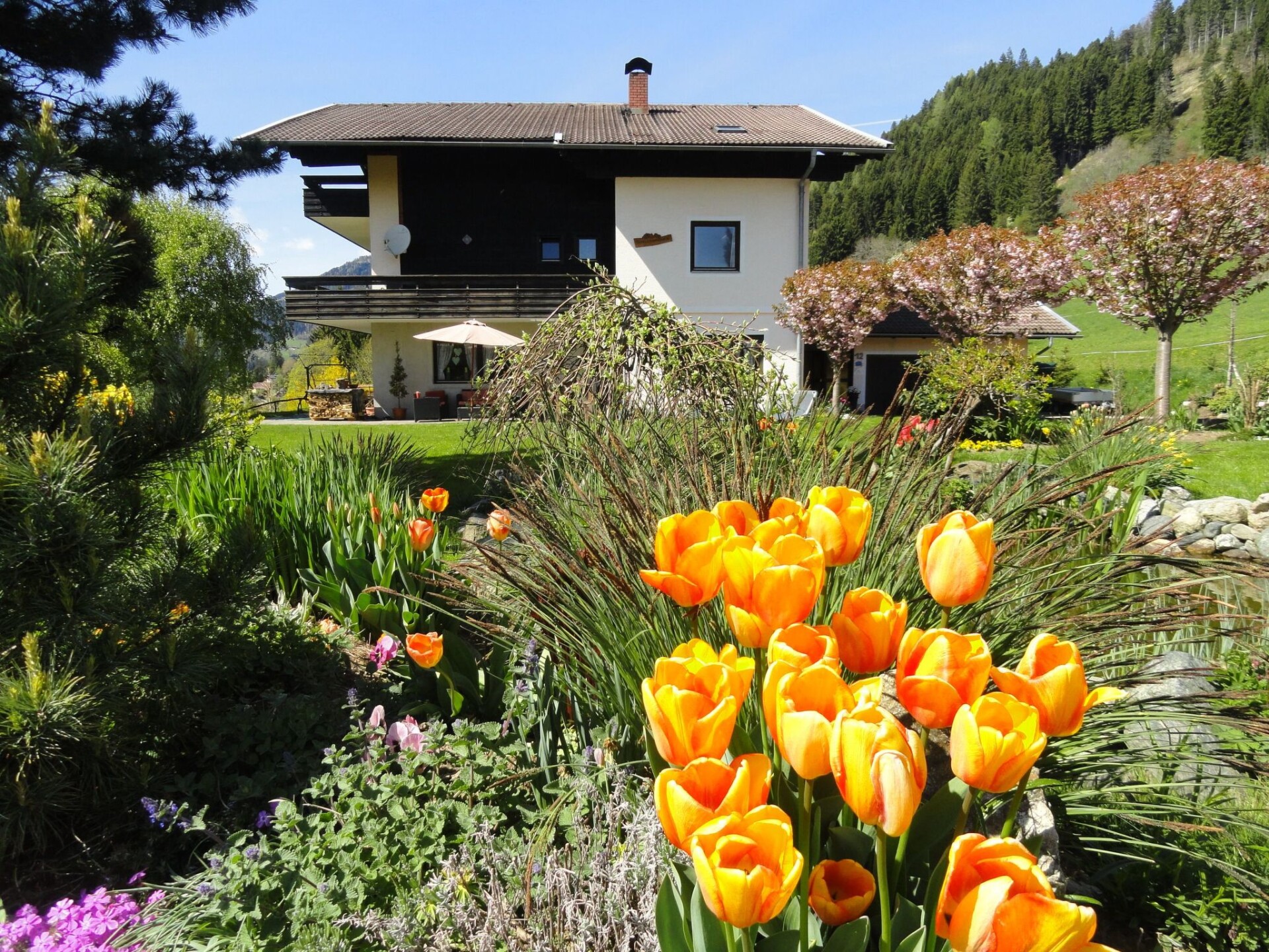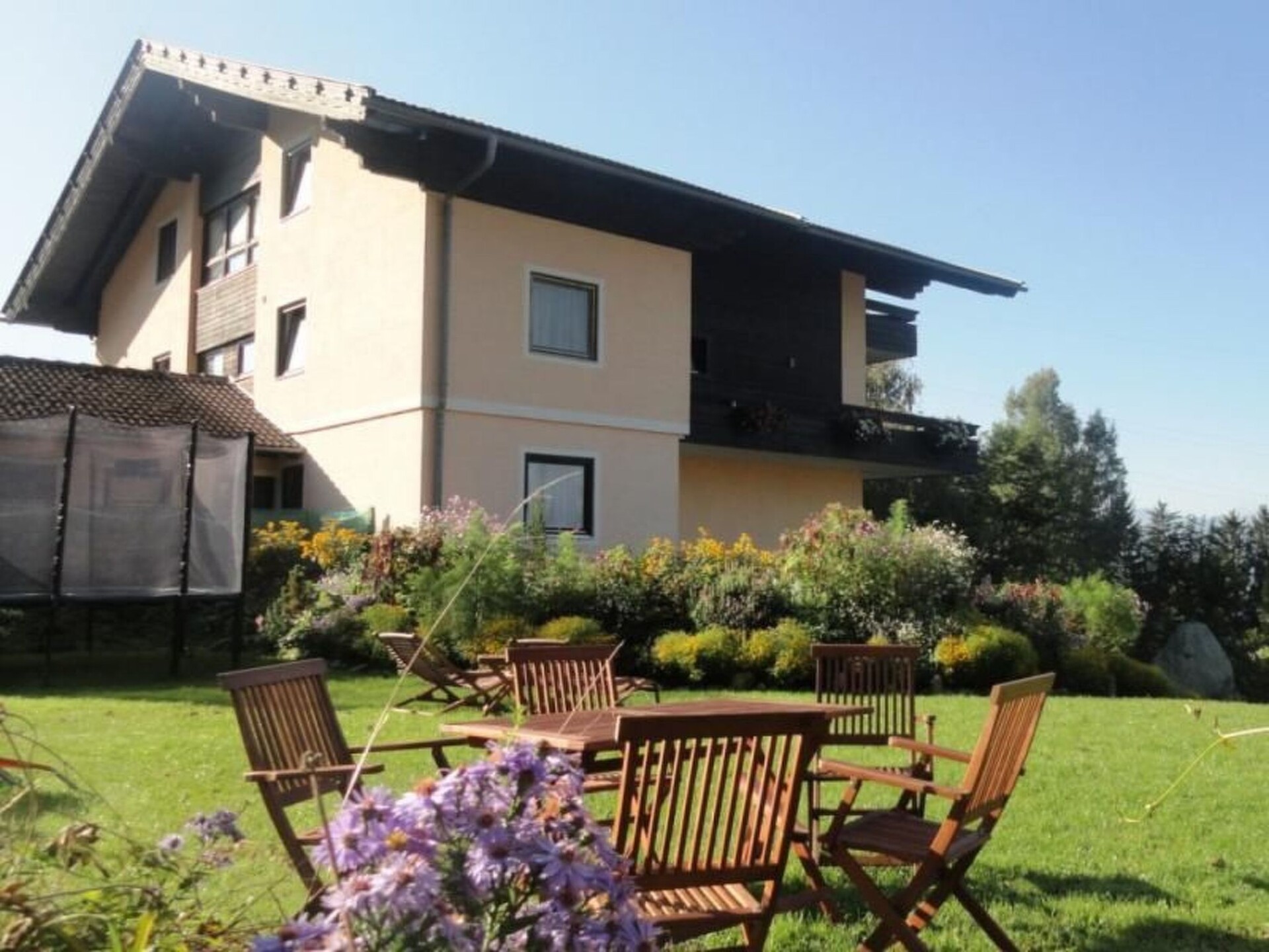 72 m2 op de eerste verdieping: * 2 - 6 (7) personen * 2 Slaapkamers * Opgemaakte bedden * Extra lang 2-persoonsbed, binnenmaat 2.10 mtr. * Woonkamer met slaapbank, geschikt voor 2 volwassenen * Douche * Toilet * Badkamer met bad * Keuken met eethoek, afwasmachine, koelkast met vriesvak, keramische kookplaat, oven, koffiezetapparaat en waterkoker * Zuid-balkon overdekt * Fantastisch uitzicht * Speelkamer voor de kinderen * Fitnessruimte * Sauna (vanaf voorjaar 2011) * Zonnebank * Grote tuin met ruim terras * Speelweide * Trampoline * Klimtoestel * Zwembad (in de zomer) * Kennis van het omliggende gebied Naast de landelijke omgeving waarin ons huis staat en het adembenemende uitzicht op de bergen heeft ons huis u nog veel meer te bieden: Basisinformatie - Huisdieren toegestaan: geen - Accommodatietype: appartement - bevindt zich in: complex - type gebouw: meergezinshuis - verdieping waarop het object zich bevindt: 1e verdieping - totaal aantal verdiepingen in het gebouw boven de begane grond: 2 - perceeloppervlakte: 4000 m² - bouwjaar: 1975 - laatste uitgebreide renovatie: 2000 - vrijstaand object - huiseigenaar woont op het perceel - niet-rokers - meter boven de zeespiegel: 900 - aantal slaapkamers: 2 - aantal badkamers: 1 Top eigenschappen - wifi - verwarming: overal - balkon - terras - tuin: voor gemeenschappelijk gebruik - Buitenzwembad - privéparkeerplaatsen in totaal: 7 - ㄴ daarvan parkeerplaatsen in garage: geen - ㄴ daarvan parkeerplaatsen in carport: geen - ㄴ daarvan privéparkeerplaatsen buiten: 7 Slapen slaapkamer 3 - tweepersoonsbed (1.80 m breed) - tweepersoonsslaapbank - extra bed - kinder-/babybed slaapkamer 6 - stapelbed Badkamer badkamer 3 - douche - wastafel - toilet - föhn Koken/Wonen - koffiezetapparaat: filterkoffiezetapparaat - koelkast/vriezer: diepvriesvak, koelkast - kookplaat: keramische kookplaat - oven - broodrooster - waterkoker - vaatwasser - aantal eettafels: geen - maximaal aantal zitplaatsen: geen - open haard Entertainment - televisie: satelliet-tv - spelcomputer - gezelschapsspellen voor volwassenen - fitnessapparatuur Voor kinderen - kinderstoel - speeltoestellen - gezelschapsspellen voor kinderen Huishouden - wasmachine: voor gemeenschappelijk gebruik in het gebouw - strijkijzer - stofzuiger - kluis Buitenbereik - barbecue: houtskoolbarbecue Omgeving - direct aan de bosrand - dichtstbijzijnde centrum van een plaats: 4,0 km - levensmiddelenzaak: 4,0 km - uitgaansgelegenheid: 500 m - restaurant: 500 m - station: 12,0 km - vliegveld: 85,0 km - snelweg: 8,0 km - afstand openbaar vervoer: 500 m - strand: 4,0 km - grasstrand: 4,0 km - zandstrand: 4,0 km - water (zee, meer enz.): 4,0 km - meer: 4,0 km - watersport: 4,0 km - bootverhuur - visstek: 4,0 km - openbaar zwembad: 4,0 km - golfplaats: 3,0 km - mogelijkheid om paard te rijden: 2,0 km - ski - afstand tot skipiste: 12,0 km - afstand tot skischool: 12,0 km - afstand tot langlaufloipe: 5,0 km - afstand tot skibus: 4,0 km - bergbaan: 12,0 km