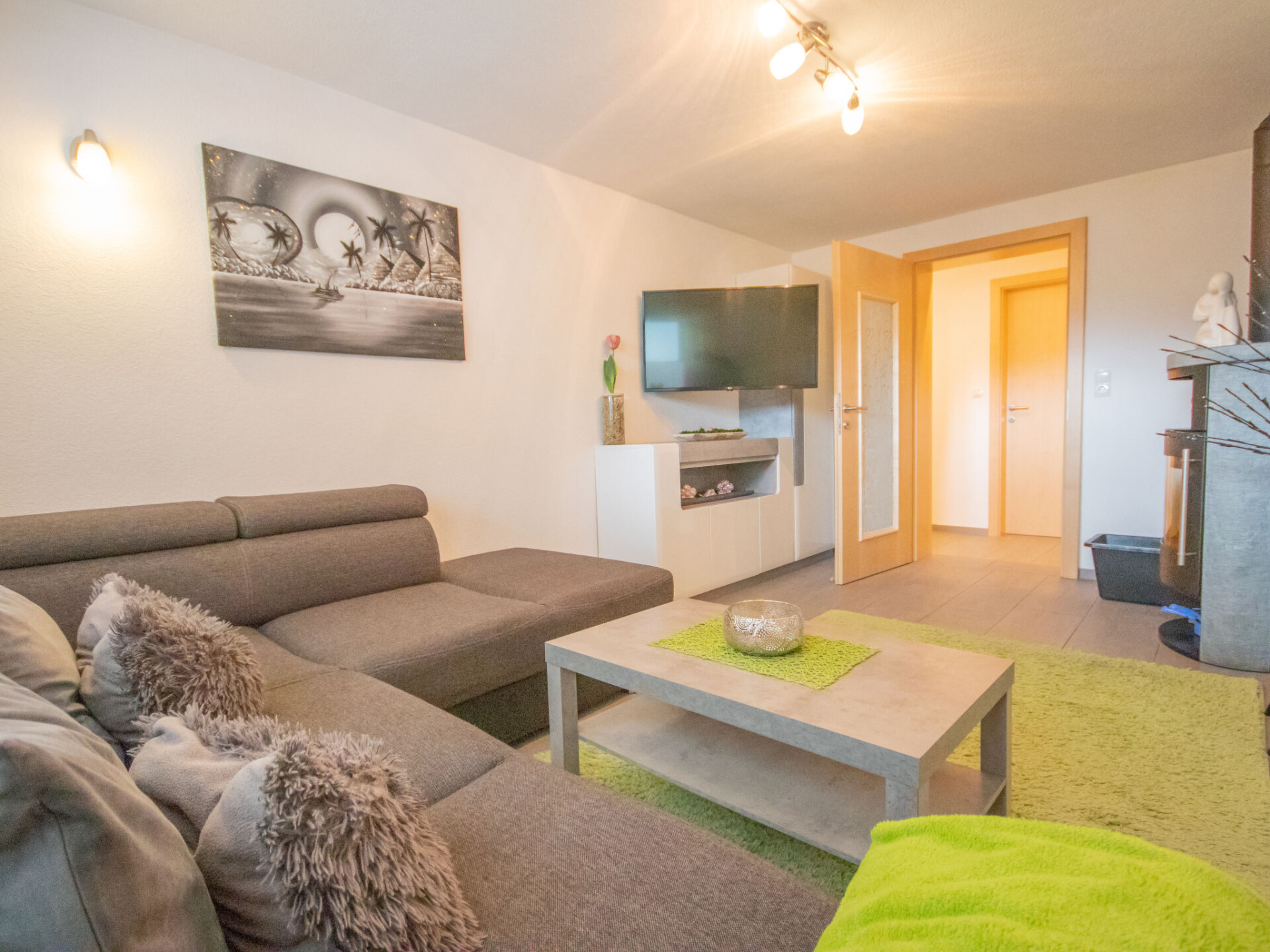 "Anette Living", appartement 4-kamers 85 m2, op de begane grond. Hal. 2 2-pers. kamers, elke kamer heeft TV. 1 kamer met 1 bed. Groot woonkamer met TV. Groot keuken (oven, afwasmachine, magnetron, diepvriezer, elektrische koffiemachine) met eethoek. Douche/WC. Terras. Terrasmeubelen, barbecue. Ter beschikking: haardroger. Internet (Internet (WiFi), gratis). Niet rokers woning. Rookmelders.