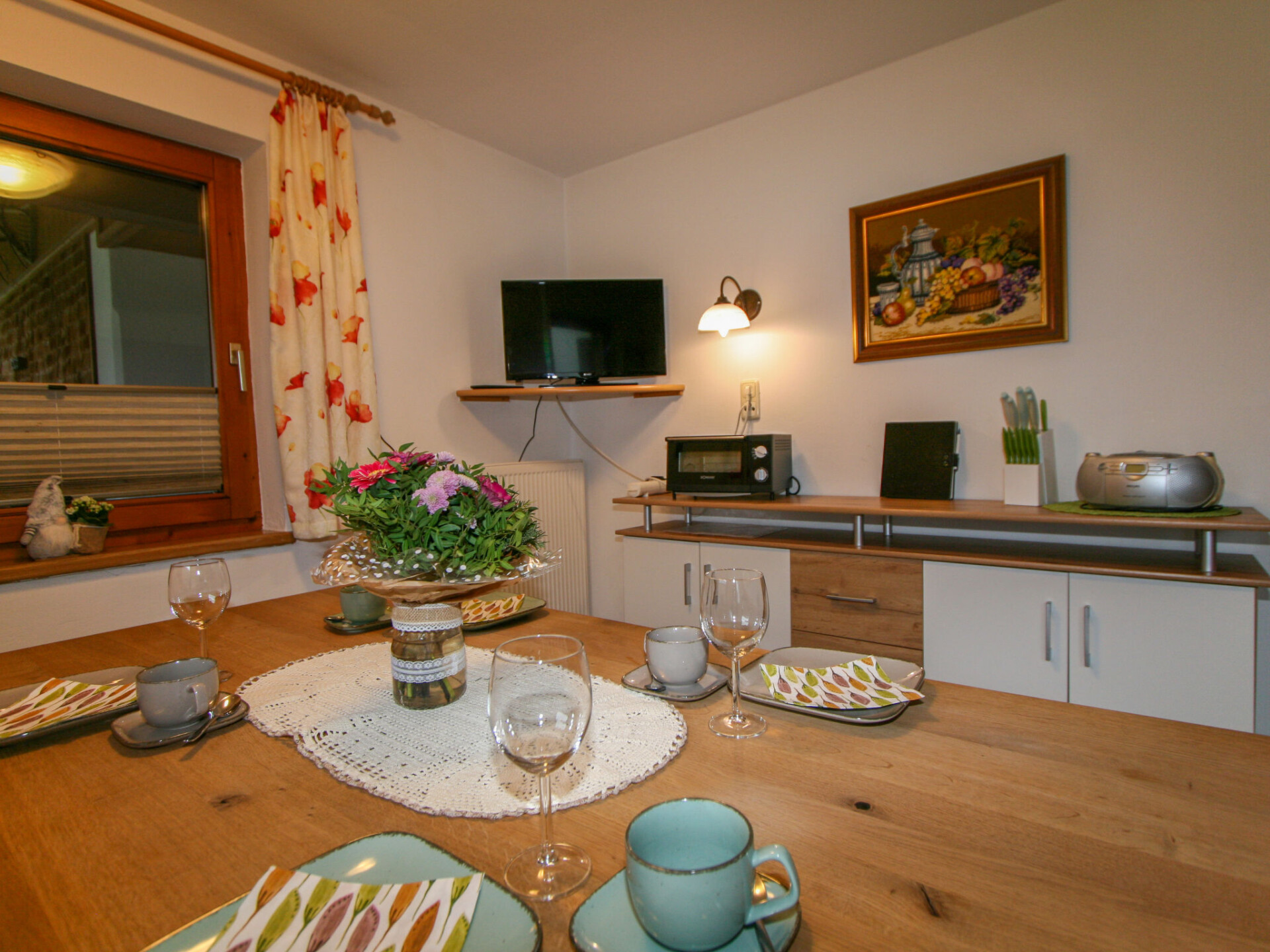 "Anger", appartement 4-kamers 80 m2 op de 1e verdieping. Doelmatig en rustiek ingericht: 1 2-pers. kamer met wastafel en Sat-TV. Uitgang naar het balkon. 1 2-pers. kamer met wastafel. Uitgang naar het balkon. 1 kamer met 1 x 2 stapelbedden. Woonkeuken (afwasmachine, 4 keramische glas kookplaten, broodrooster, waterkoker, magnetron, elektrische koffiemachine) met eethoek, Sat-TV en radio. Uitgang naar het balkon. Bad/douche/WC. Olie-verwarming. Balkon 24 m2. Balkonmeubilair, ligstoelen (2). Panoramazicht. Ter beschikking: kinderstoel, kinderbed. Internet (WiFi, gratis). Maximaal 1 huisdier/hond toegestaan. Privé ingang.