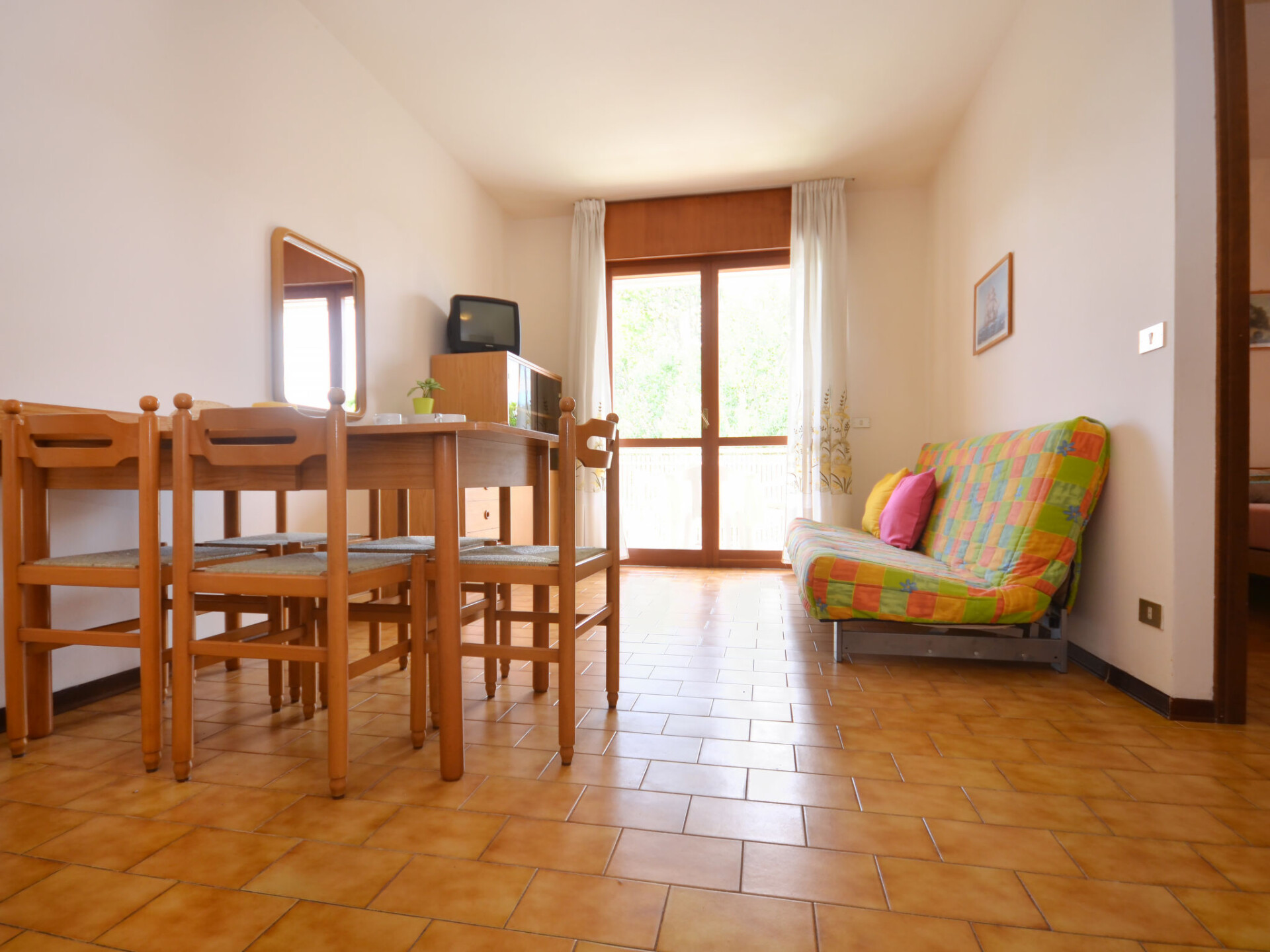 Appartement 3-kamers 45 m2, op de bovenverdieping. Eenvoudig ingericht: woon-/slaapkamer met 1 divanbed, eettafel, kookhoek en TV. Uitgang naar het balkon. 1 2-pers. kamer. 1 kamer met 1 x 2 stapelbedden. Open keuken (Gasfornuis, 4 kookpitten (vlammen), magnetron, elektrische koffiemachine). Douche/WC. Elektrische verwarming, air-conditioning. Verwarming niet in alle ruimtes. Balkon. Balkonmeubilair. Ter beschikking: kluis, kinderstoel, kinderbed. Parkeerplaats (1 Auto) bij het huis. Maximaal 1 huisdier/hond toegestaan. IT027034B4NQOKEGSP