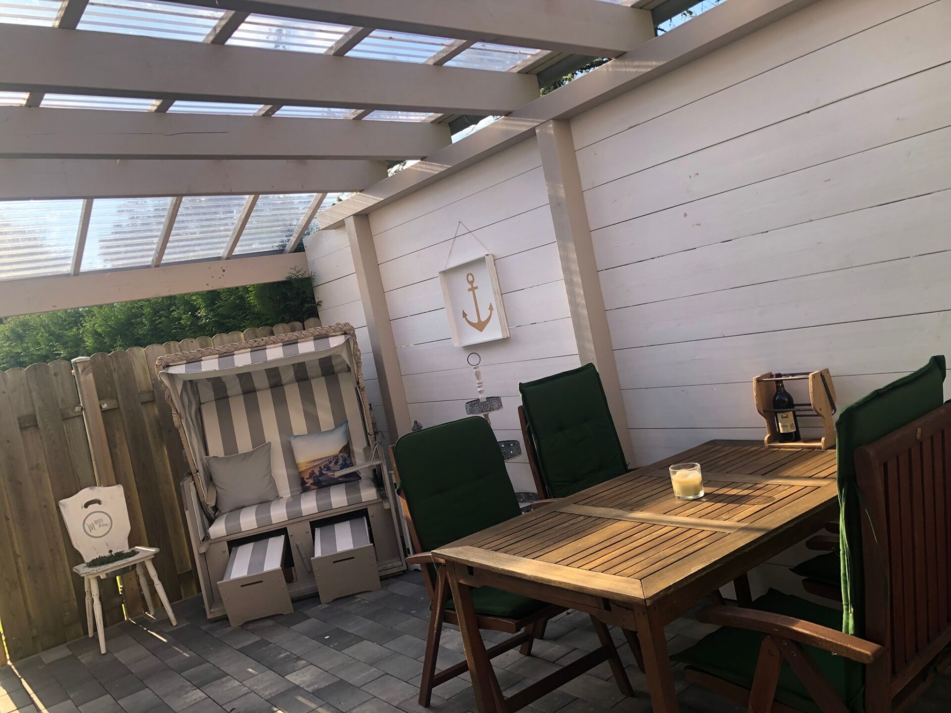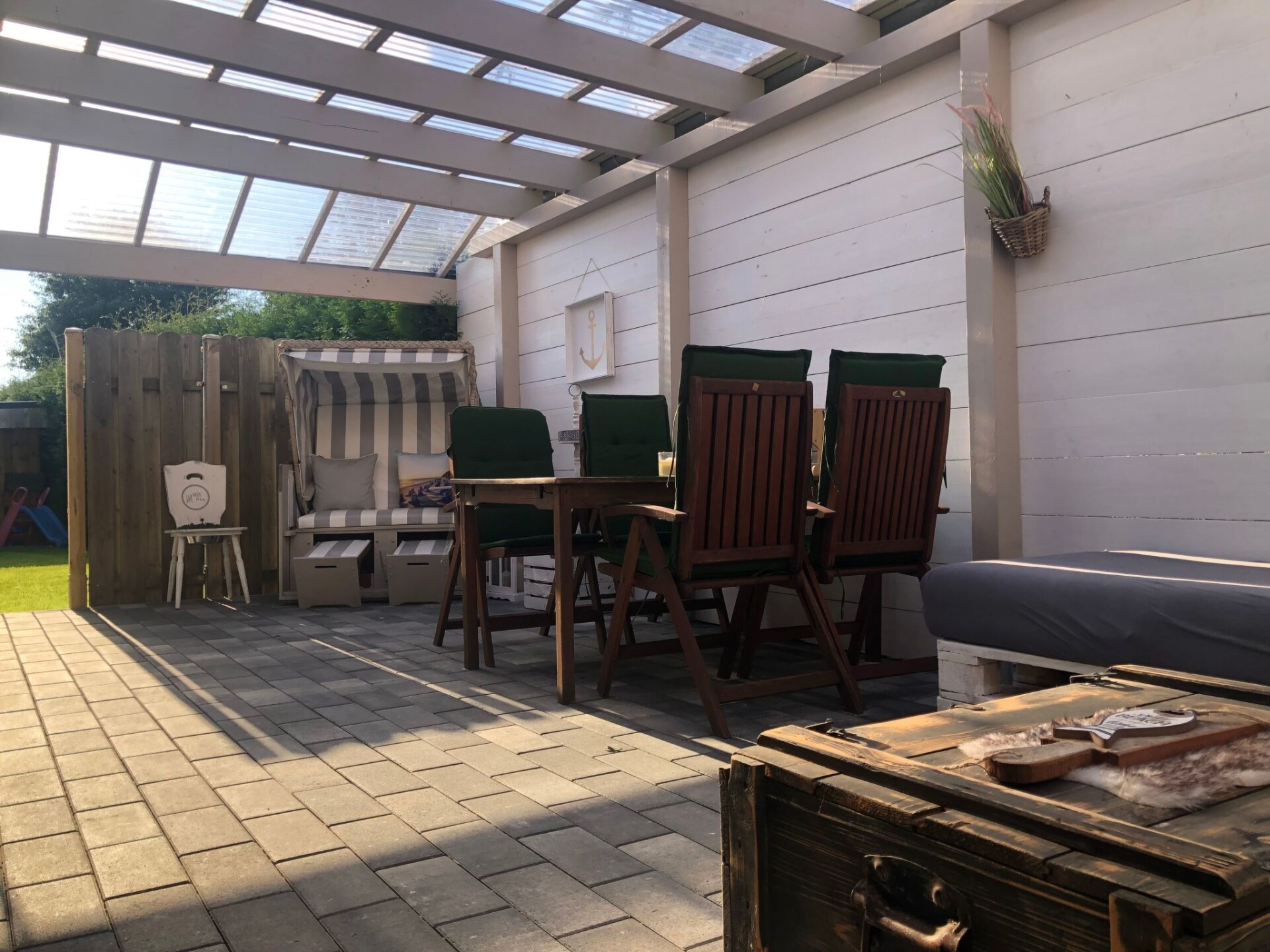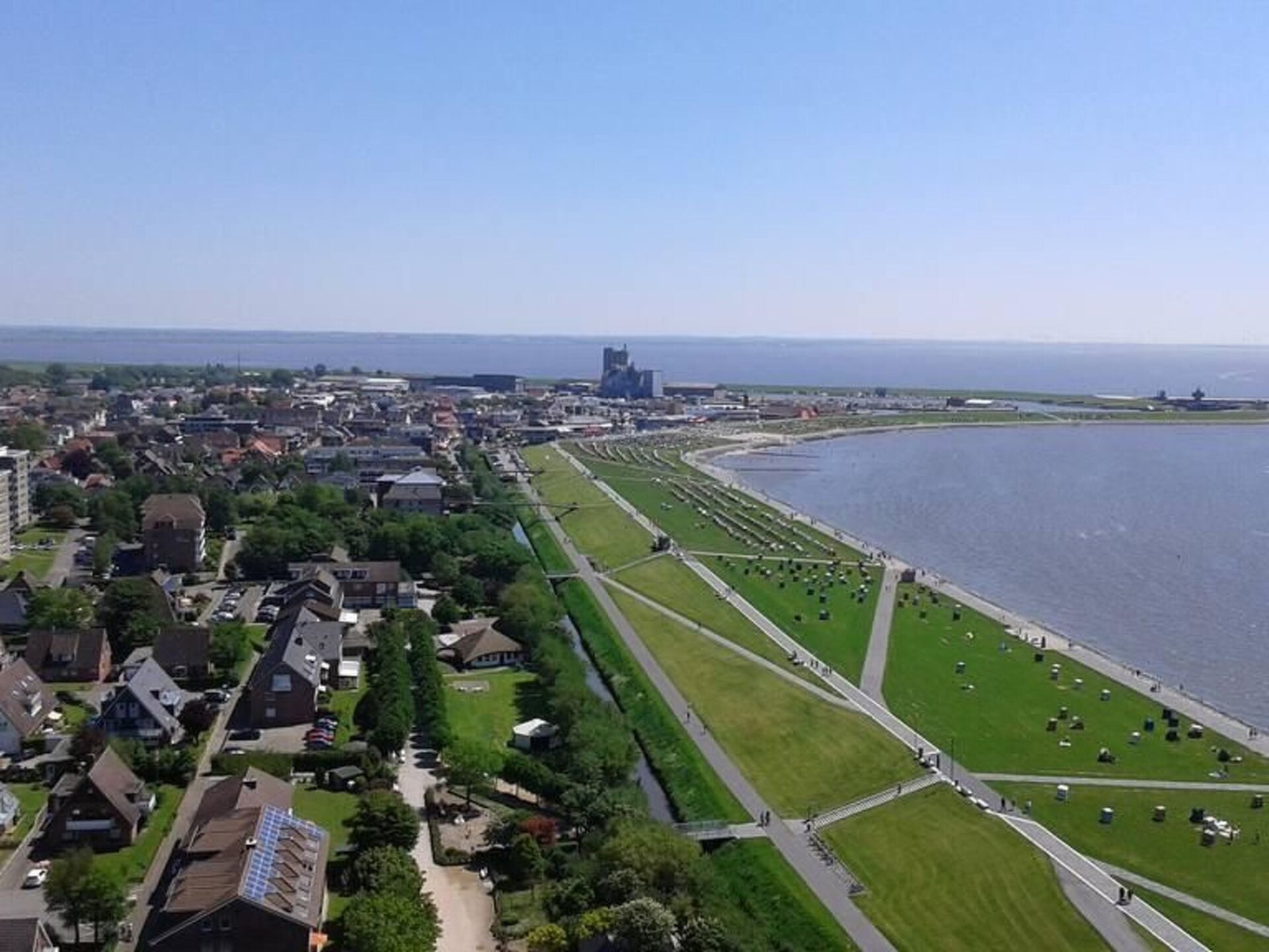 Maximaal 2 huisdieren/honden toegestaan. We are located in the small village of Norddeich (postcode 25764) in beautiful Schleswig-Holstein. Please do not confuse it with Norddeich near Norden in Lower Saxony. Very close to us are Wesselburen, Tönning, Büsum, St. Peter Ording and Heide.New on offer: Modern maritime holiday flat on the North Sea. With garden, terrace, barbecue and play area. Family and pet friendly :-)There are two beautiful terraces with a small lawn and a small house at your disposal. A charcoal barbecue as well as wooden furniture with cushions and children's toys/sandbox are available.Our flat ⚓️ ANKERPLATZ ⚓️ is located on the 1st floor and can be reached via an external staircase. It is 85 m2 in size, suitable for up to 5 people and has 3 bedrooms (master bedroom double bed 180x200cm, children's room 1x 90x200cm + 1x 70x160cm with fall-out protection, further bedroom 140x200cm bed and children's cot). In addition, the spacious living room with large sofa, TV and dining table invites you to spend relaxing evenings. A high-quality bathroom with shower, WC and washbasin and the modern kitchen with dishwasher, cooker, fridge, freezer compartment and additional seating complete the offer. Fully equipped kitchenette, bed linen and towels, TV, non-smoking rooms, a terrace with hut and lawn and a covered terrace, parking spaces, blackout blinds in the bedrooms, fly screens, washing machine (only for a fee), clothes horse, free WiFi, hairdryer, fans, barbecue equipment, baby travel cot, ventilation system, smoke detector, underfloor heating, board games, books, colouring materials, sandpit etc.From Norddeich you can quickly reach the great beaches of Büsum (13km) and St. Peter-Ording (18km) by car. The next small free beach of Wesselburenerkoog with a playground is 4 km away. Shopping facilities, doctors. Pharmacies, an outdoor pool and an indoor playground, as well as restaurants can be found in neighbouring Wesselburen (1km). The region offers many opportunities for leisure activities and relaxation. You can go horse riding, swimming, walking and much more in the neighbourhood. Flyers are available in our flats for your inspiration. Walking and cycling trails are right on the doorstep. The wonderful Eidersperrwerk and the Katinger Watt nature reserve (a wonderful riding area) are only a few minutes away by car. Bicycle hire is available in the immediate neighbourhood.Holidays with a DOG are possible. The flat can be reached via an outside staircase. Parking spaces are available in front of the house. Wifi is available free of charge. A baby cot, changing table and high chair are available. Please contact us.