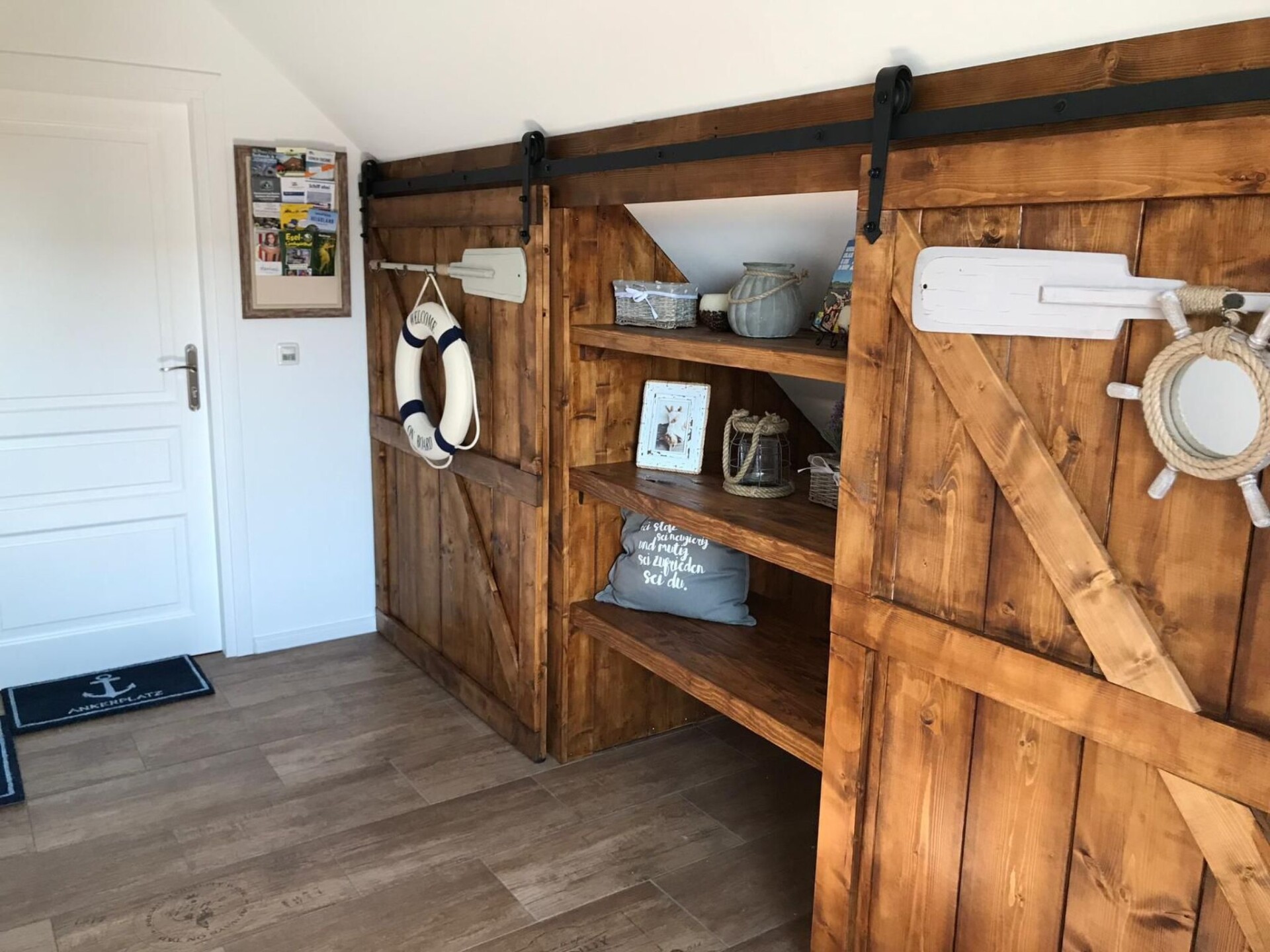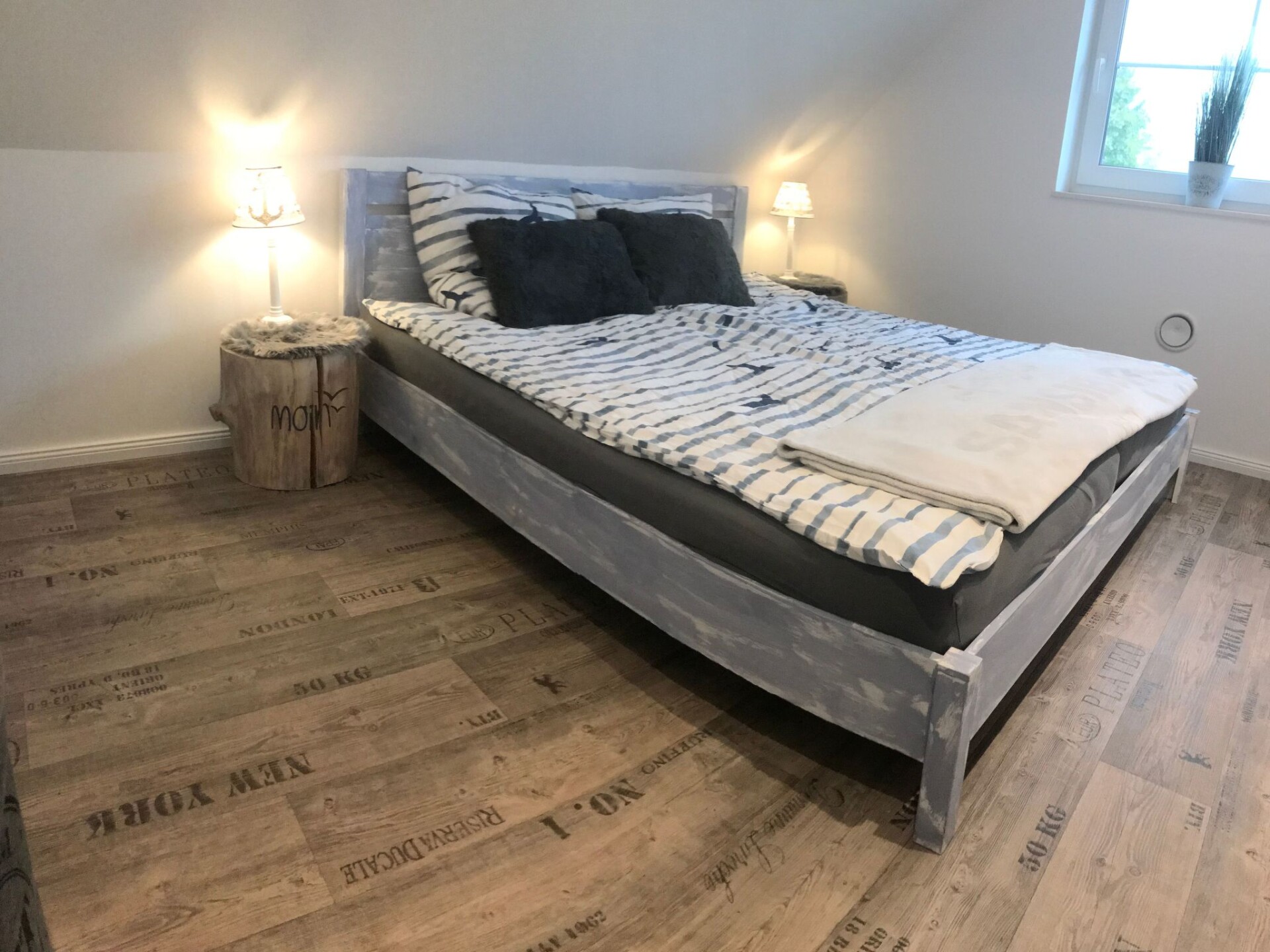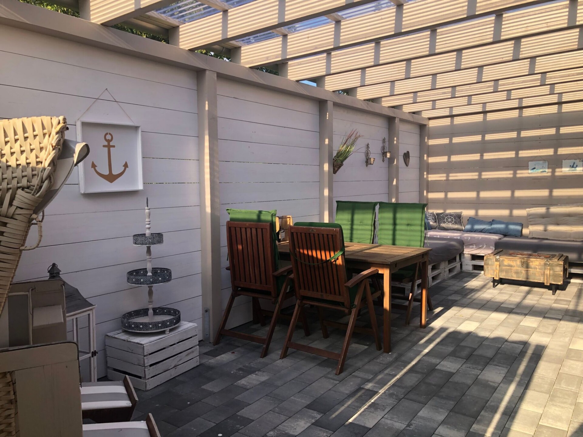 Maximaal 2 huisdieren/honden toegestaan. We are located in the small village of Norddeich (postcode 25764) in beautiful Schleswig-Holstein. Please do not confuse it with Norddeich near Norden in Lower Saxony. Very close to us are Wesselburen, Tönning, Büsum, St. Peter Ording and Heide.New on offer: Modern maritime holiday flat on the North Sea. With garden, terrace, barbecue and play area. Family and pet friendly :-)There are two beautiful terraces with a small lawn and a small house at your disposal. A charcoal barbecue as well as wooden furniture with cushions and children's toys/sandbox are available.Our flat ⚓️ ANKERPLATZ ⚓️ is located on the 1st floor and can be reached via an external staircase. It is 85 m2 in size, suitable for up to 5 people and has 3 bedrooms (master bedroom double bed 180x200cm, children's room 1x 90x200cm + 1x 70x160cm with fall-out protection, further bedroom 140x200cm bed and children's cot). In addition, the spacious living room with large sofa, TV and dining table invites you to spend relaxing evenings. A high-quality bathroom with shower, WC and washbasin and the modern kitchen with dishwasher, cooker, fridge, freezer compartment and additional seating complete the offer. Fully equipped kitchenette, bed linen and towels, TV, non-smoking rooms, a terrace with hut and lawn and a covered terrace, parking spaces, blackout blinds in the bedrooms, fly screens, washing machine (only for a fee), clothes horse, free WiFi, hairdryer, fans, barbecue equipment, baby travel cot, ventilation system, smoke detector, underfloor heating, board games, books, colouring materials, sandpit etc.From Norddeich you can quickly reach the great beaches of Büsum (13km) and St. Peter-Ording (18km) by car. The next small free beach of Wesselburenerkoog with a playground is 4 km away. Shopping facilities, doctors. Pharmacies, an outdoor pool and an indoor playground, as well as restaurants can be found in neighbouring Wesselburen (1km). The region offers many opportunities for leisure activities and relaxation. You can go horse riding, swimming, walking and much more in the neighbourhood. Flyers are available in our flats for your inspiration. Walking and cycling trails are right on the doorstep. The wonderful Eidersperrwerk and the Katinger Watt nature reserve (a wonderful riding area) are only a few minutes away by car. Bicycle hire is available in the immediate neighbourhood.Holidays with a DOG are possible. The flat can be reached via an outside staircase. Parking spaces are available in front of the house. Wifi is available free of charge. A baby cot, changing table and high chair are available. Please contact us.