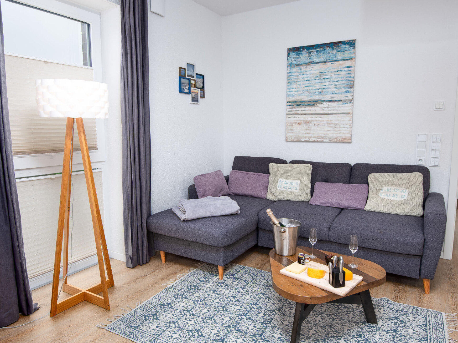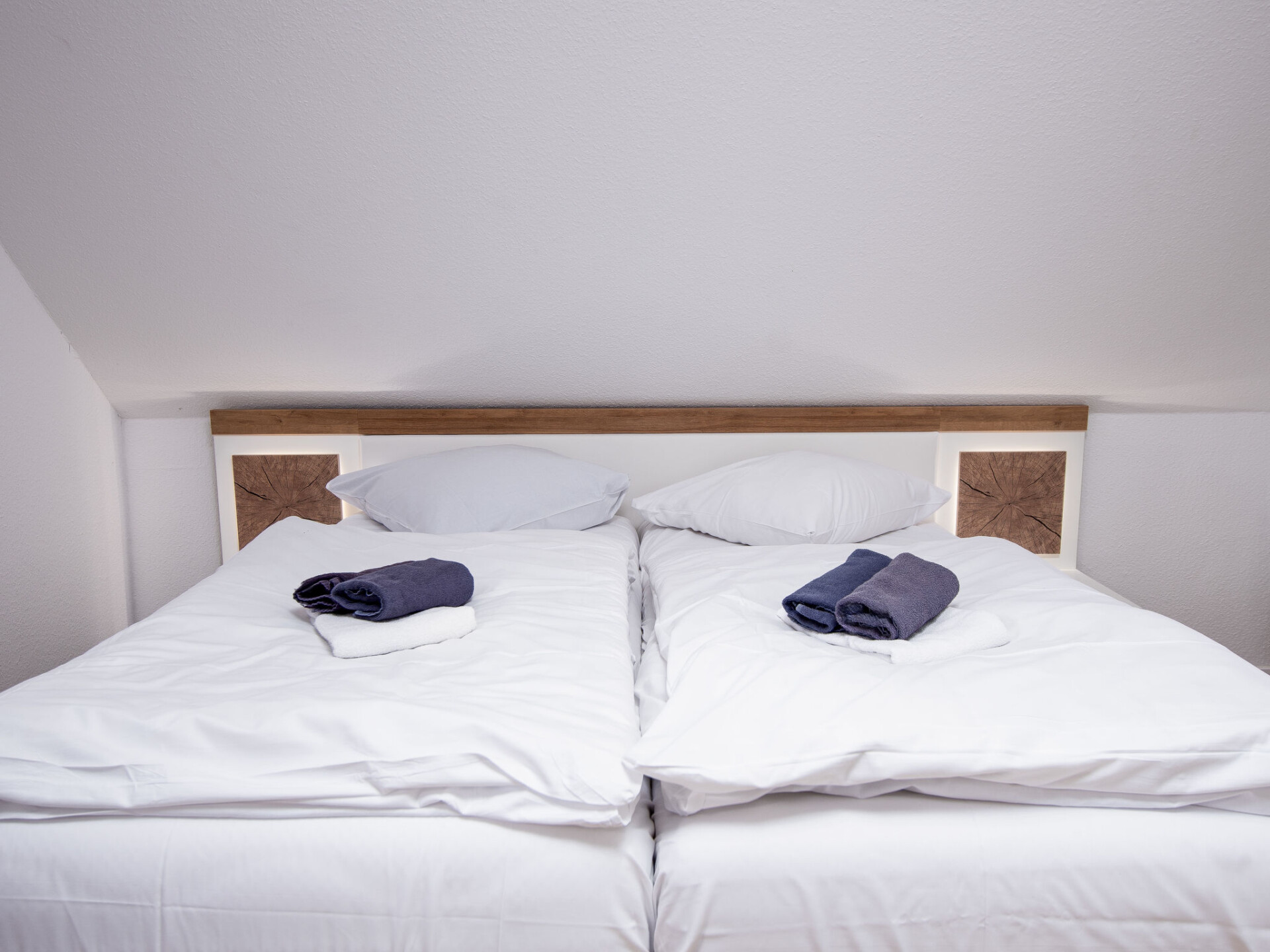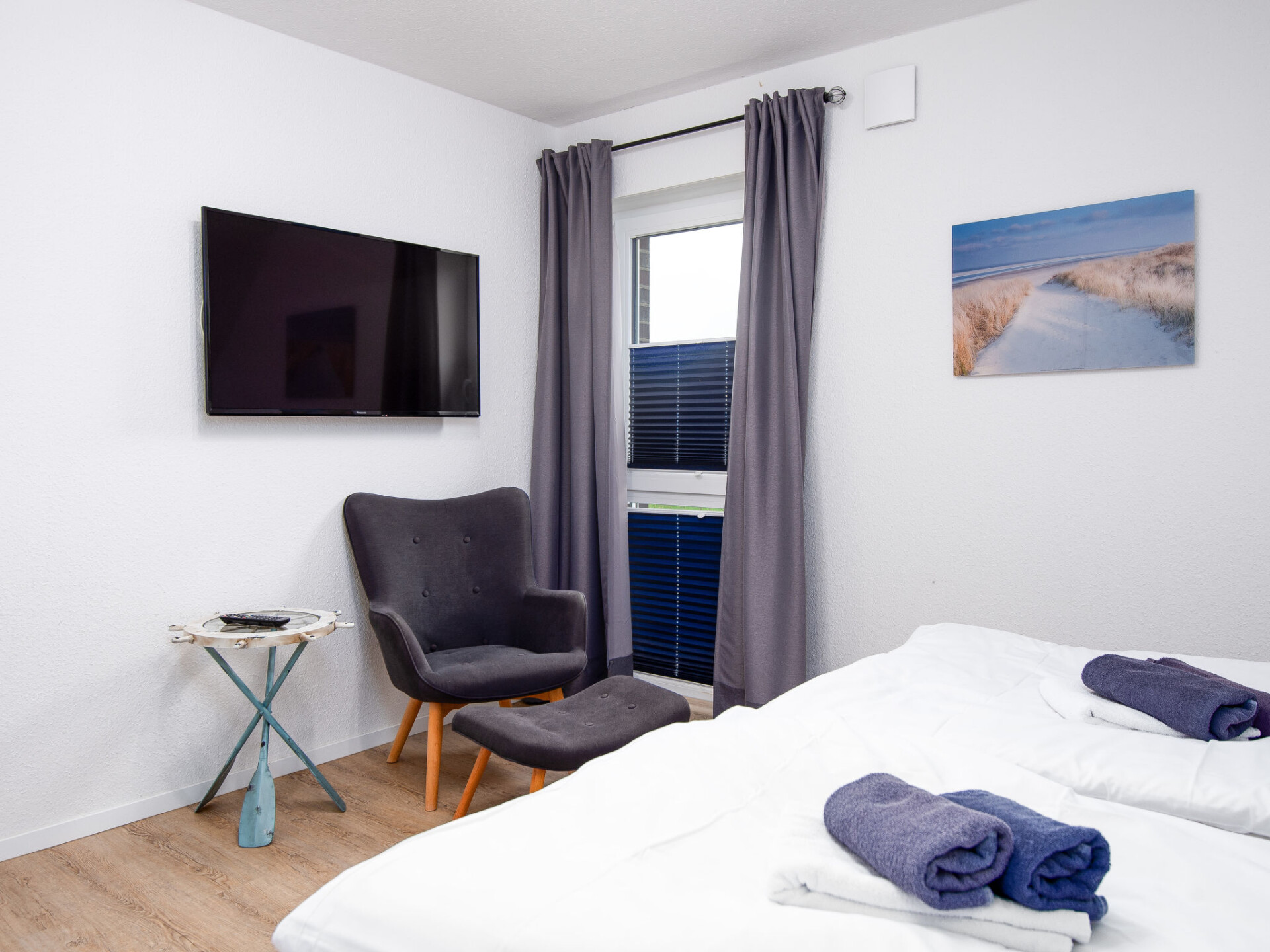 "Ankerplatz", appartement 2-kamers 55 m2 op de 2e verdieping. Gedeeltelijk afgeschuinde daken, modern en smaakvol ingericht: woon-/eetkamer 22 m2 met 1 2-pers divanbed (180 cm, lengte 200 cm), Kabel-TV (Flatscreen TV), radio en stereo-installatie. Uitgang naar het balkon. 1 kamer 12 m2 met 1 2-pers bed (2 x 90 cm, lengte 200 cm), Kabel-TV (Flatscreen TV). Kookhoek (oven, afwasmachine, 4 keramische glas kookplaten, broodrooster, waterkoker, magnetron, elektrische koffiemachine). Douche/WC. Balkon 8 m2. Balkonmeubilair, ligstoelen (2), bergruimte. Ter beschikking: wasmachine, strijkijzer, kinderstoel (extra), haardroger. Internet (Internet (WiFi), gratis). Niet rokers woning. Rookmelders.