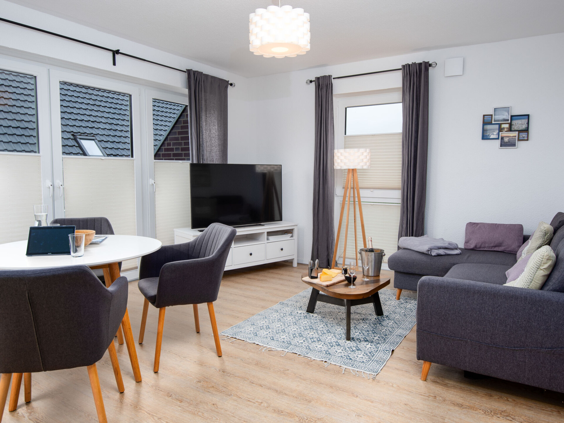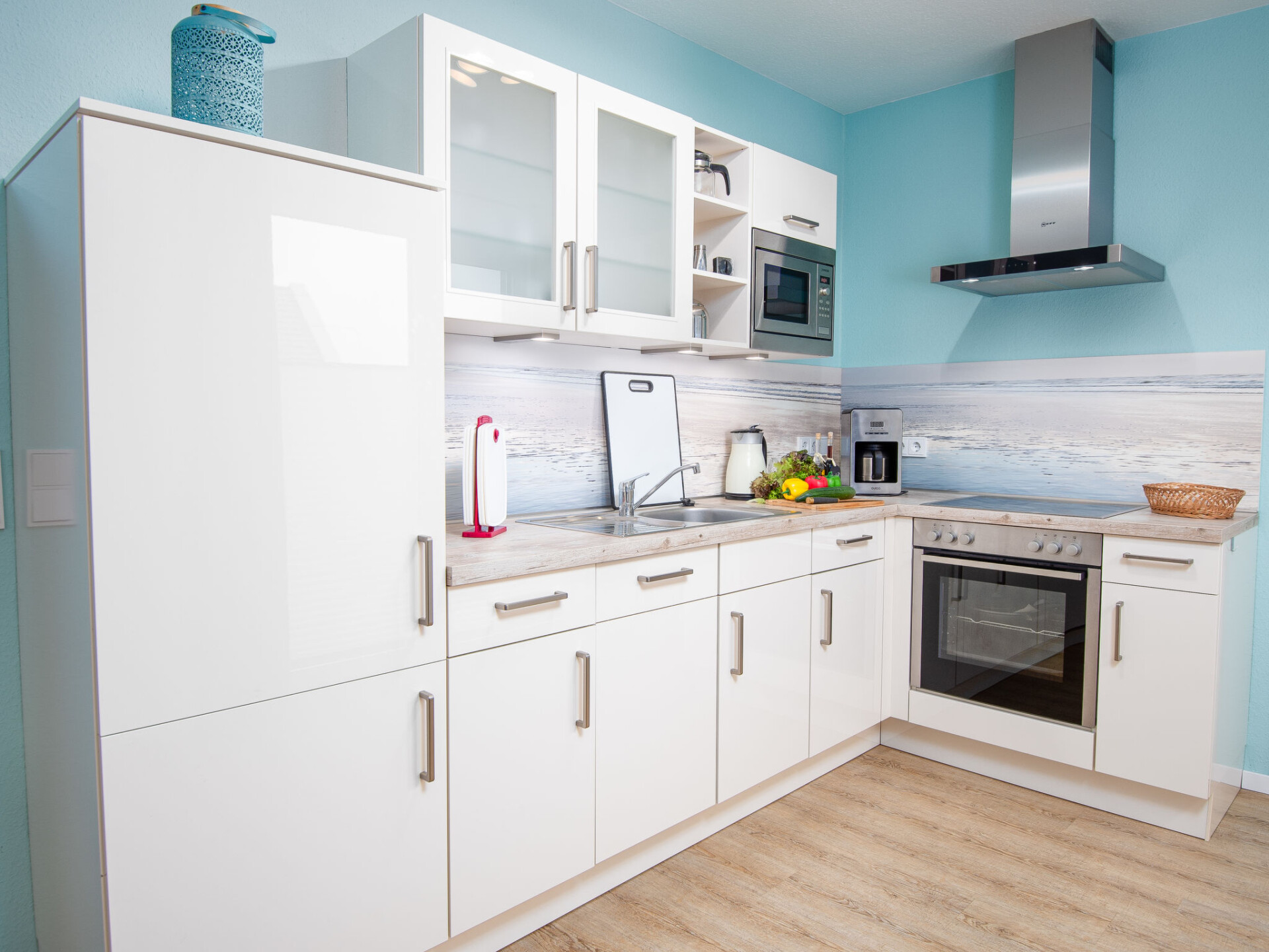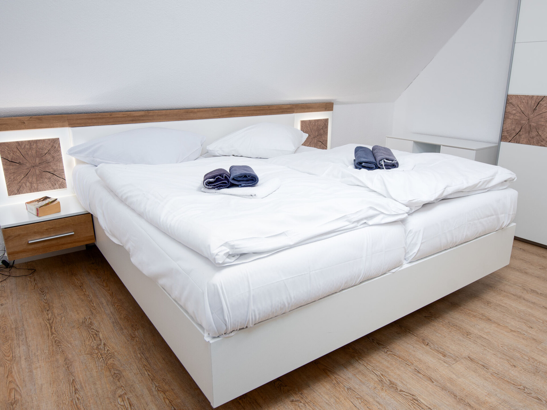 "Ankerplatz", appartement 2-kamers 55 m2 op de 2e verdieping. Gedeeltelijk afgeschuinde daken, modern en smaakvol ingericht: woon-/eetkamer 22 m2 met 1 2-pers divanbed (180 cm, lengte 200 cm), Kabel-TV (Flatscreen TV), radio en stereo-installatie. Uitgang naar het balkon. 1 kamer 12 m2 met 1 2-pers bed (2 x 90 cm, lengte 200 cm), Kabel-TV (Flatscreen TV). Kookhoek (oven, afwasmachine, 4 keramische glas kookplaten, broodrooster, waterkoker, magnetron, elektrische koffiemachine). Douche/WC. Balkon 8 m2. Balkonmeubilair, ligstoelen (2), bergruimte. Ter beschikking: wasmachine, strijkijzer, kinderstoel (extra), haardroger. Internet (Internet (WiFi), gratis). Niet rokers woning. Rookmelders.