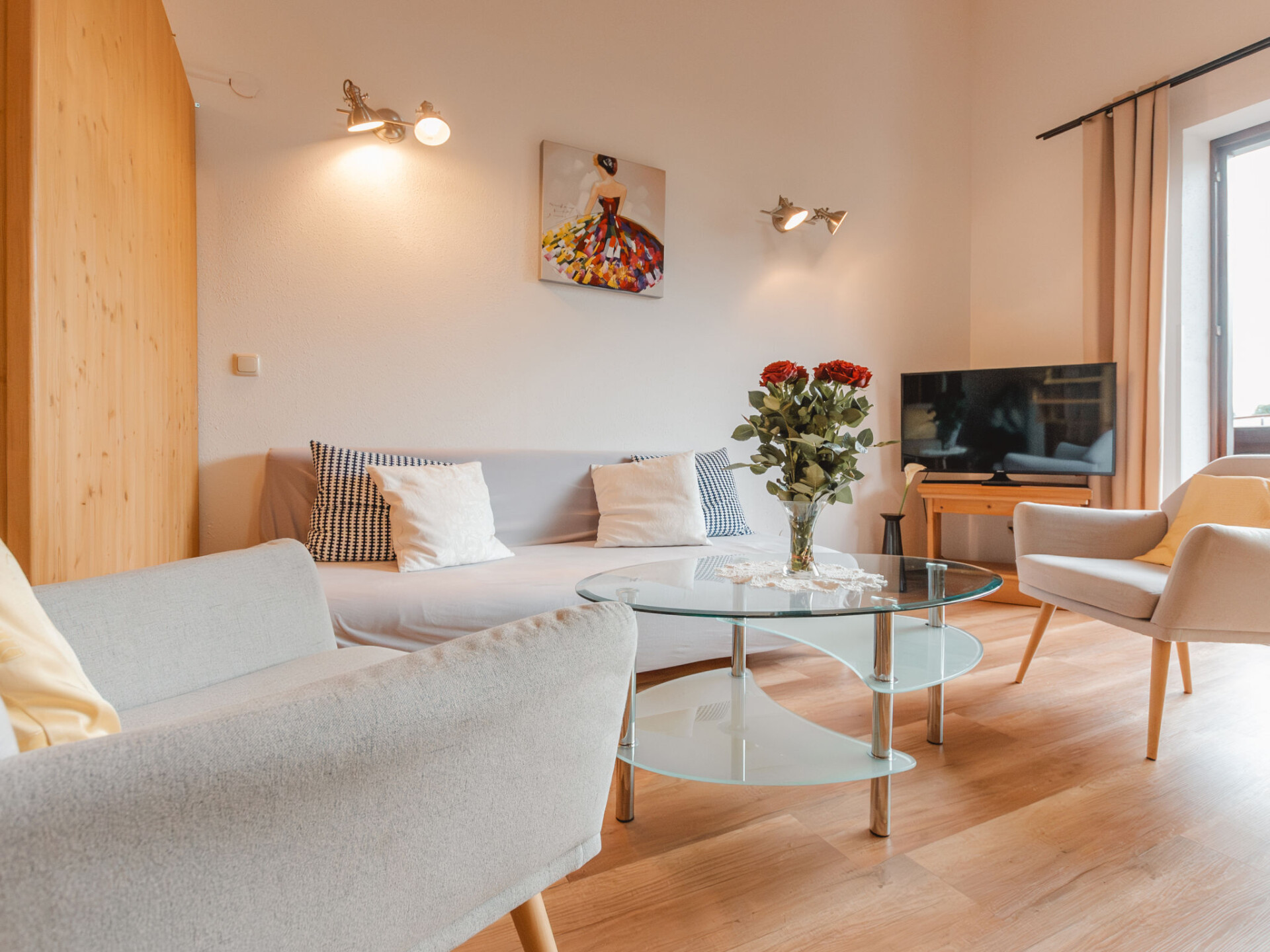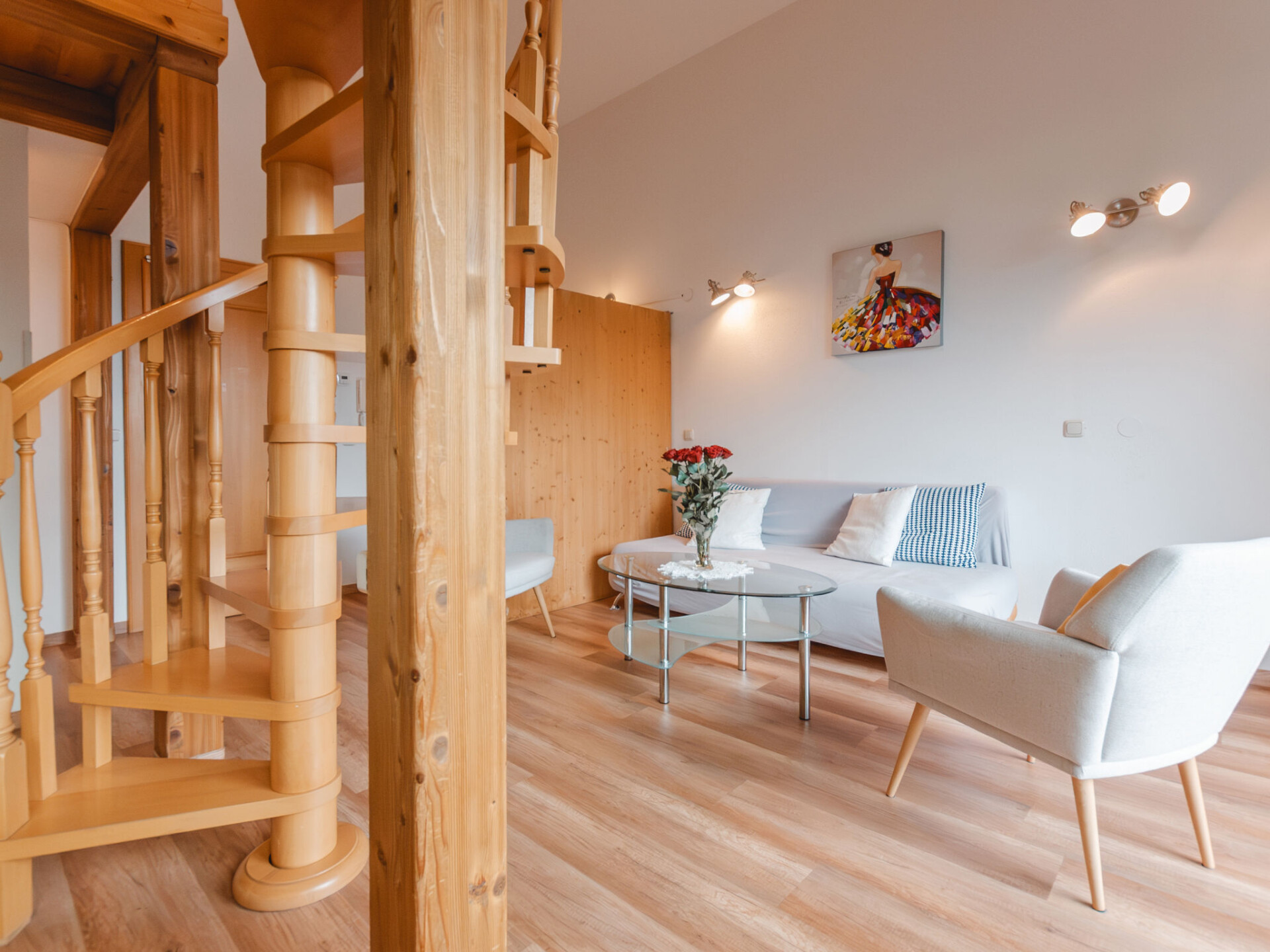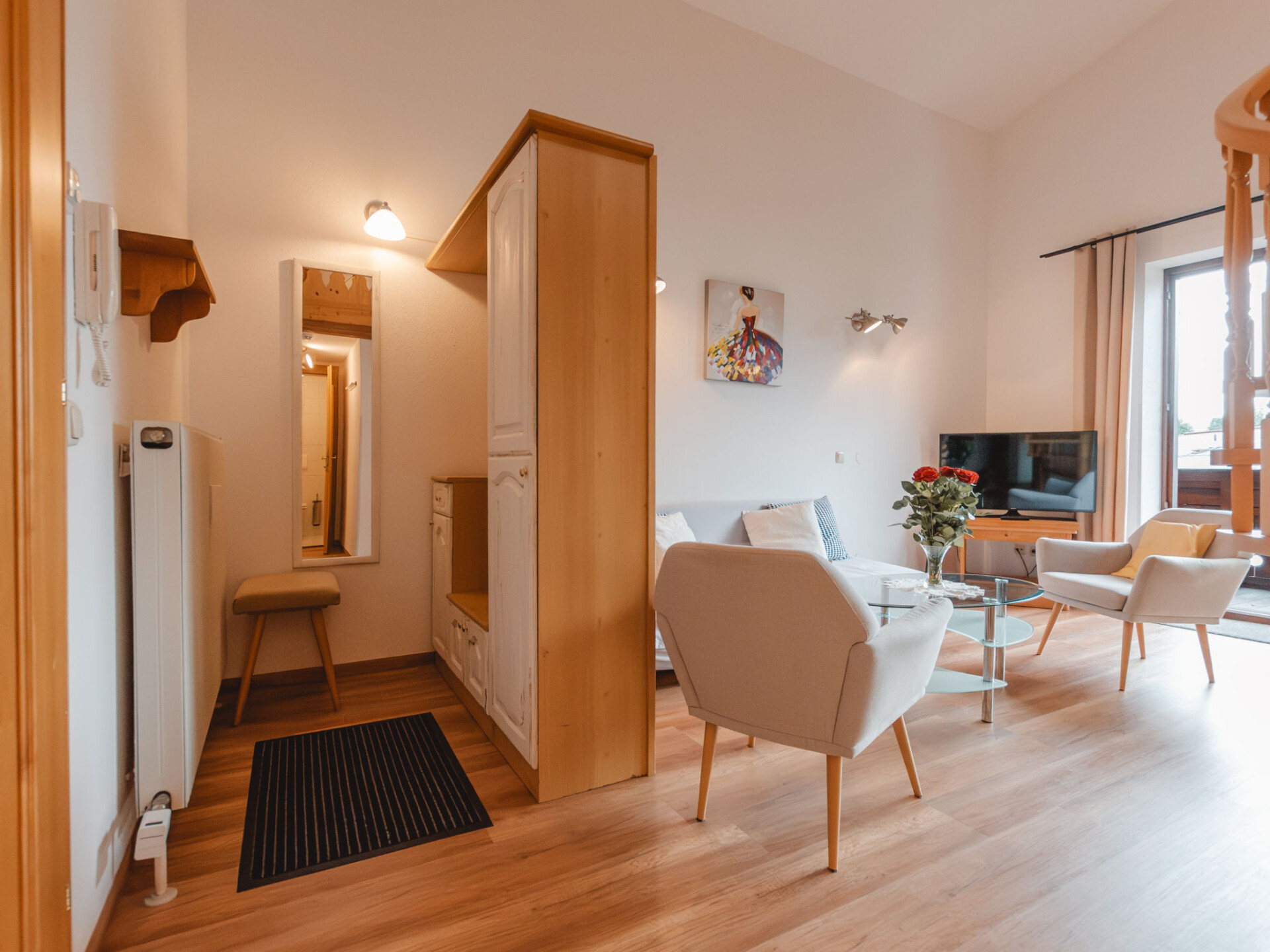 "Anna-Katharina", appartement 1-kamer 53 m2 op de 2e verdieping. Het objekt is geschikt voor 2 volwassenen + 2 kinderen. Ruim en licht, zeer modern en gezellig ingericht: hal. Open galerij 17 m2 met 1 2-pers bed. Woon-/eetkamer 36 m2 met panoramavenster met 1 2-pers divanbed, eettafel en Kabel-TV (Flatscreen TV). Uitgang naar het balkon. Open keuken (oven, afwasmachine, 4 keramische glas kookplaten, broodrooster, waterkoker, magnetron, elektrische koffiemachine). Douche, aparte WC. Houten vloeren. Balkon 10 m2. Balkonmeubilair. Zeer mooi panoramazicht op de bergen. Ter beschikking: haardroger. Internet (WiFi, gratis). Parkeerplaats nr. 7. Geschikt voor families. Niet rokers woning. Rookmelders, geen lift. De koffiemachine is een Cafissimo. In plaats van een afgesloten slaapkamer bevinden sommige slaapgedeeltes zich in een open ruimte (galerij, nis, etc.). 50402-000674-2020