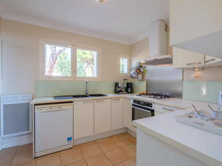 Eengezinswoning "Anthala", omgeven door bomen. In de wijk Sémaphore, 700 m van het centrum van Sainte Maxime, verhoogde ligging in een woonwijk, 950 m van zee, 950 m van het strand, op het zuiden. Voor alleengebruik: wild terrein 1.600 m2, wilde tuin, parkeerplaats (voor 3 auto's) op het terrein. Winkel, levensmiddelenwinkel 800 m, supermarkt 4 km, bakkerij, voetgangersgebied 900 m, centrum te voet bereikbaar in 10 minuten, bushalte 1 km, treinstation "TGV Saint Raphael" 20 km, veerboot "Les Bateaux Verts Saint-Tropez" 1 km, zandstrand "Centre ville" 950 m, thermaalbad "Thalasso Spa Les Issambres" 7 km. Jachthaven 1 km, golfterrein (18 holes) 5 km, tennis 2 km. Attracties in de buurt: Aqualand Waterpark 4 km, Navette / shuttle boat St-Tropez 15min 1 km, Port-Grimaud 10 km, Saint-Tropez, Ramatuelle 16 km, Gorges du Verdon 75 km. Wandelgebied Massif des Maures 5 km, Massif de l'Esterel 25 km. Geschikt voor families. De sleuteloverdracht vindt plaats bij het agentschap INTERHOME in Sainte Maxime, 1 km.