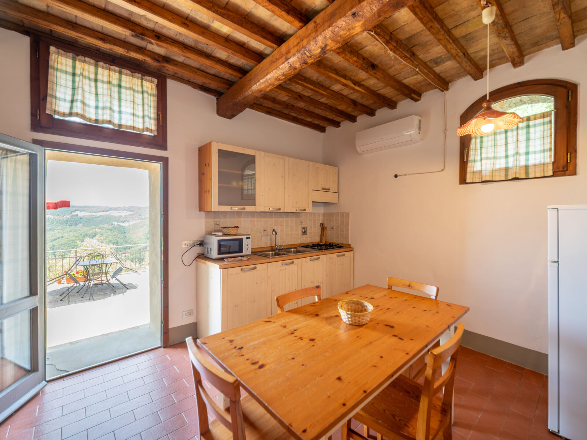 "Orciaia", appartement 2-kamers 36 m2, op de begane grond. Rustiek en gezellig ingericht: woon-/eetkamer met 1 2-pers divanbed en TV. 1 2-pers. kamer met air-conditioning. Kookhoek (4-pits kookplaat, broodrooster, waterkoker, magnetron, diepvriezer). Douche/bidet/WC. Terrasmeubelen. Zeer mooi, op het landschap. Ter beschikking: kinderbed tot 2 jaar (extra), haardroger. Internet (WiFi, gratis). Maximaal 1 huisdier/hond toegestaan. IT048033B5S2NHKPIG