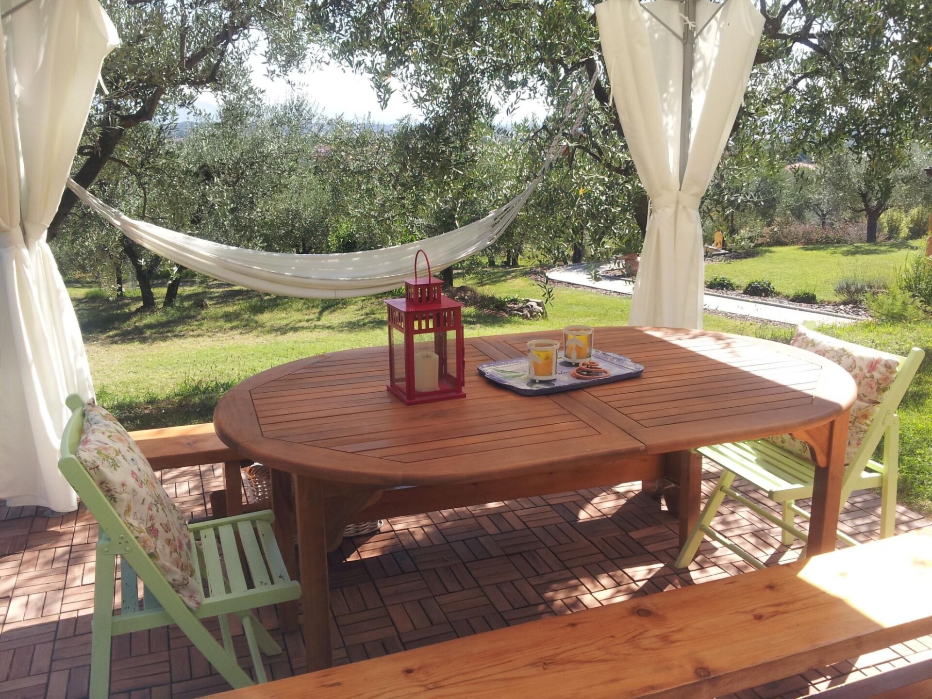 The environment is completely autonomous, there is only one flat in the entire villa for rent, and the outdoor facilities and jacuzzi tub are for their exclusive use. Immersed in the green hills of Veneri "Pescia", the Podere offers you a relaxing, familiar stay, amidst expanses of olive trees, a stone's throw from splendid cities rich in history and art such as Lucca, Pistoia, Pisa, Florence, Siena and famous localities such as Montecatini Terme and Monsummano Terme, Montecarlo land of prestigious wines and Collodi home to Pinocchio's park. The flat is adjacent to the main house, with its own entrance, garden and parking space.The flat, equipped with colour TV, is composed on the ground floor of a living room-kitchen complete with all accessories, and offers the following electrical appliances: electric oven, hob, fridge with freezer, washing machine. On the first floor there is a bathroom equipped with washbasin and toilet with shower cabin, and two bedrooms, one double and one spacious twin. Wi-Fi Internet access is free of charge. The consumption of electricity for the use of the jacuzzi is given by the reading of the autonomous meter and to be paid on site. During the summer the cost of electricity for the flat's air conditioners is given by the autonomous meter reading payable locally. During winter the gas consumption for heating is quantified by the meter reading payable locally. Bed linen is changed weekly and towels every other day. Presence of carbon monoxide and fire detector.Outside we have the covered gazebo with jacuzzi open from the beginning of May to the end of September, the flat's private garden with barbecue, and a dining area with a panoramic view.From this year there is the possibility of having our own breakfast consisting of: bread, eggs, butter, jam, coffee, tea, yoghurt and milkThe farmhouse provides a range of services for tourists who want to explore the surrounding area, see the characteristic neighbouring towns and taste the flavours of typical Tuscan cuisine, pointing out the places in the area. IT047012B5C9JM783H