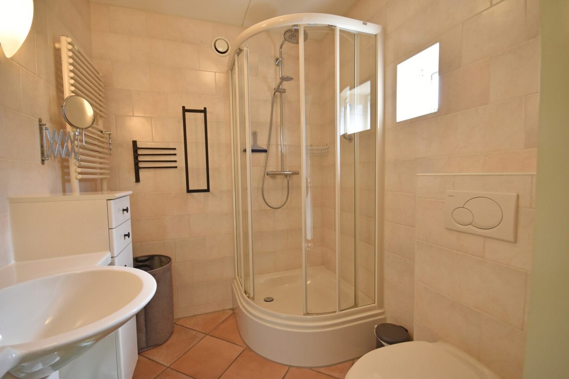 Binnen is de woonkamer een gezellige oase, ingericht met twee comfortabele banken en een ruime eettafel met zes zitplaatsen, ideaal voor familiediners of spelletjesavonden. Geniet van entertainment via de kabeltelevisie met Nederlandse en Duitse zenders en maak gebruik van de printer voor al uw behoeften. De open keuken is volledig uitgerust om aan uw culinaire wensen te voldoen, met een vaatwasser, filterkoffiezetapparaat, espressomachine, waterkoker en een 4-pits gasfornuis, evenals een combimagnetron en broodrooster. Een hoge tafel met krukken biedt een informele plek om van uw ochtendkoffie te genieten. In de bijkeuken vindt u een wasmachine en droger voor een zorgeloos verblijf.