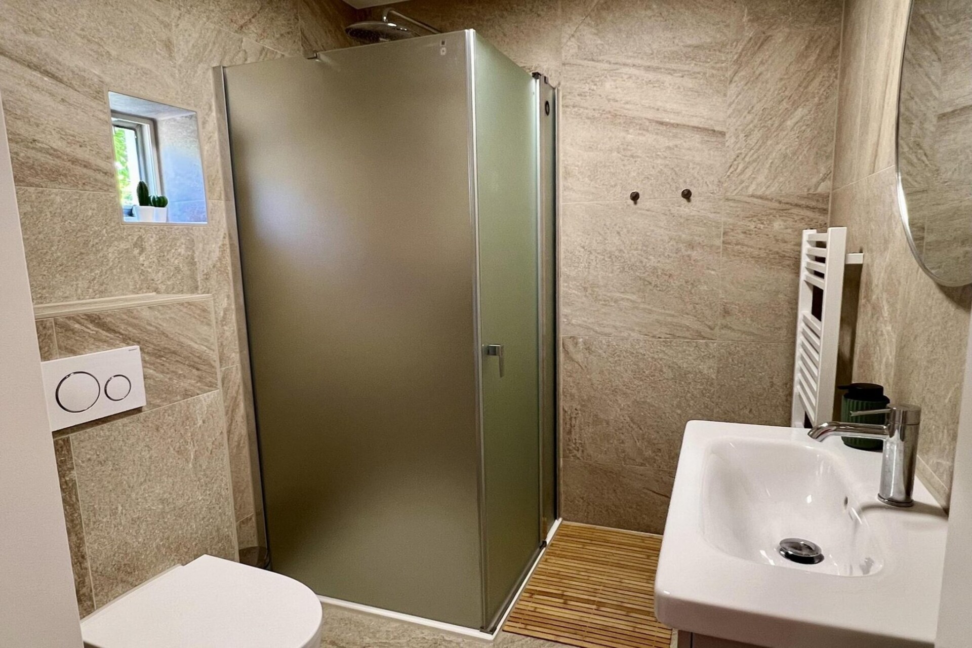 De woning beschikt over twee moderne badkamers, één op elke verdieping: één met een douche, toilet en wastafel en de andere met een bad, toilet en wastafel. De zonnige tuin beschikt over een aangelegd terras met tuinmeubilair en een elektrische barbecue om buiten te eten. Er is parkeergelegenheid voor één auto bij de accommodatie, en er is extra parkeergelegenheid op de algemene parkeerplaats. Er is gratis wifi beschikbaar en gasten wordt aangeraden linnengoed mee te nemen of te huren. Houd er rekening mee dat huisdieren niet zijn toegestaan en dat het opladen van elektrische auto's verboden is.