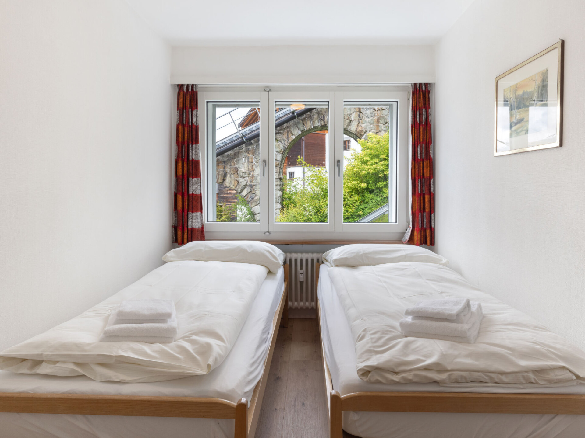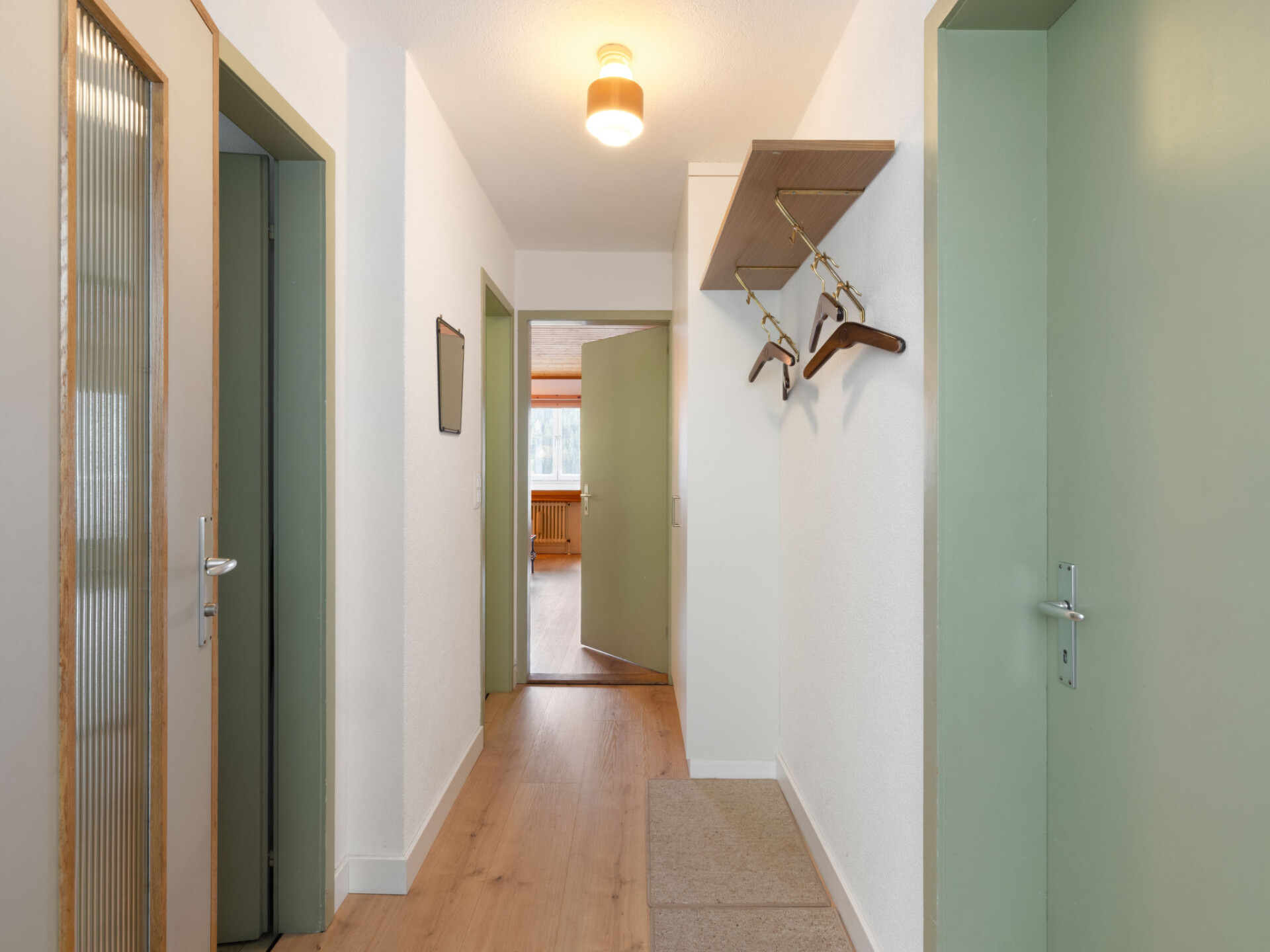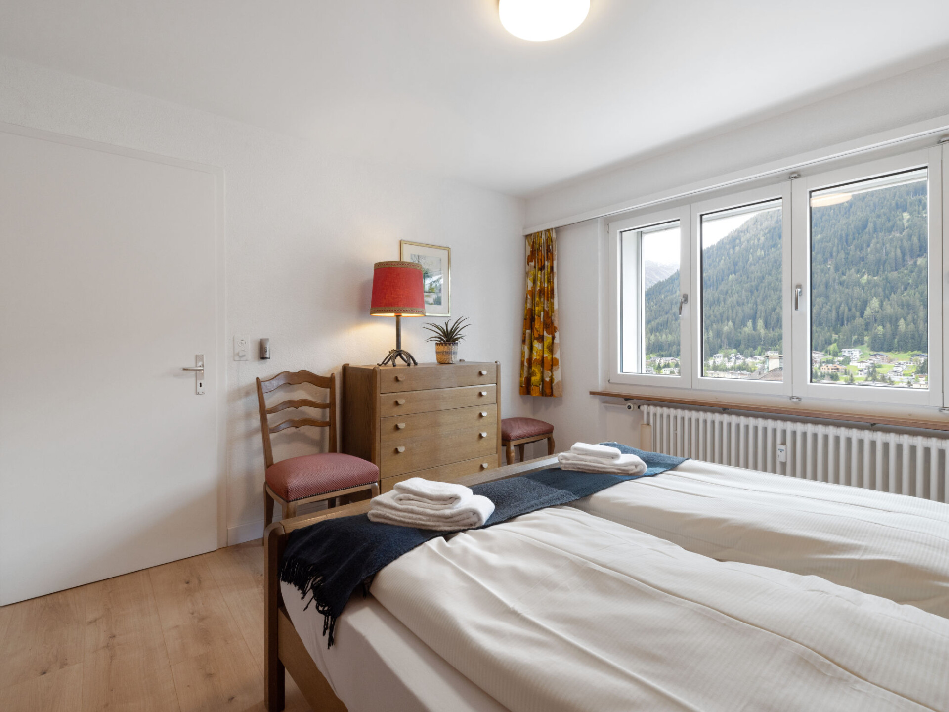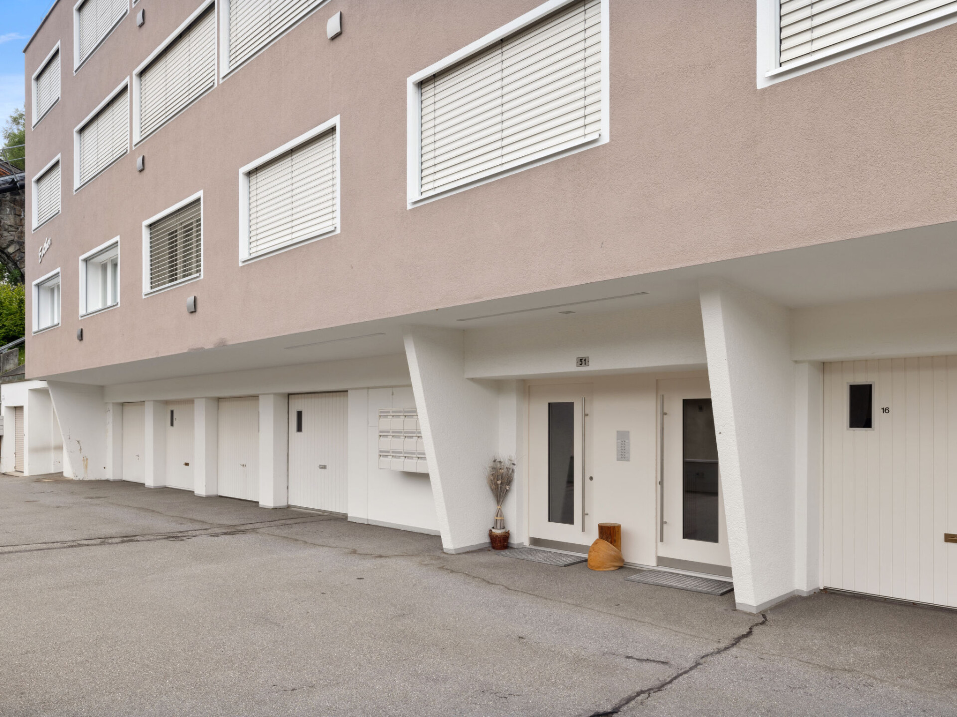 Flatgebouw "Esther". In het centrum, 250 m van het centrum van Davos Platz, centrale ligging tegen een helling, 20 m van het skigebied, op het zuiden. In het huis: lift, wasmachine, droger (voor medegebruik). 20 m lange steile toegangsweg tot aan het huis. Eigen garage nr. 6. Parkeerplaats of garage alleen voor een kleine/middelgrote auto. Afmetingen: hoogte 192 cm breedte 210 cm. Winkel 100 m, supermarkt 400 m, restaurant, bar, bakkerij 100 m, bushalte "Davos Schatzalpbahn" 200 m, meer Davoser See 2.5 km. Golfterrein (18 holes) 800 m, sportcentrum 400 m, kabelbaan 500 m, bergtrein 30 m, ski faciliteiten 15 m, skibushalte 50 m.