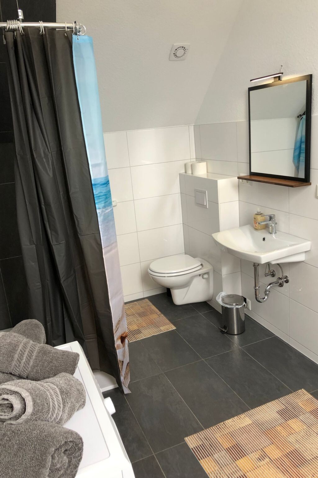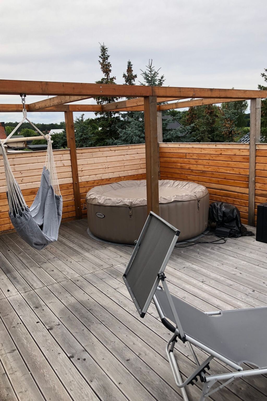 Experience a wonderful holiday in our large, very modern furnished flat, which is only 10 minutes away from the beautiful sandy beach, which is within walking distance, directly in Mönkebude "the pearl on the Szczecin Lagoon"! Mönkebude with its beautiful meadows and forests, as well as its sailing harbour and beaches, is located directly on the Szczecin Lagoon, the beautiful Baltic Sea coast in the north-east of our beautiful homeland! It's nice to go for a morning walk in the countryside with your partner or four-legged friend to get to know the forest, meadows, trees, animals and shrubs! But if you prefer to sunbathe on the beach in a beach chair or simply in the sand, the beautiful beach is about 10 minutes walk from your accommodation, just to relax and sunbathe! Our younger guests also have lots of fun on the beach in the new playground where they can really let off steam! But the most beautiful are the evening walks on the beach where the sun caresses the sea and you can enjoy the peace and quiet, here at the Stettiner-HaffThis wonderful new "Apartment am Stettiner Haff" is located on the top floor and can only be reached via a turning staircase for 2 to max. 3 persons. Enjoy a relaxing holiday in a modern, rustically furnished holiday home flat, which serves a comfortable holiday for 2 people (all points of a 3 star holiday flat are fulfilled). The living space in the upper flat is divided into a bed-sitting room with a spacious double bed (140 cm x 200 cm), surrounded by two bedside tables with reading lamps on both sides. There is a sideboard in front of the bed that offers plenty of storage space for your luggage. A high chair is available free of charge for very young guests. The centrepiece of the flat is the 36 m² living room and bedroom, with a 40 m² roof terrace to go out and soak up the sun, with an integrated kitchenette, a dining area and a comfortable pull-out sofa bed. Relax after a day out while the flat-screen TV with satellite TV and TV-USB connection provides entertainment. The open-plan kitchen allows you to cater for yourself with a four-zone hob, oven, fridge with freezer compartment and numerous small electrical appliances, from a toaster and kettle to a coffee machine. The turning staircase leads to the large roof terrace approx. 40 square metres, with hanging chair, whirlpool which can also be used on request (for a fee) and lounge furniture to sit on. We wish you a pleasant stay.Let it go on your furnished garden terrace (which is about 50 square metres), simply well, which is equipped with lounge furniture and a hanging chair and a whirlpool (for a fee), you can enjoy beautiful moments, dogs may be brought by arrangement, gladly. A small sandpit with digging moulds and a children's pool are available for our younger guests. Bicycles can be parked at the holiday property. Every guest has a free car park at their disposal, for safety reasons and due to electricity theft, electric cars are no longer allowed to park on our property. However, there is a large free car park 300m away. Plot area "Apartment am Stettiner Haff" with outdoor area: approx. 1100sqmRenovation year. 2023a small playground with toys: includedhigh chair: includedWashing machine: includedEnergy costs: included except for e-bikes/e-scooters/e-cars etc. to charge these devices a lot of electricity is consumed and charged extra with a flat rateWater: includedOne private car park: includedW-Lan: includedSun loungers: included Other: Pets are allowed max. 2, W-Lan, small playground, hanging chairs and free sun loungers/chairs will be available for you in your temporary home.The property is located in an idyllic setting just 400 metres, or a five-minute walk, from the beach. Shopping facilities, an ice cream parlour, several restaurants, a bakery and massage services await your visit in the immediate vicinity (within a radius of approx. 300 to 400 metres). The bowling alley, tennis court and water sports facilities are just a short distance away. Experience the landscape of Germany's north-easternmost region on the Szczecin Lagoon, from Mönkebude to Üeckermünde and Altwarp with the most beautiful beaches and bays of our unique Baltic coast, with idyllic views of the sea and forests and cycle paths through unspoilt nature. The view over the Szczecin Lagoon offers one of the most beautiful views of the islands of Usedom and Wollin through sunny clearings in an undisturbed environment. Hikes through the surrounding forests are also unique. Discover the beauty of the region, smell the scent of pine trees and smoke ovens, pick mushrooms in the beautiful forests and watch fishermen bring home their catch, hear the snorting of horses and feel the freshness and beauty of the north wind. The idyllic village of Mönkebude is surrounded by the nature park "Stettiner Haff" with its reed and marsh meadows that glow golden in the sun, sea bays where you can see the clouds floating in the sky, the green coniferous and mixed forests, moors and dunes. The nature park has its own administration. It organises events such as hiking, cycling and canoeing tours and offers them at a reasonable price. You can find information about this in your " Haff-Ostseeferienhaus ".