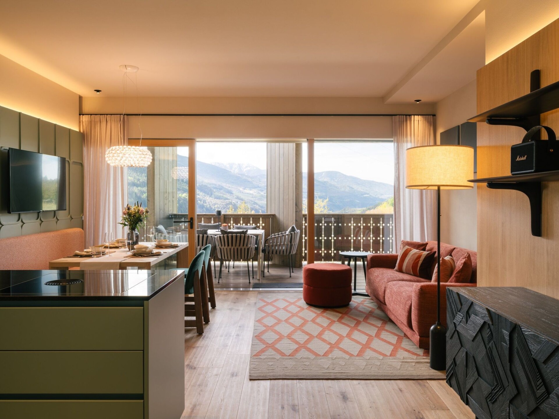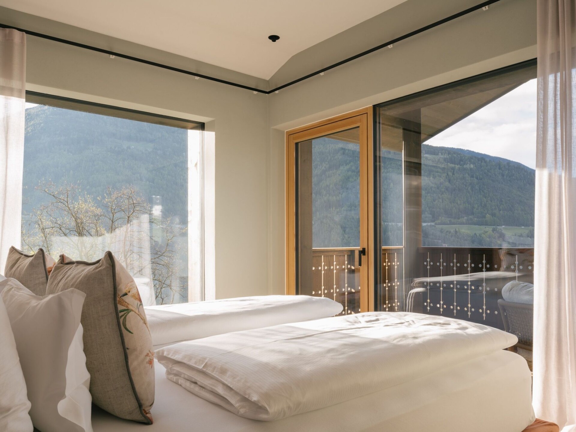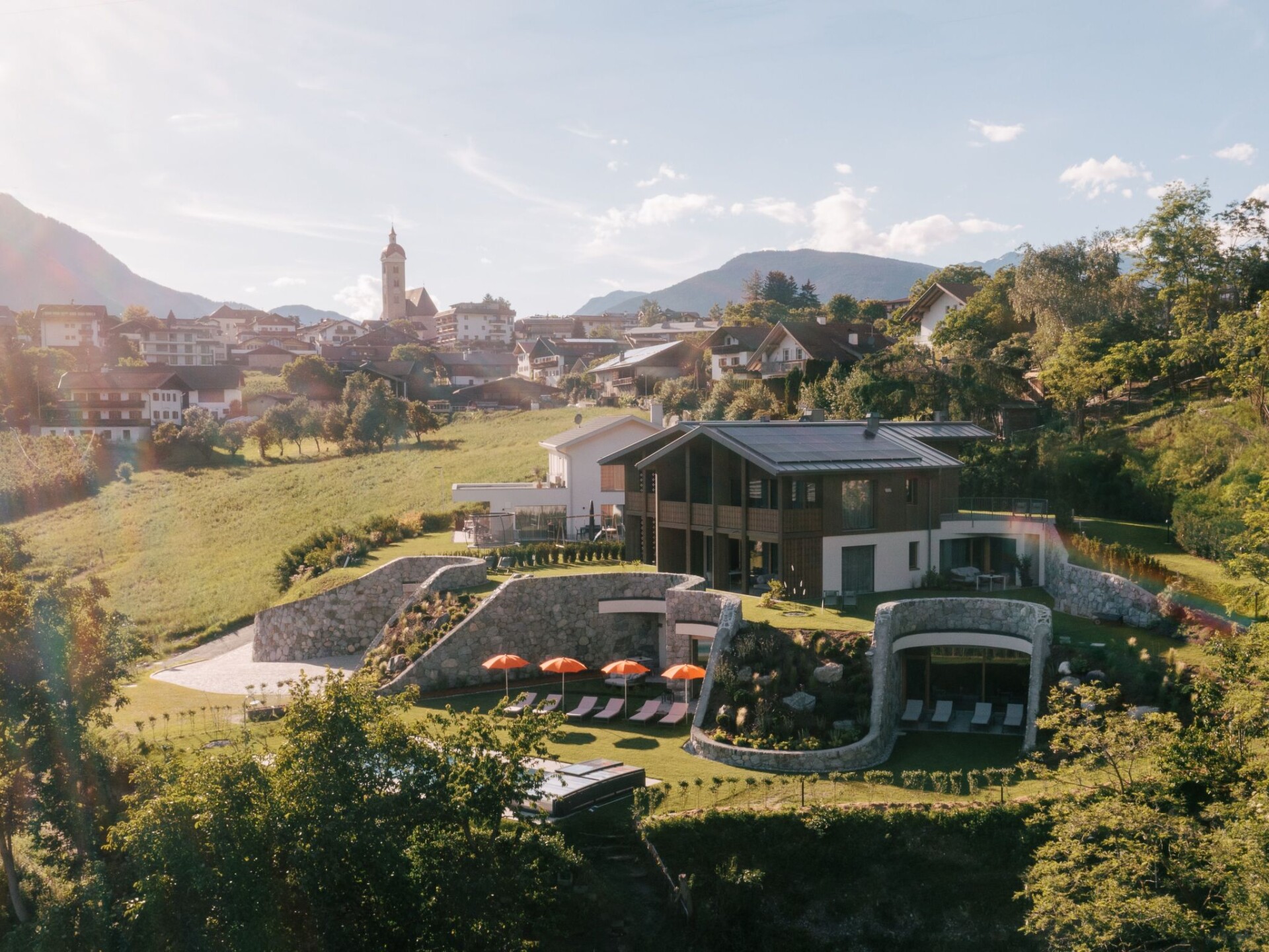 The Anton Nature Hideaway flat house is a private hideaway in the middle of nature in Natz. All flats are south-facing with a unique panoramic view. Built in a traditional modern style and in keeping with the landscape.The holiday resort of Natz-Schabs is particularly appreciated for the diversity of its landscape, the harmonious mixture of apple orchards, vineyards, forests and cultivated landscape. In a star shape, you can wander off in all directions in no time at all.The Euphoria flat is located on the upper floor of the ANTON guest house and offers additional luxury living space. Two bedrooms, two bathrooms, a kitchen-cum-living room with sofa and seating area and a 25 m² loggia with mountain and valley views are spread over 75 m² of feel-good space.FACILITIESFor 2-5 persons75 m² living space + 25 m² loggia + 25 m² private garden1 bedroom with double bed1 bedroom with 2 separate beds or double bed1 bathroom with shower, bathtub, 2 washbasins, WC, bidet1 bathroom with shower, washbasin and WCLiving area with sofa bed and seating areaFully equipped kitchenWardrobeSpacious loggia with 25 m² + additional terraceThere is a heated outdoor pool (April to October) with exceptional views. IT021057B4FTC4KY28