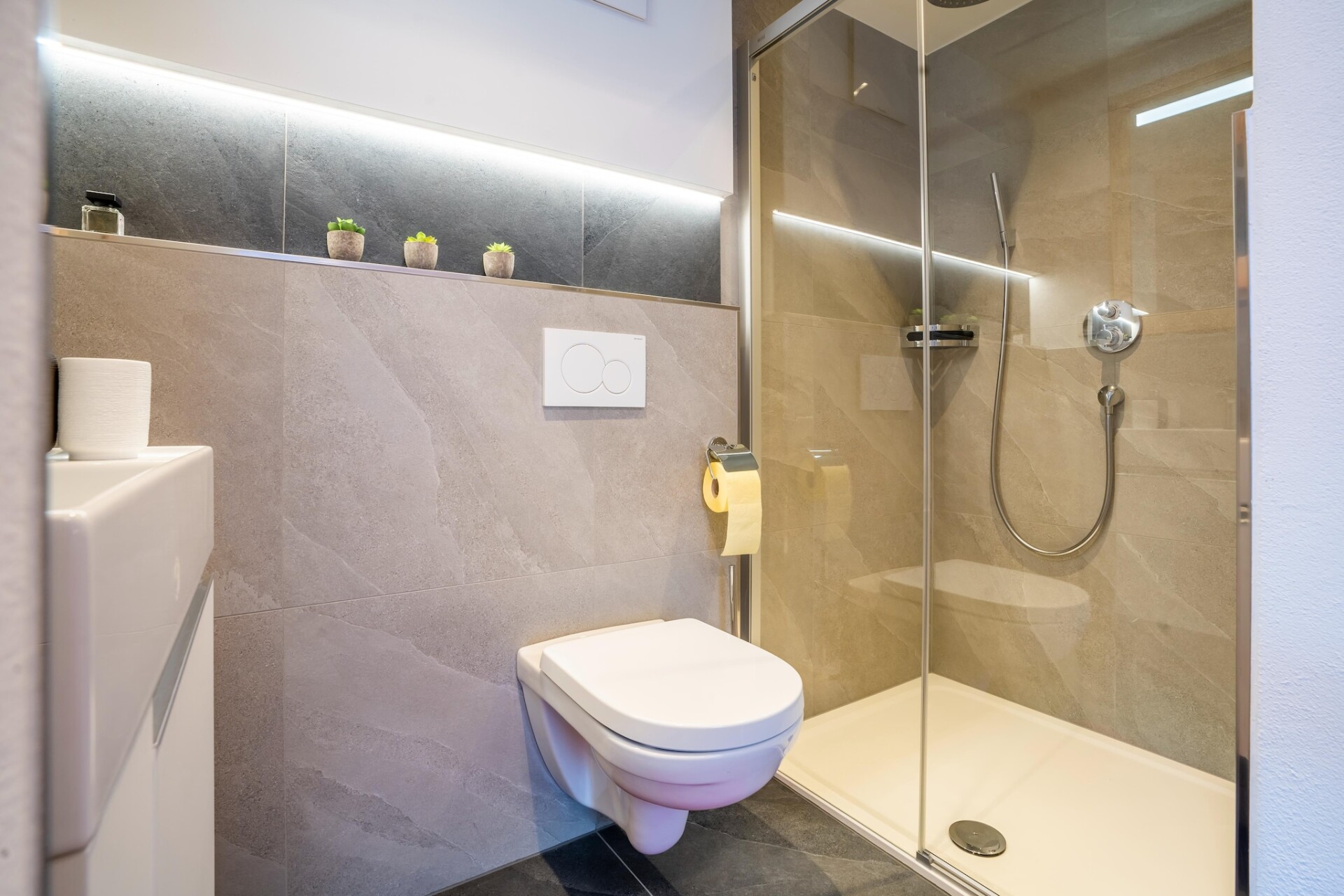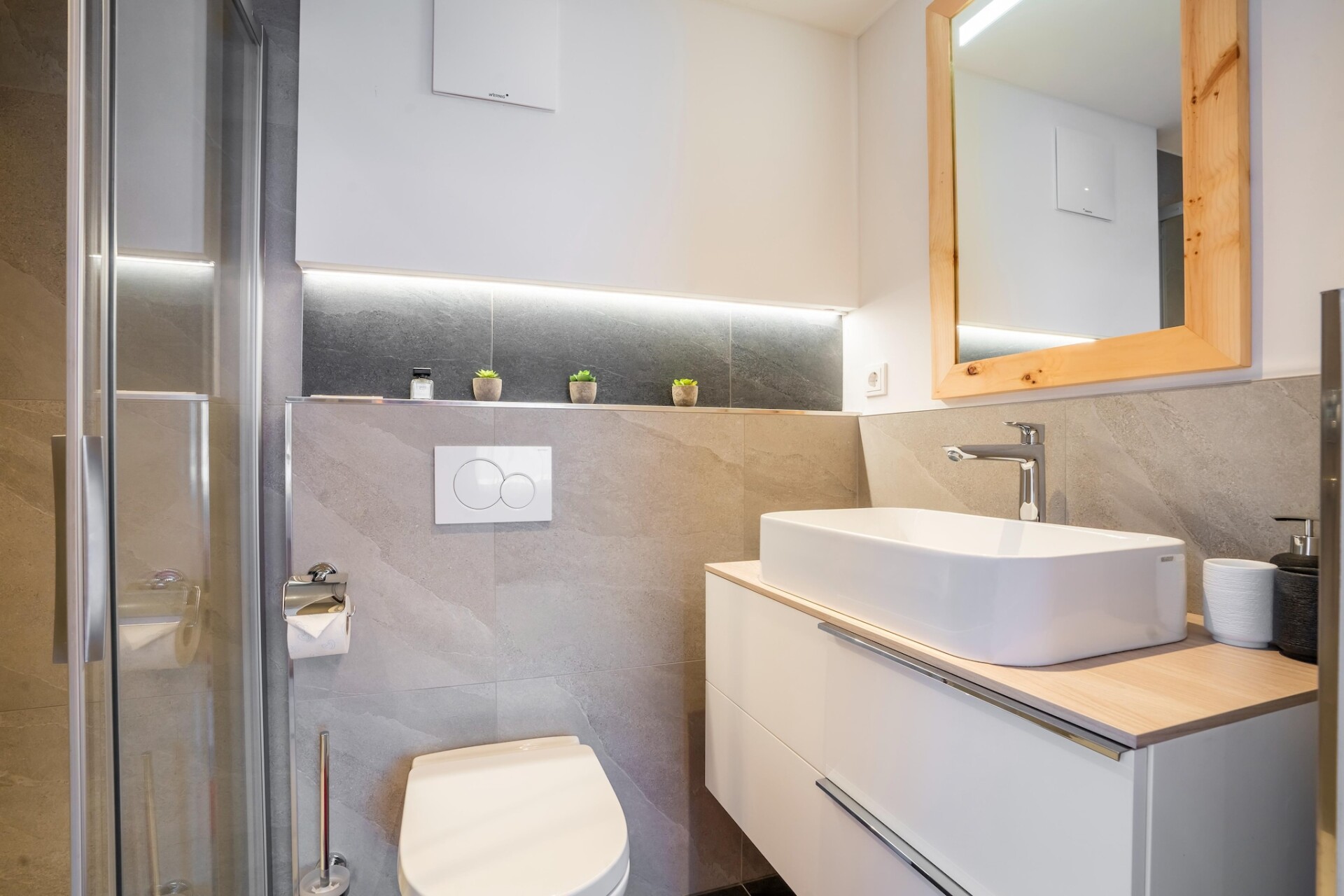 Een bijzonder hoogtepunt van één appartement is het bubbelbad op het terras, van waaruit je kunt genieten van een adembenemend uitzicht op de majestueuze bergen van de regio. Dit biedt de perfecte gelegenheid om te ontspannen na een actieve dag in de bergen en de omringende natuur te bewonderen. De overdekte tuinsalon nodigt je uit om gezellige uurtjes door te brengen, of je nu samen dineert of gewoon blijft hangen en geniet van de frisse berglucht.